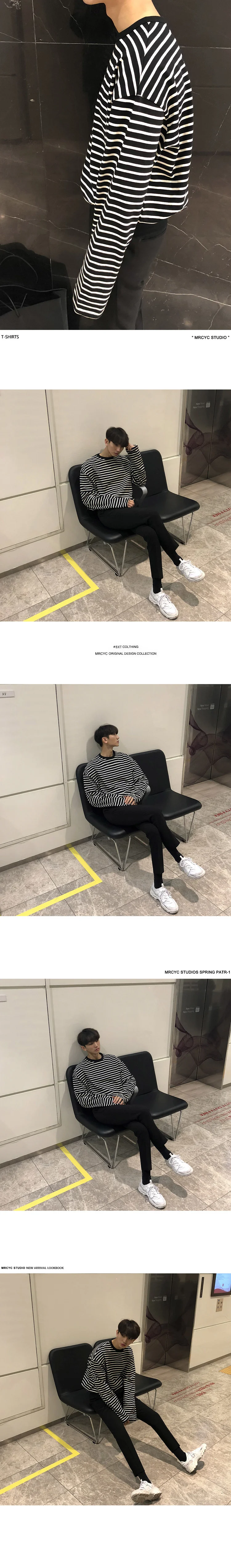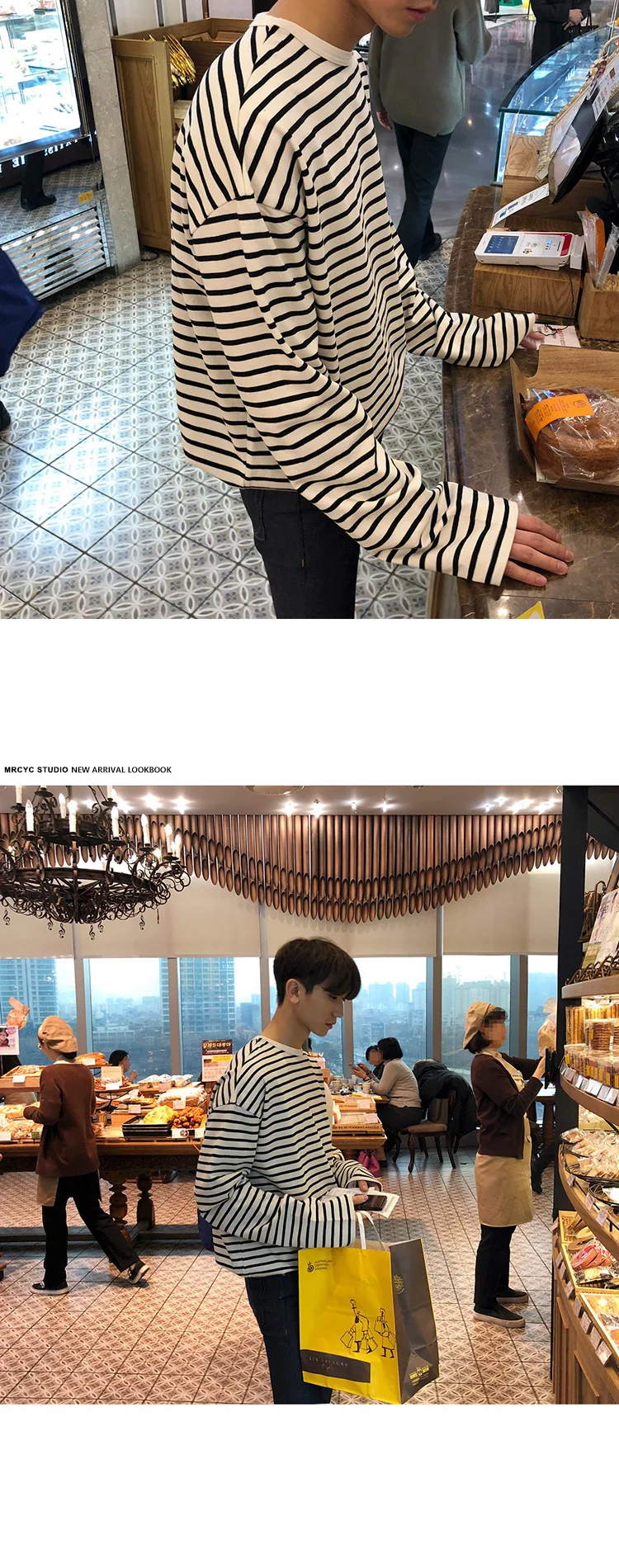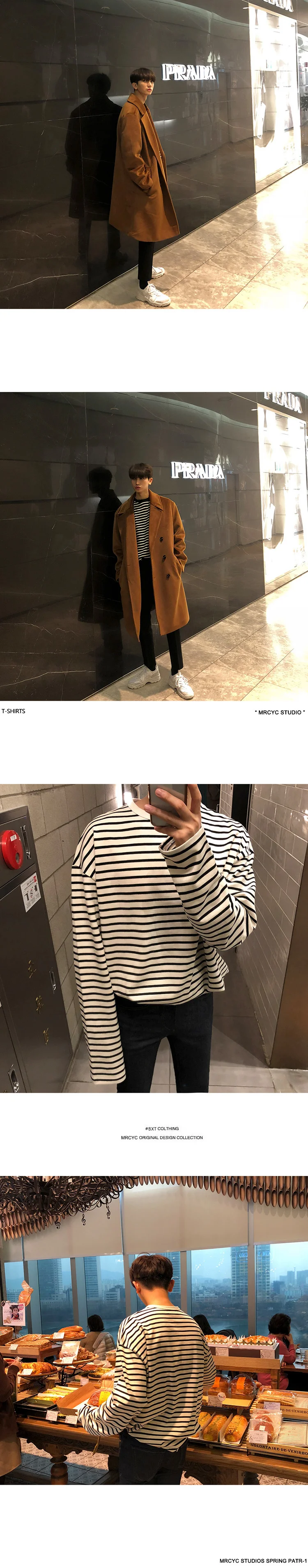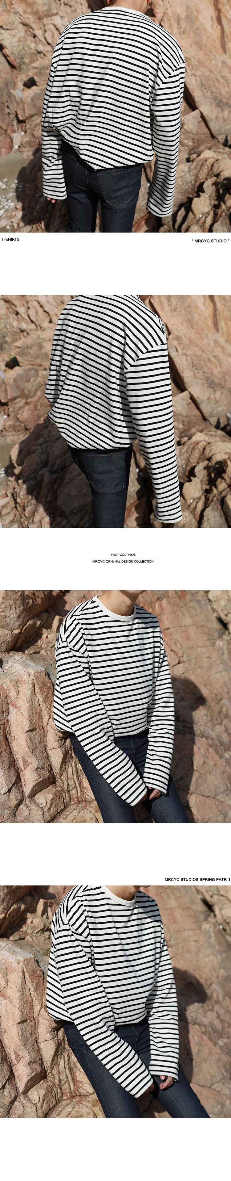 Wiaofellas - New Spring Men's Long Sleeve T-shirt Casual Loose Striped Top Korean Fashion Base Tee O-neck Oversized Tops 2Y5532