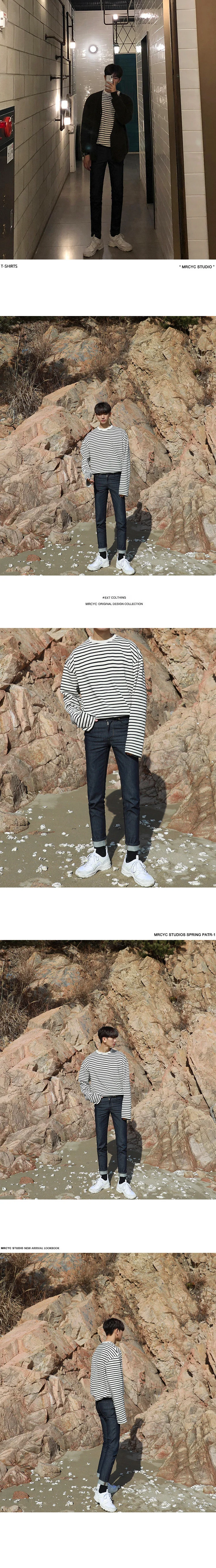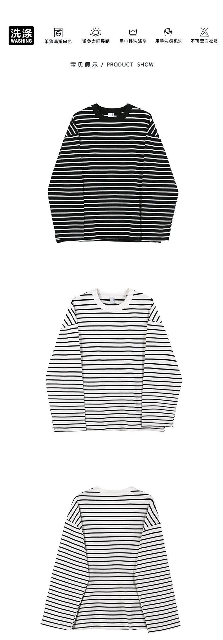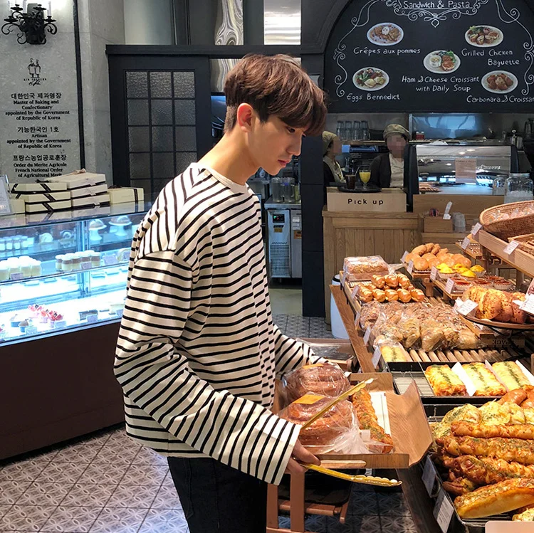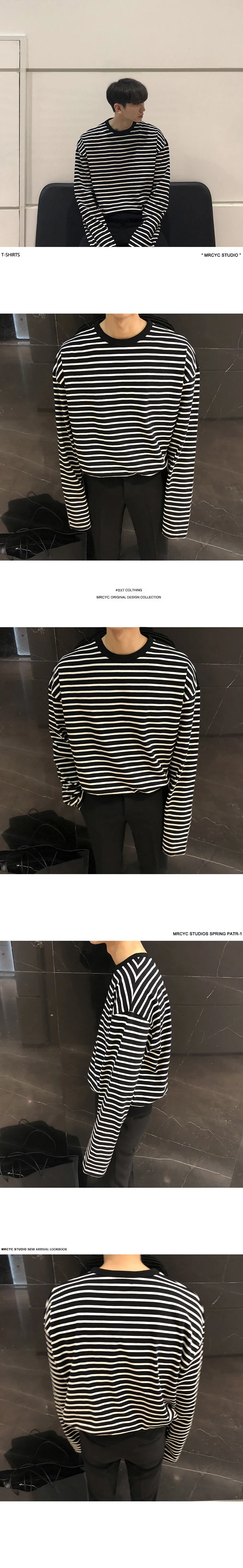 Wiaofellas - New Spring Men's Long Sleeve T-shirt Casual Loose Striped Top Korean Fashion Base Tee O-neck Oversized Tops 2Y5532