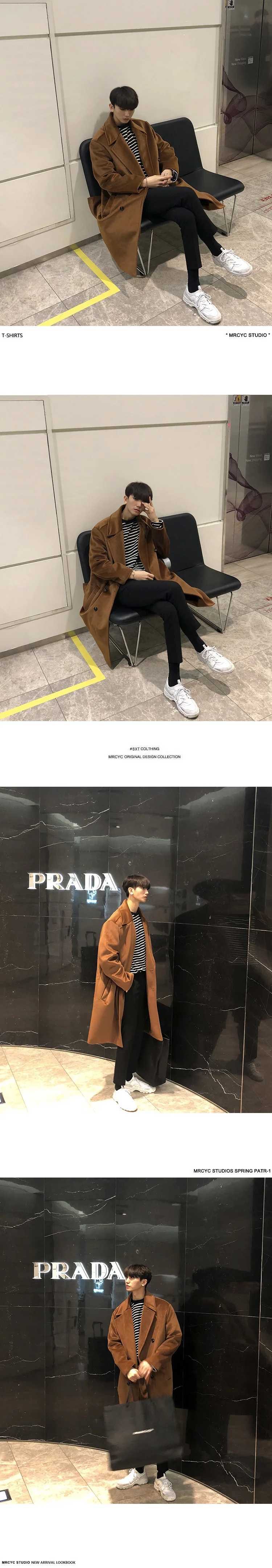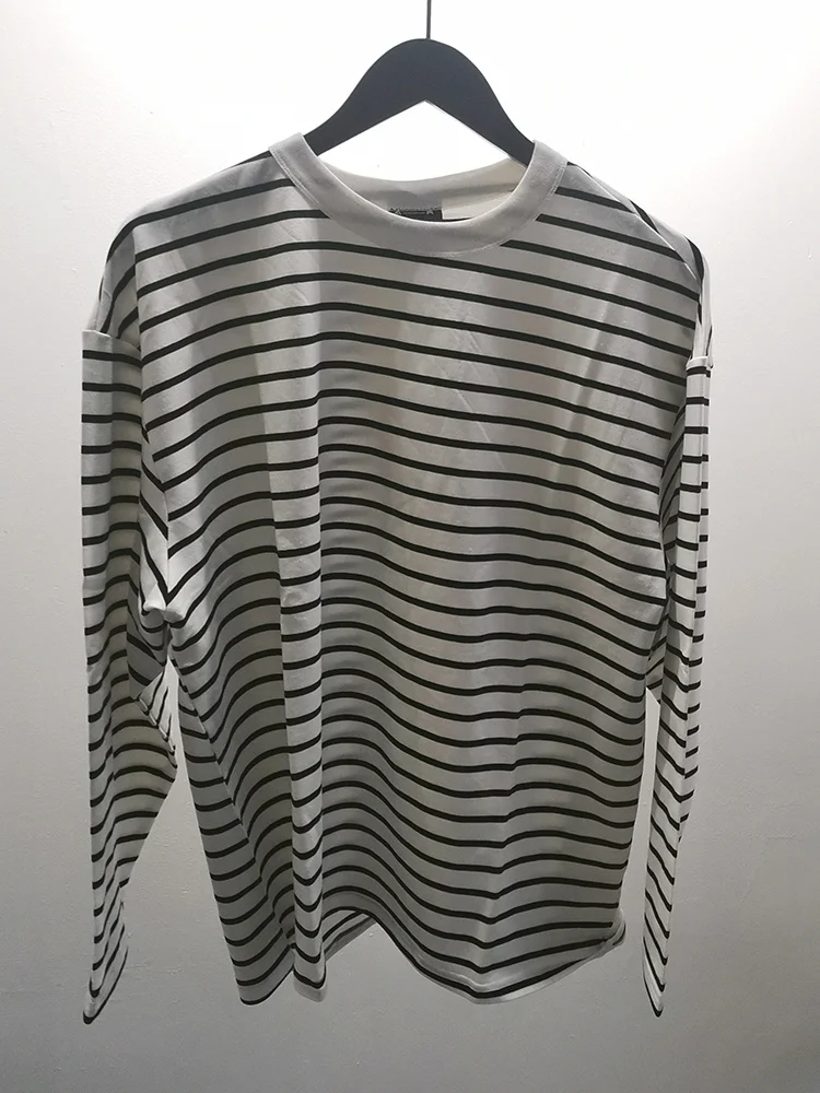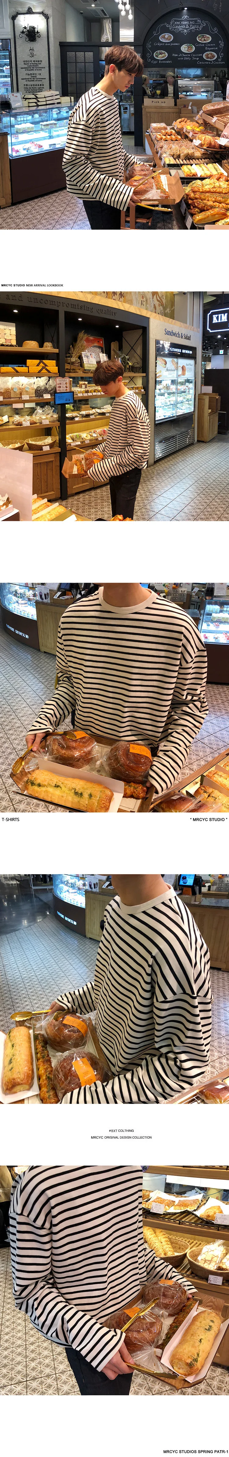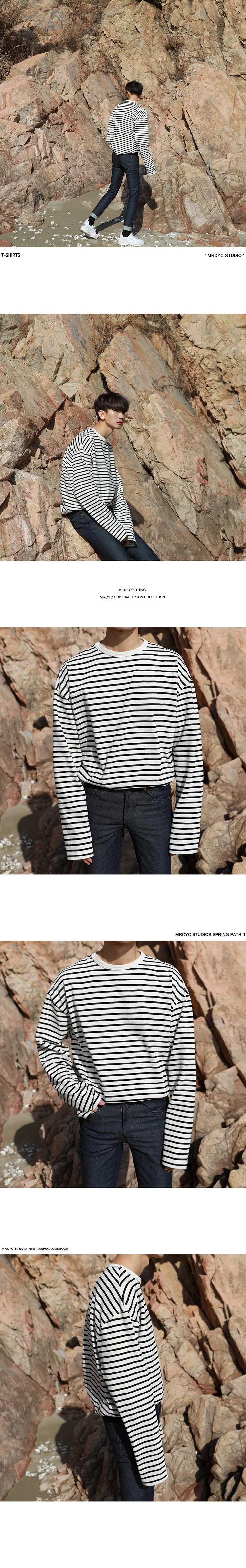 Wiaofellas - New Spring Men's Long Sleeve T-shirt Casual Loose Striped Top Korean Fashion Base Tee O-neck Oversized Tops 2Y5532
