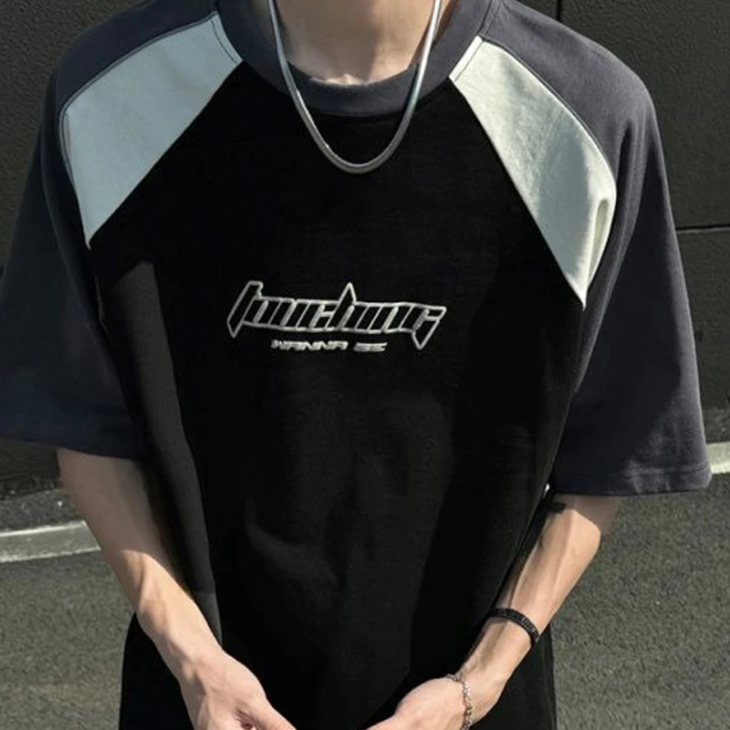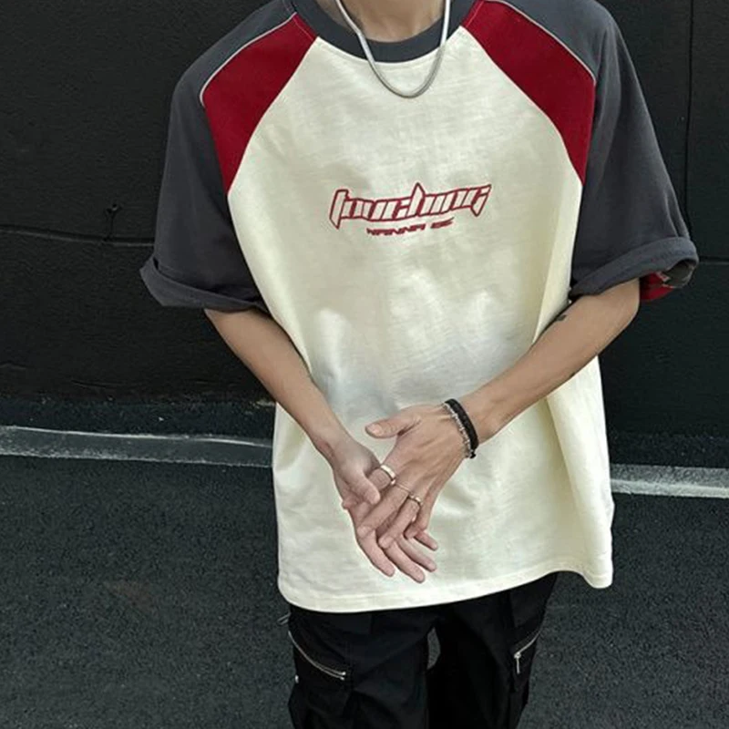 Wiaofellas - Raglan Sleeved Short Sleeved Shirt Men's Summer American Street Racing Clothes New Trendy Loose Heavy Weight Cotton T-shirt
