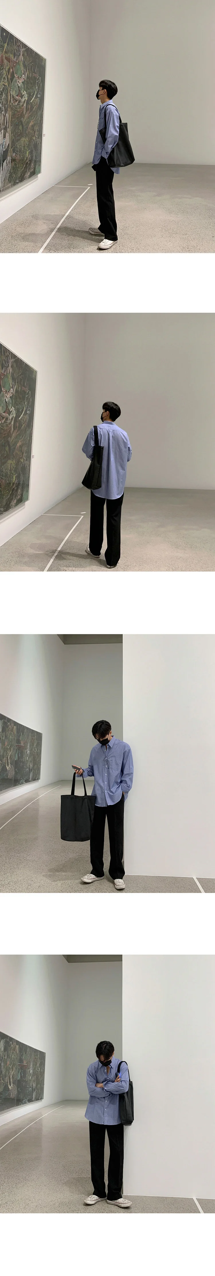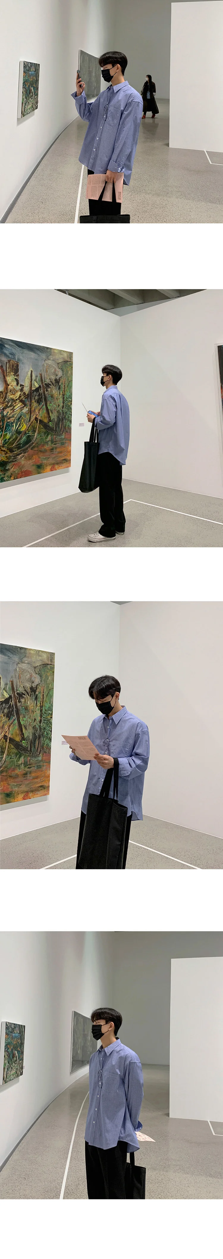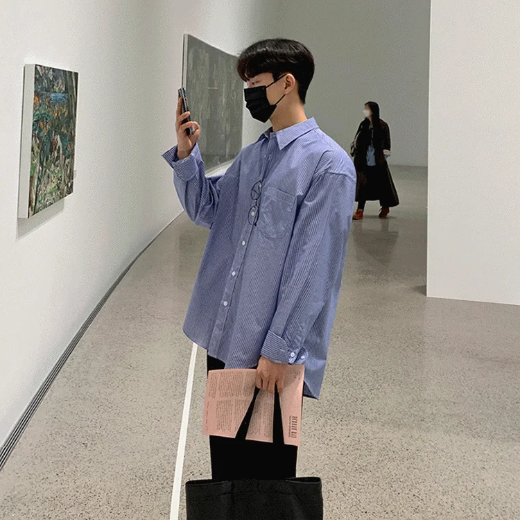 Wiaofellas - Stripe Vintage Long Sleeved Turn-down Neck Shirt Men's Pocket Single Breasted Loose Casual Versatile Spring Fashion 2A1952