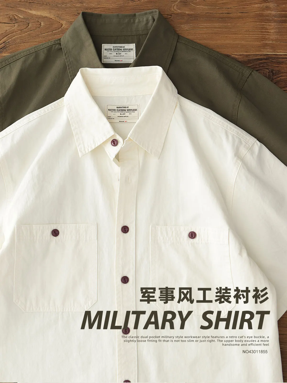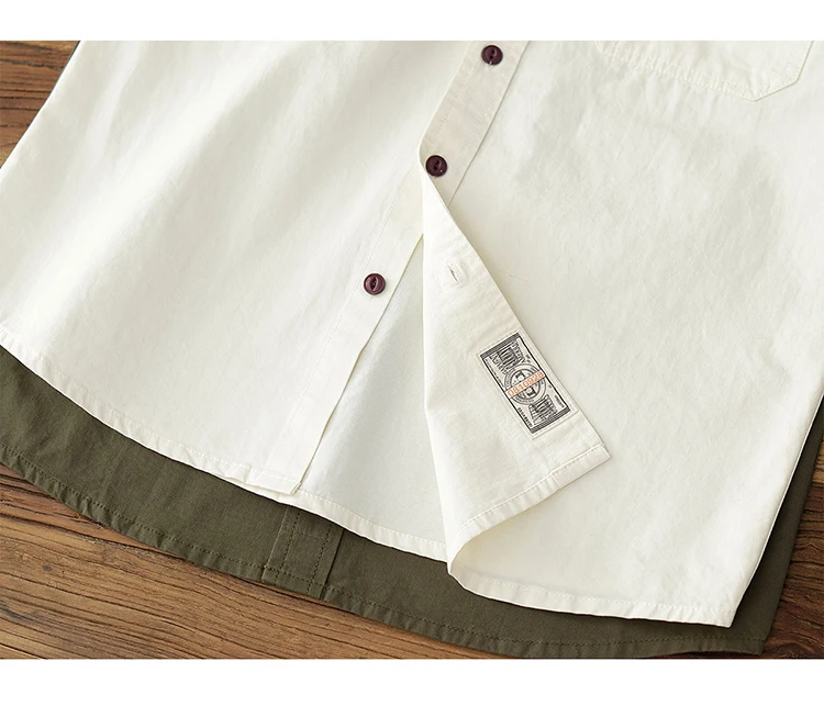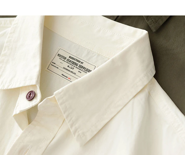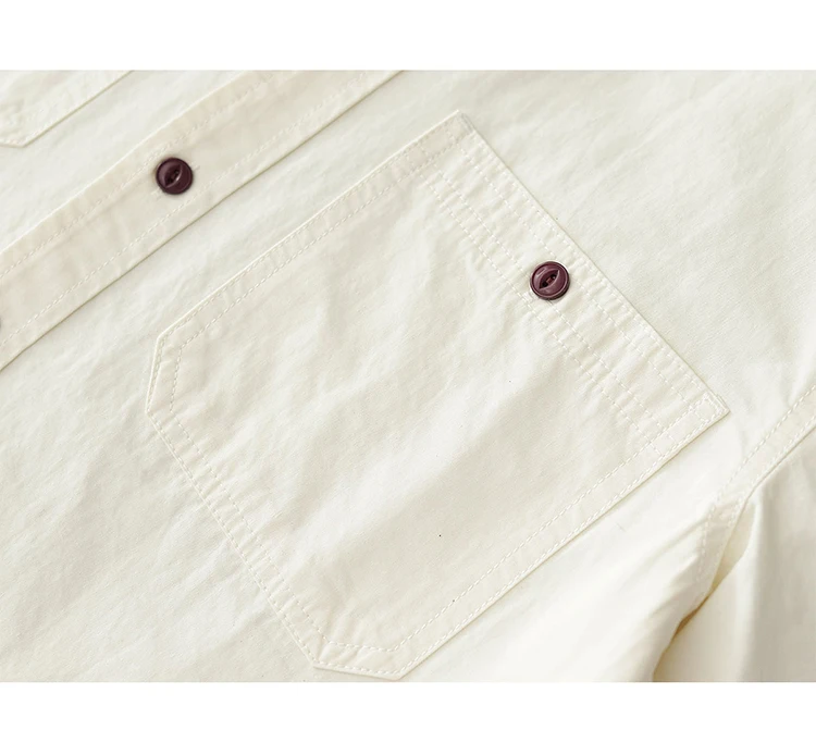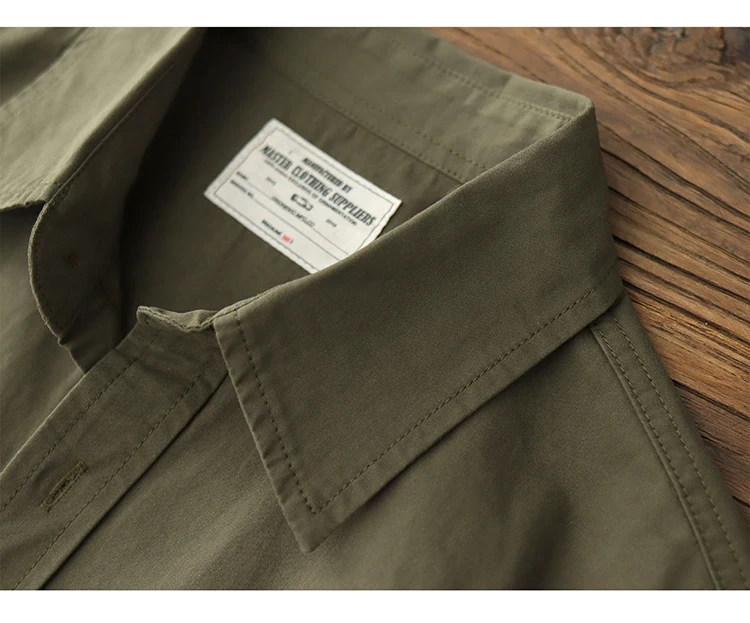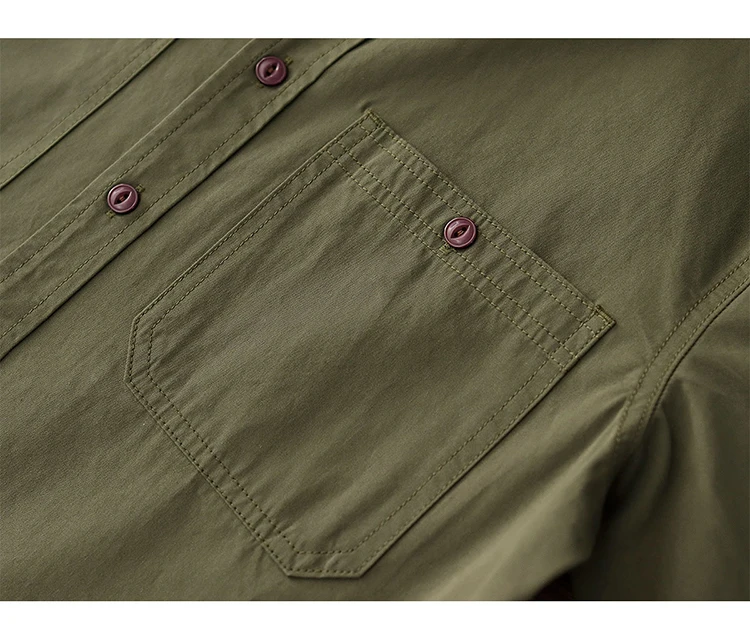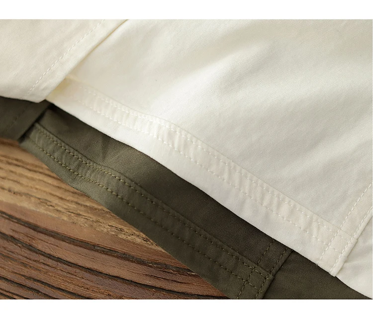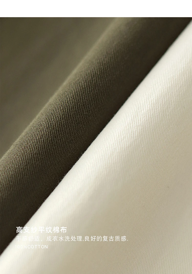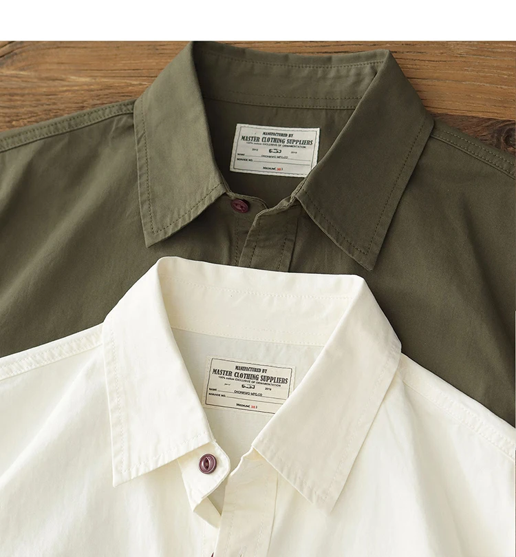 Wiaofellas - Summer American Retro Short Sleeve Lapel Cargo Shirt Men's Amei Khaki 100% Cotton Washed Double Pocket Casual Tough Guy Blouses