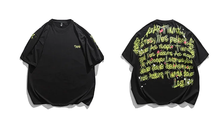 Wiaofellas - Summer Casual Graphic T Shirts Men Couple Clothing Mens Letter Print Tshirts Unisex Short Sleeve Oversized T Shirt Women Tops