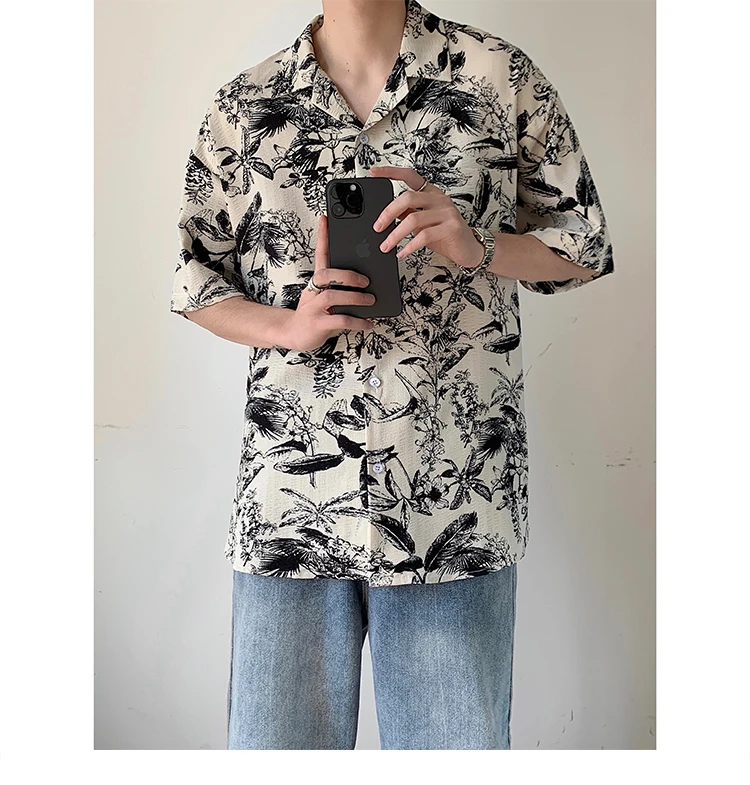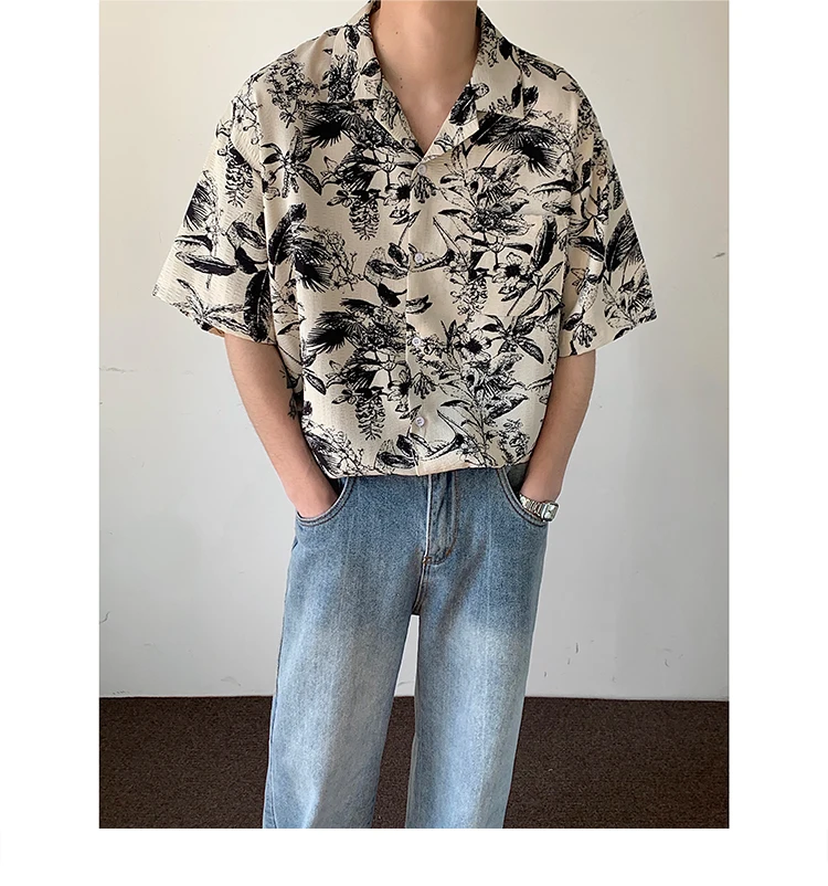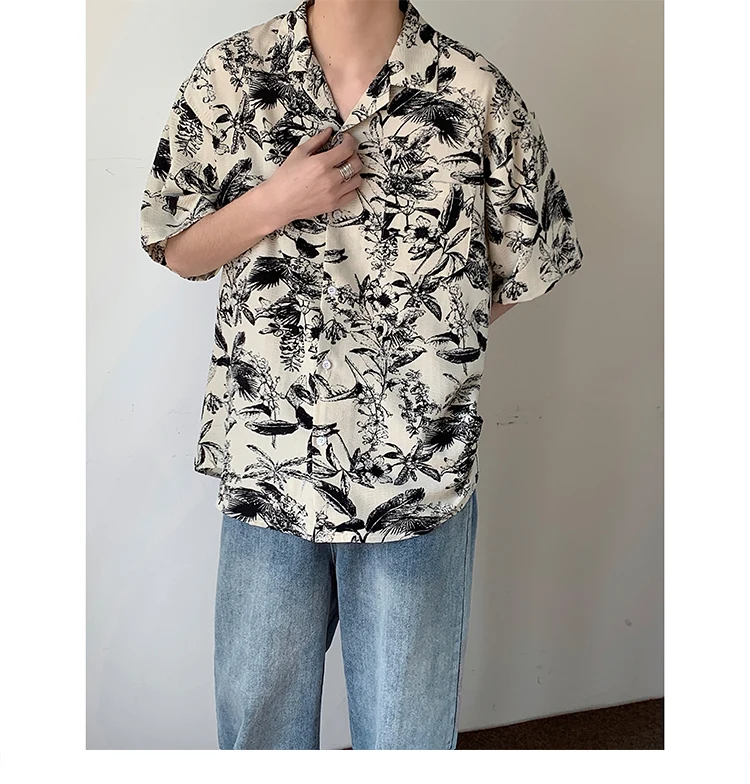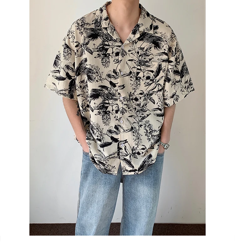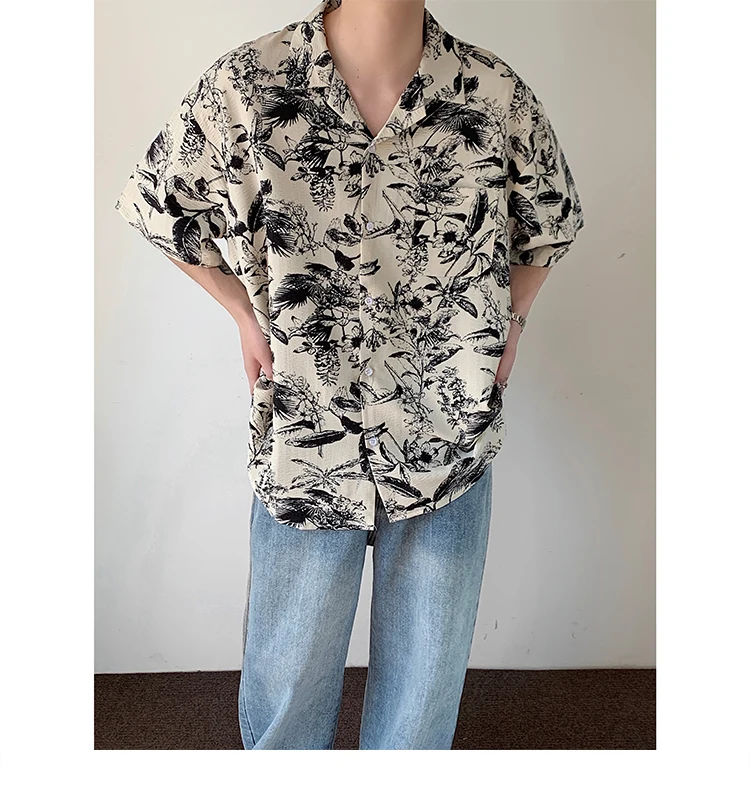 Wiaofellas - Summer Short Sleeved Shirt Men Oversized Printed Casual Shirt Men Streetwear Korean Loose Flower Shirts Mens Hawaiian Shirt