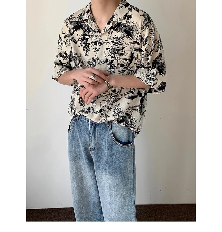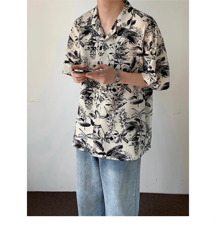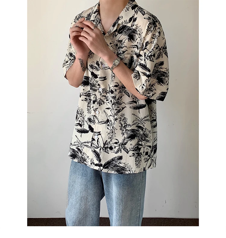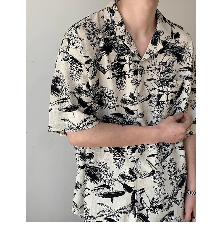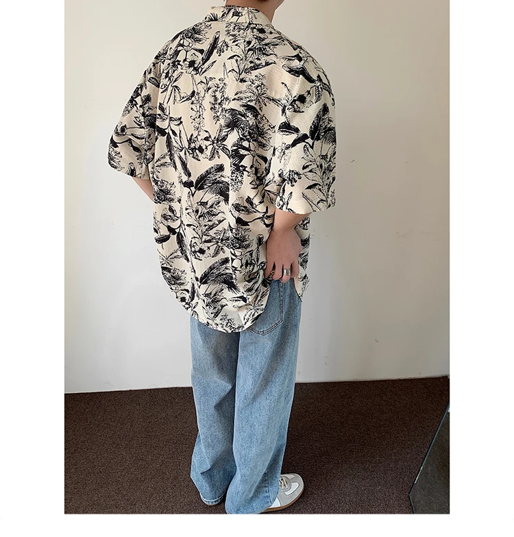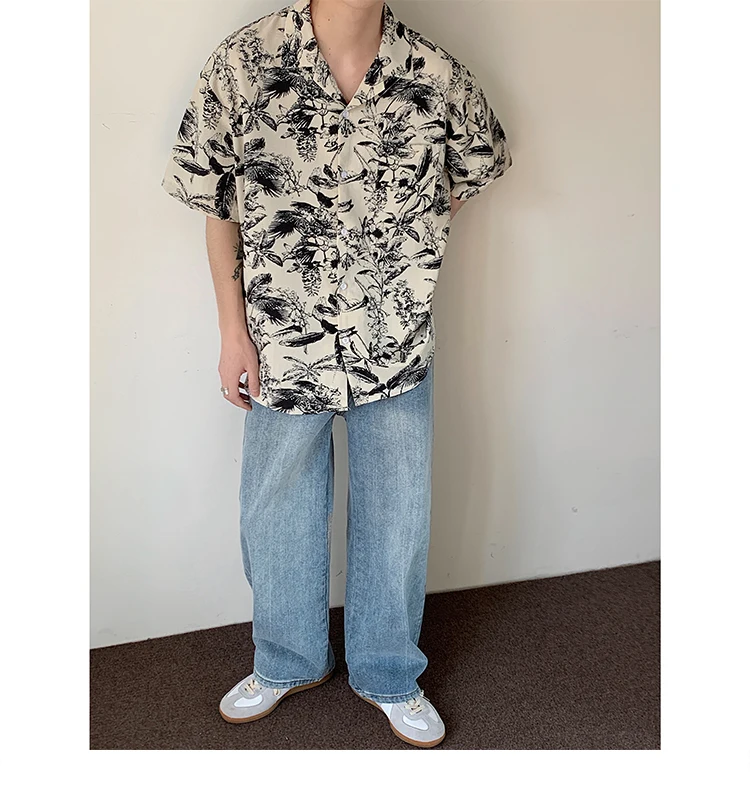 Wiaofellas - Summer Short Sleeved Shirt Men Oversized Printed Casual Shirt Men Streetwear Korean Loose Flower Shirts Mens Hawaiian Shirt
