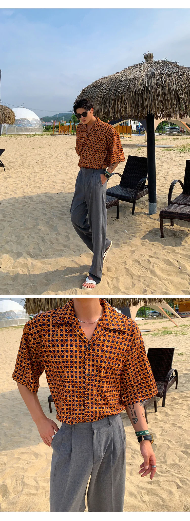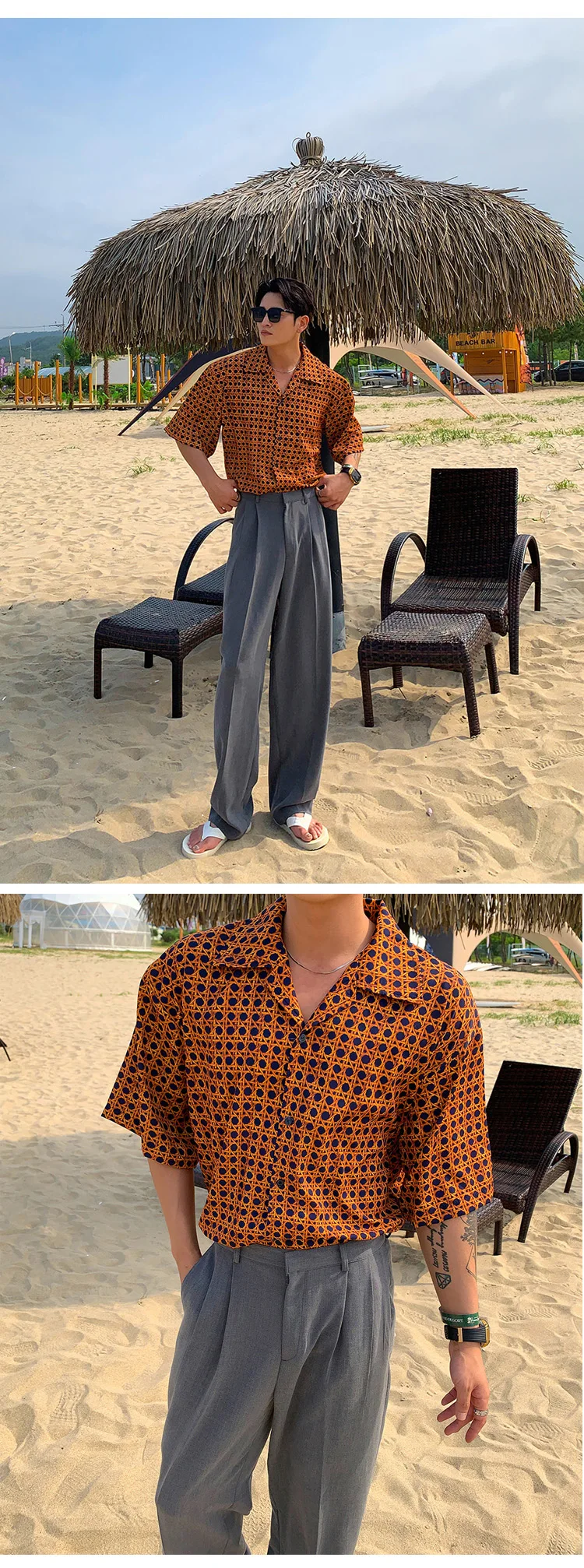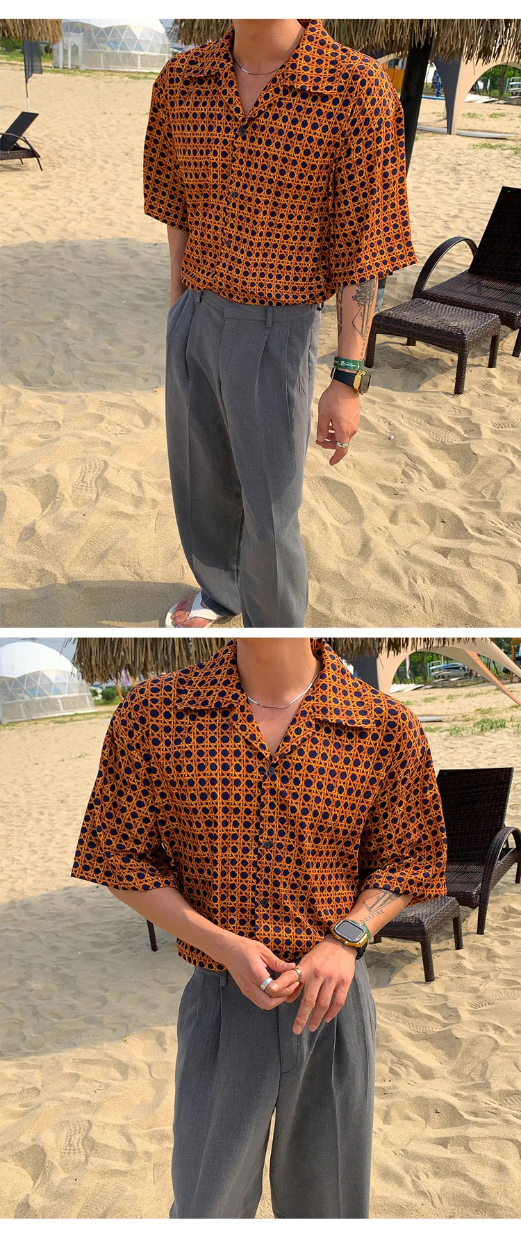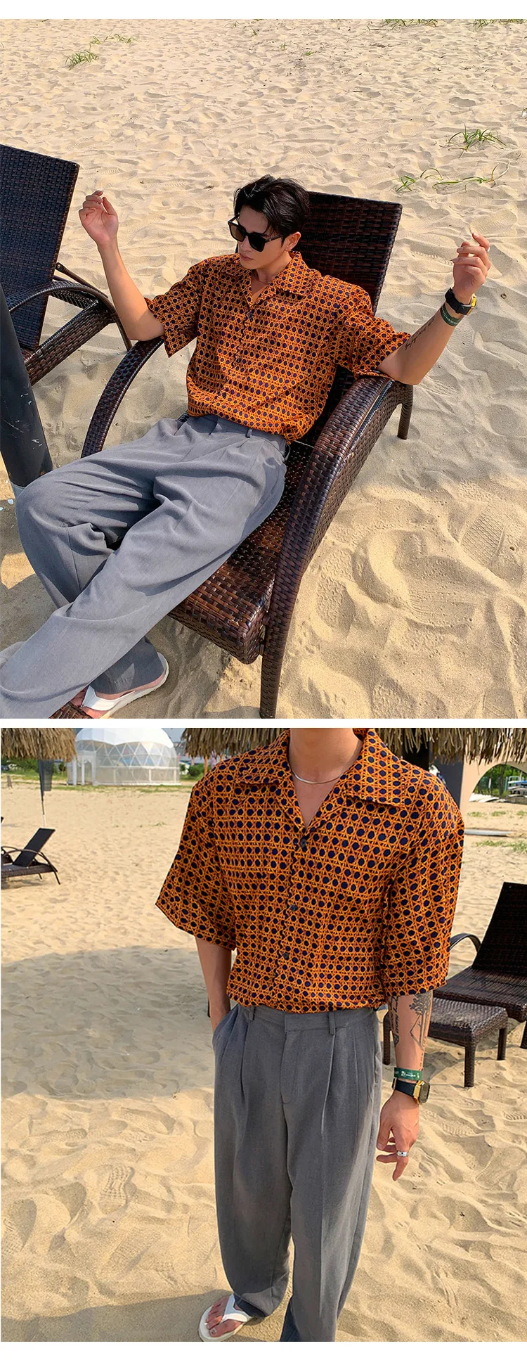 Wiaofellas  -  Summer Short Sleeved Shirt Men Oversized Retro Printed Shirt Men Streetwear Korean Loose Ice Silk Shirts Mens Hawaiian Shirt