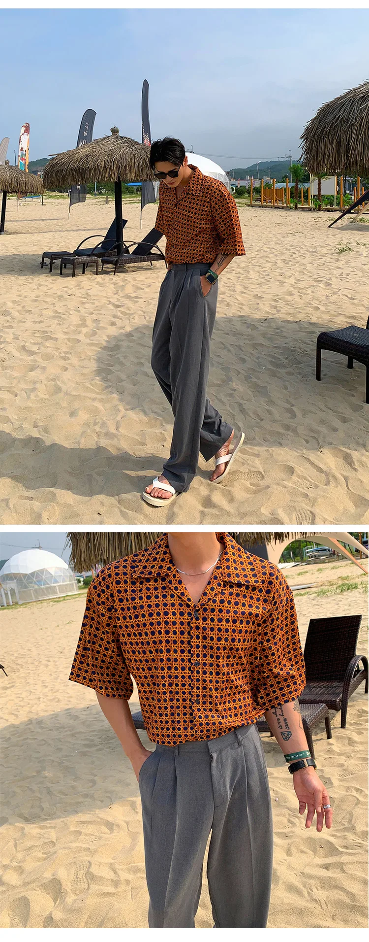 Wiaofellas - Summer Short Sleeved Shirt Men Oversized Retro Printed Shirt Men Streetwear Korean Loose Ice Silk Shirts Mens Hawaiian Shirt