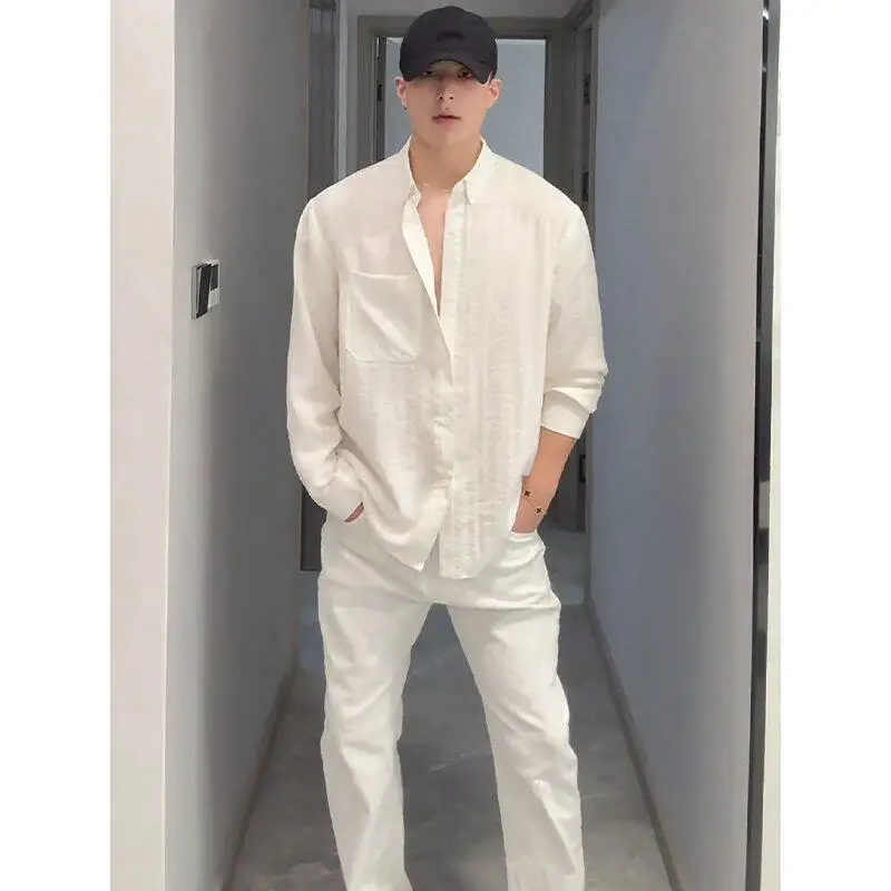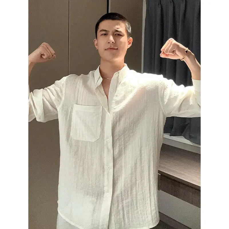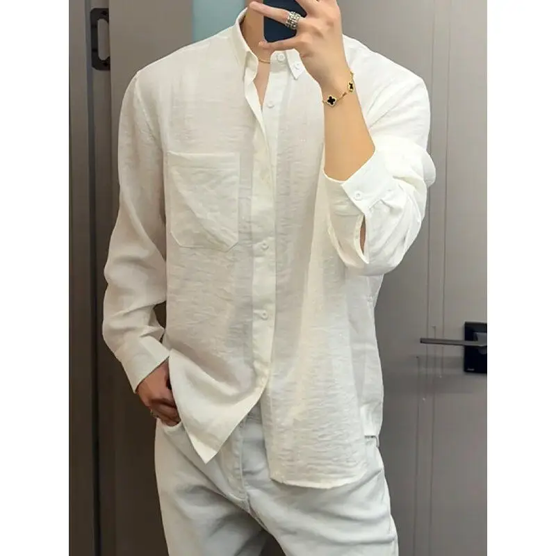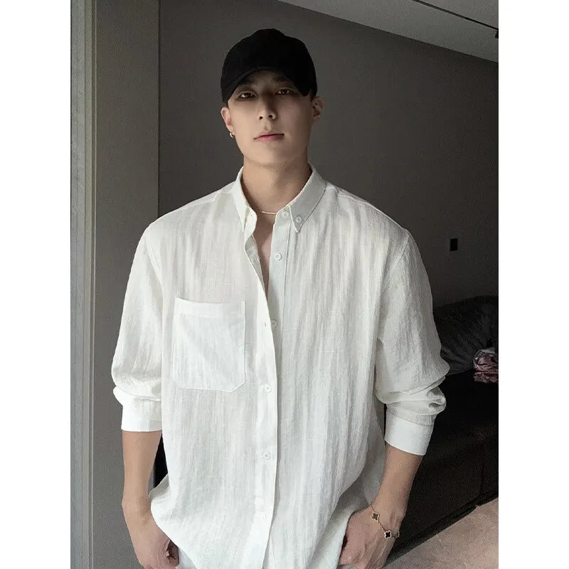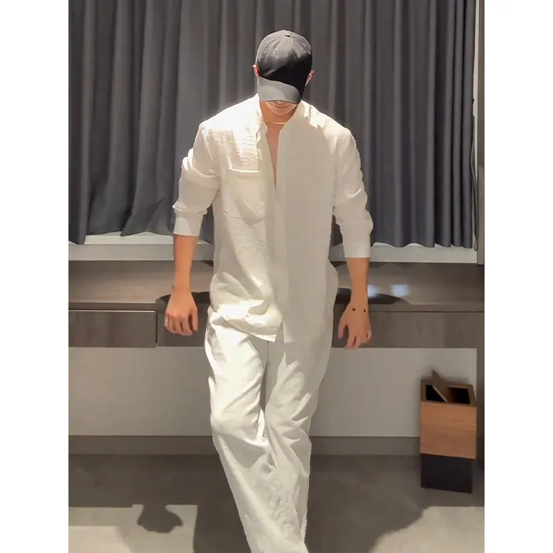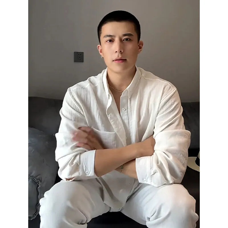 WIAOFELLAS - 100% Cotton Men's Linen-Textured Long Sleeve Shirt – Breathable Classic Fit for Casual Minimalist Style Loose and Casual.