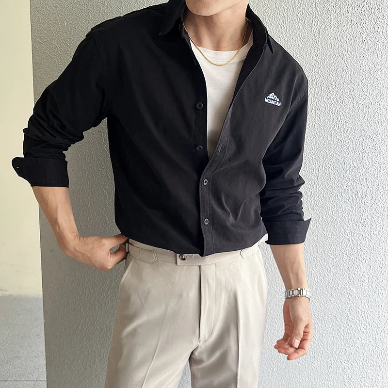 WIAOFELLAS  -  100% Cotton Quality Long Sleeve Men's Casual Shirt Fashion Autumn Embroidery Logo Slim Korean Men Shirts Coat Outdoor Plus Size
