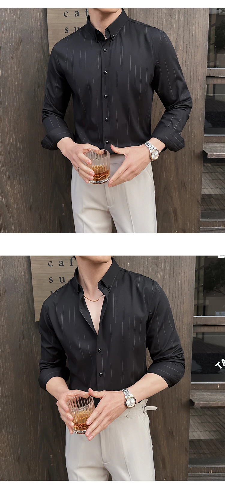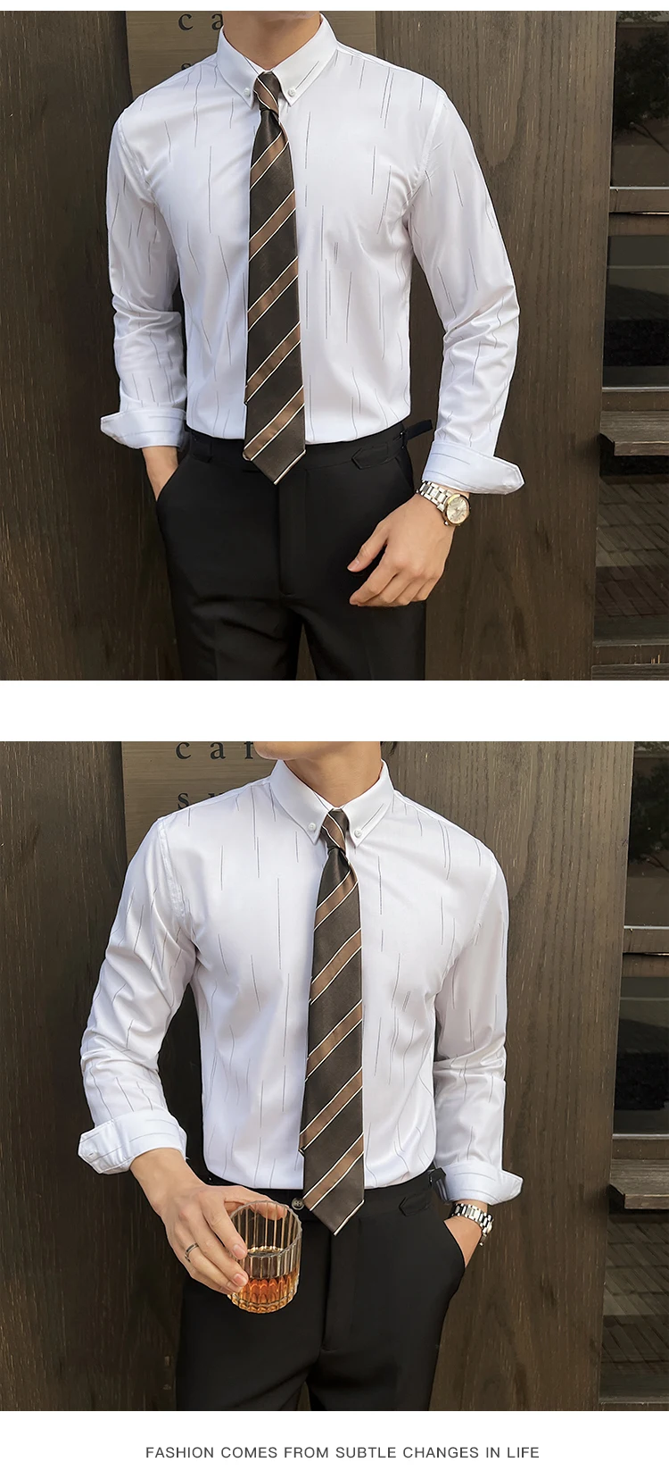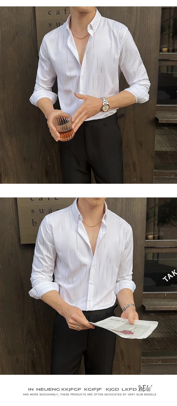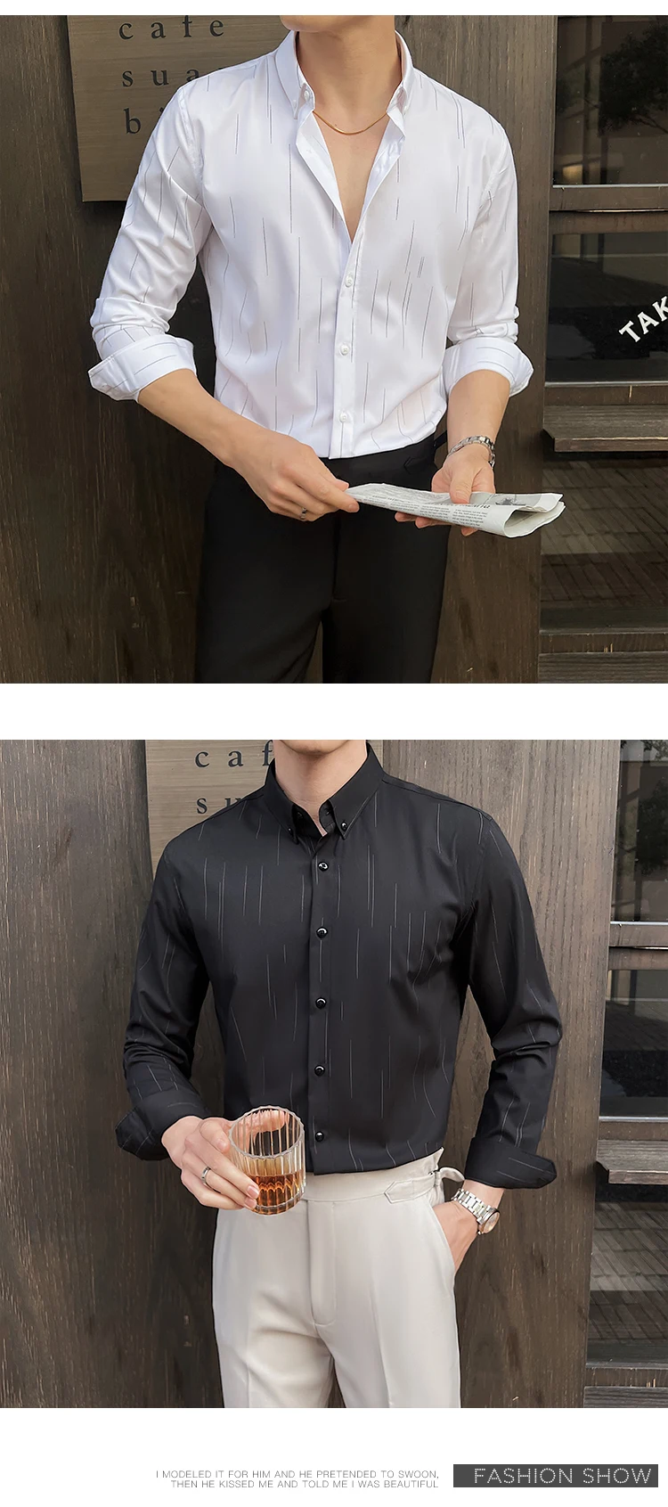 WIAOFELLAS - 5XL Plus Size Men's Striped Shirt Business Office Long Sleeve Slim Shirts Blouse Men Chemise Homme Luxe Haute Qualite Streetwear