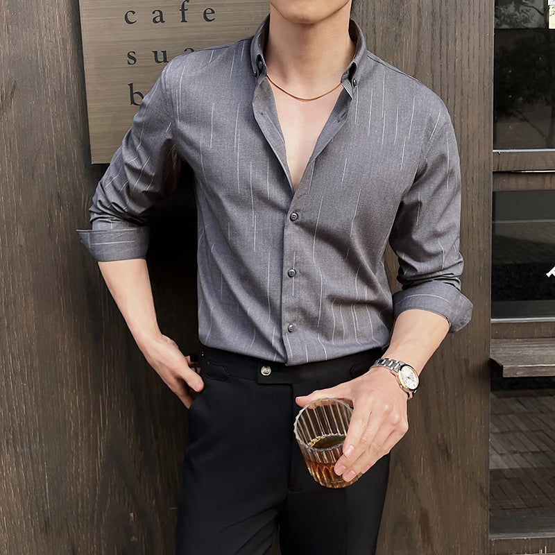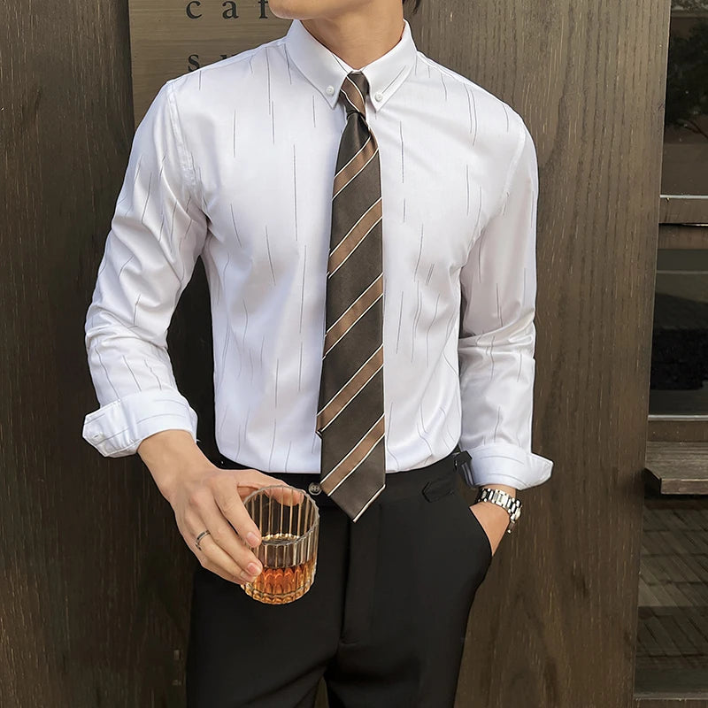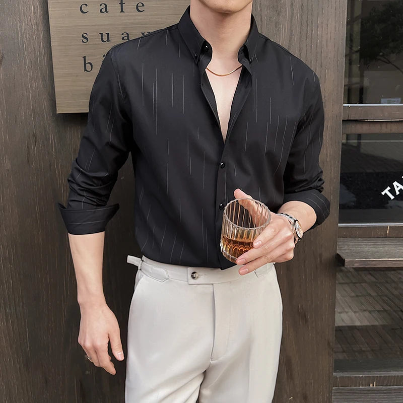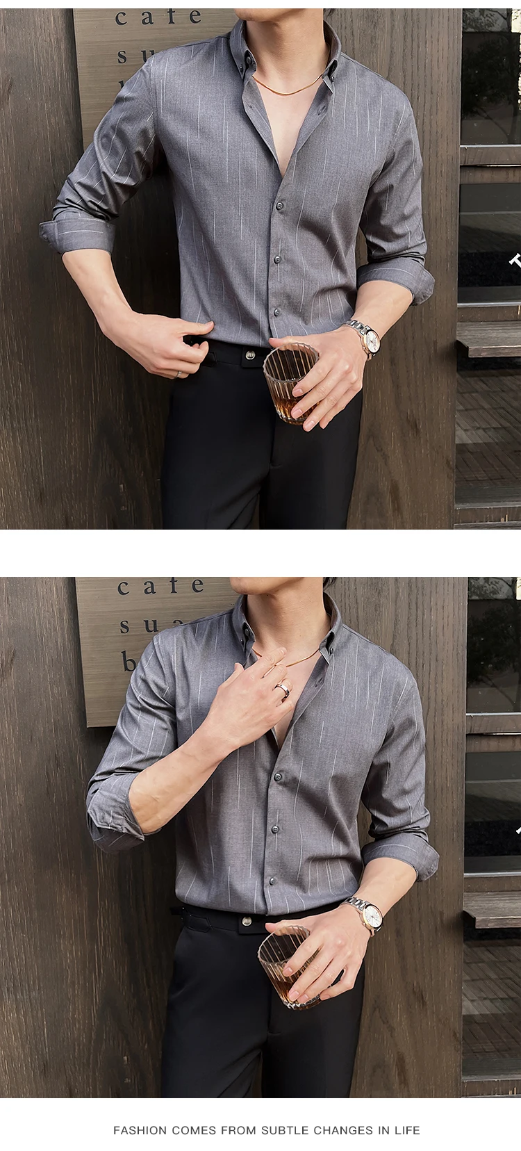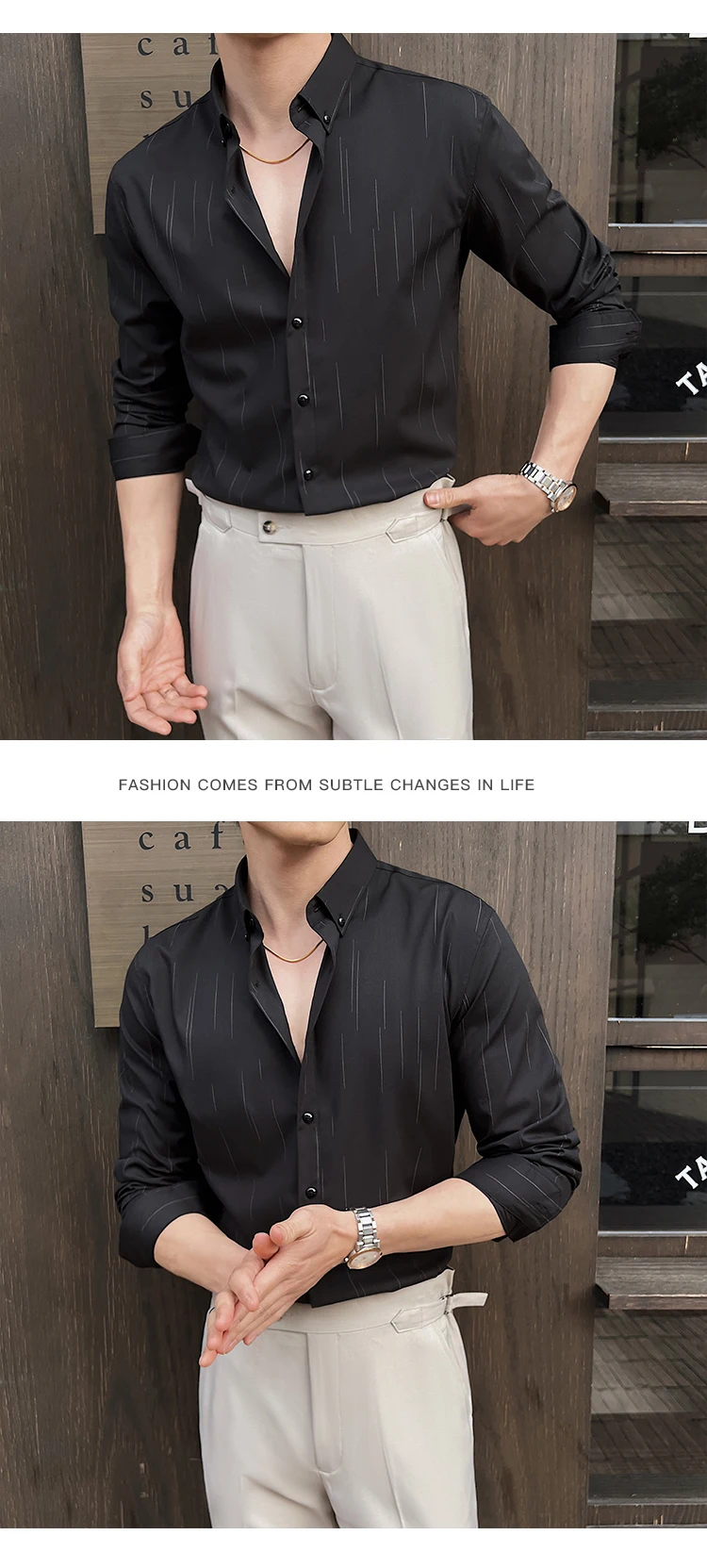 WIAOFELLAS - 5XL Plus Size Men's Striped Shirt Business Office Long Sleeve Slim Shirts Blouse Men Chemise Homme Luxe Haute Qualite Streetwear