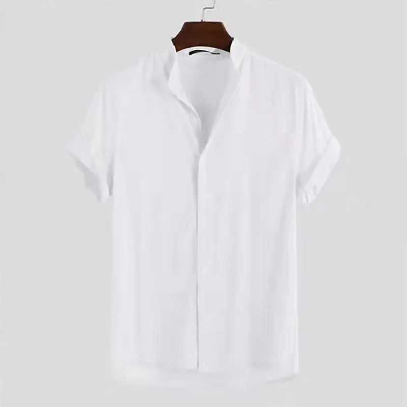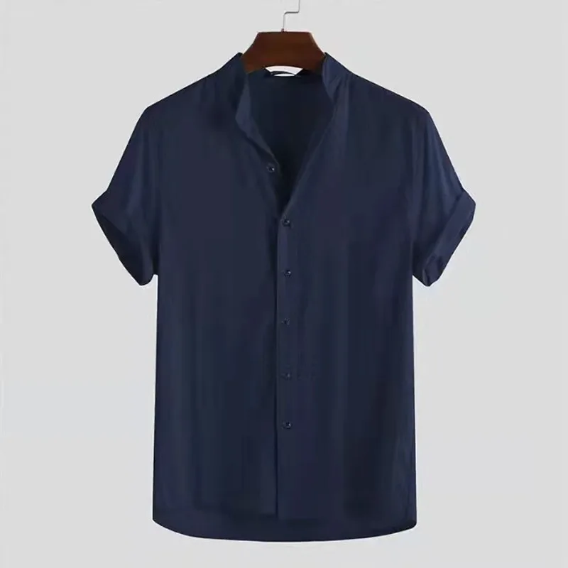 WIAOFELLAS  -  5XL Stand-up Collar Cardigan Shirt New Fashion Casual Solid Color Short-sleeved Clothing Designer Leisure Man Daily Menwear