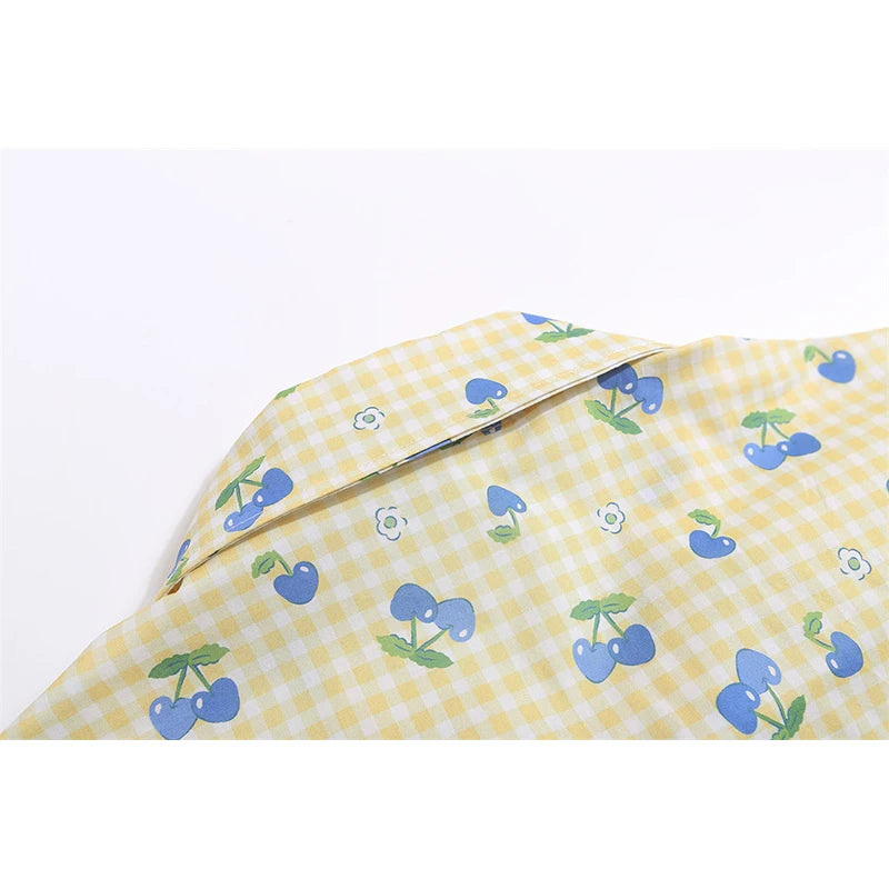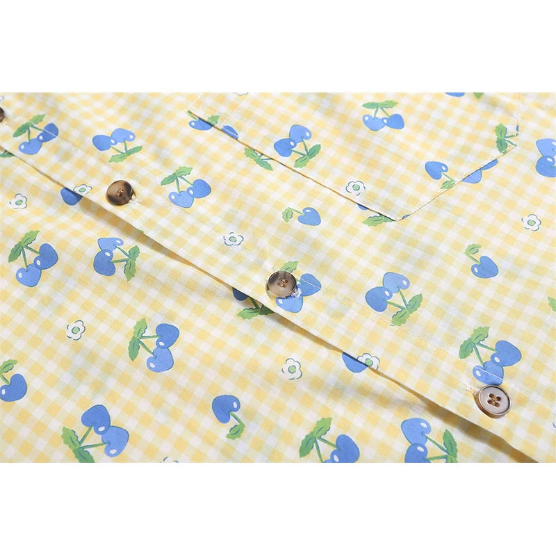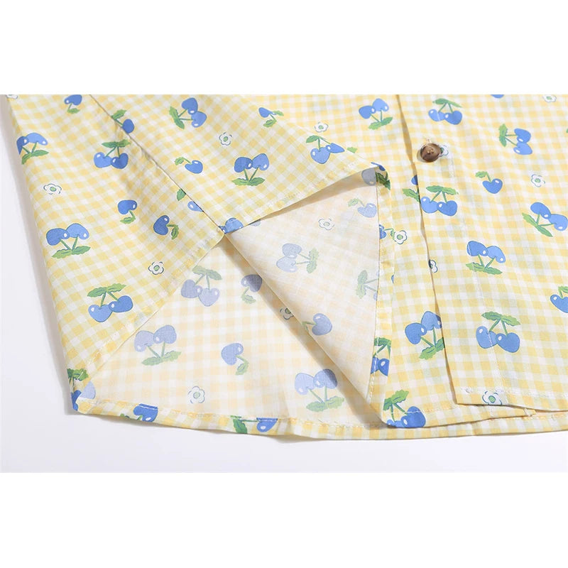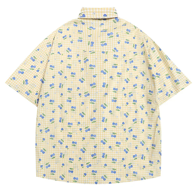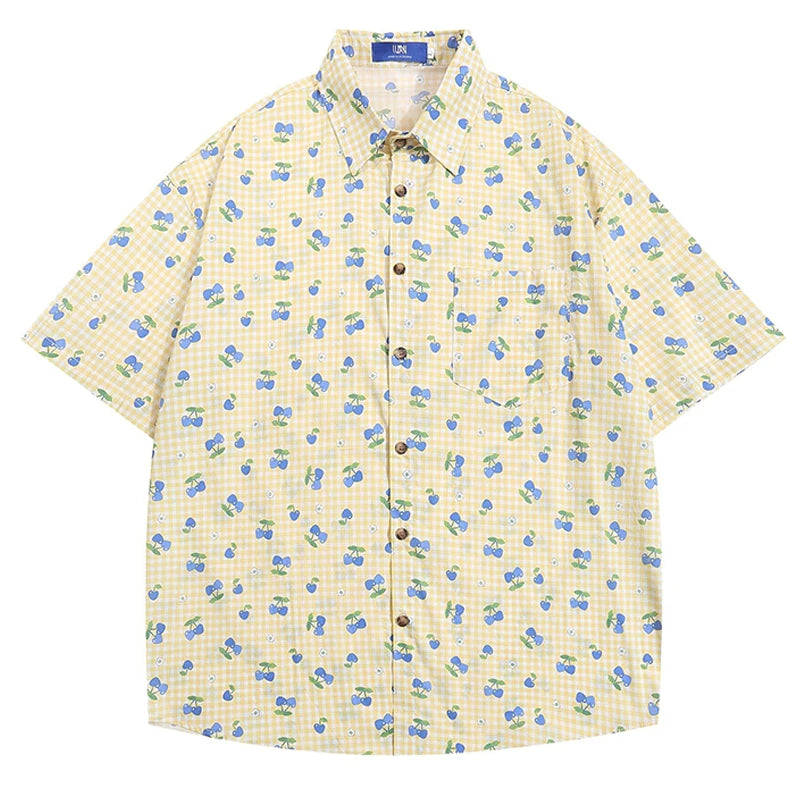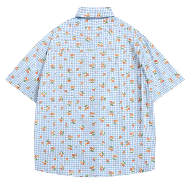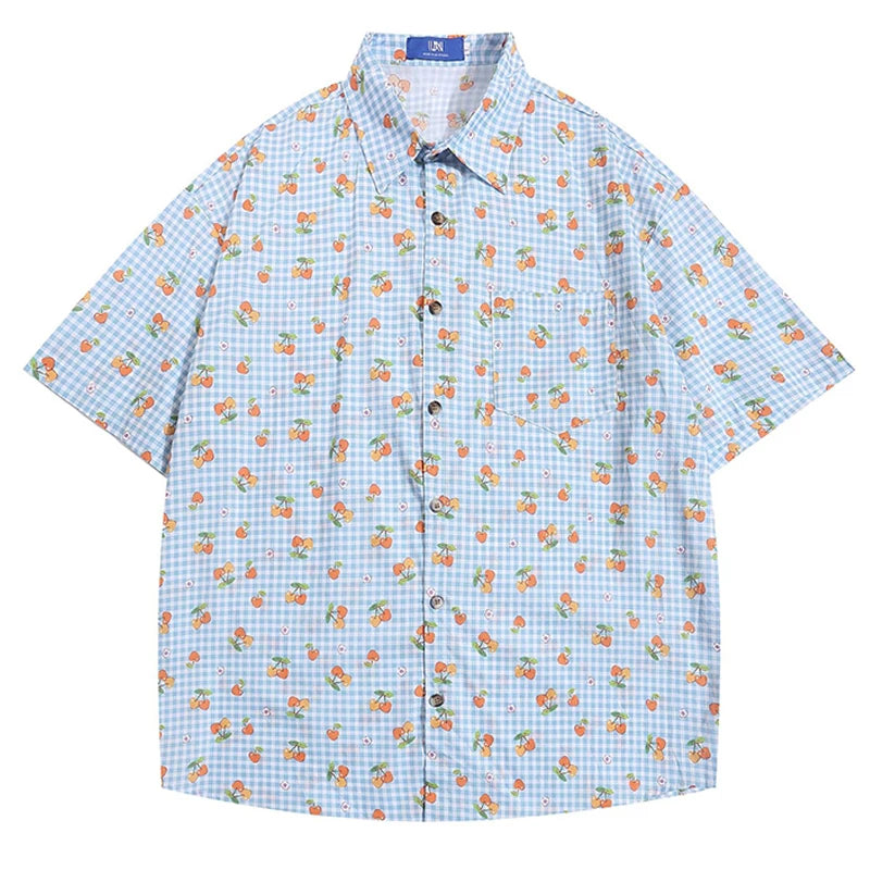 WIAOFELLAS  -  American Retro Full Of Print Cherry Shirts For Men Summer Button Up Casual Streetwear Male Couple Top Tees Hip Hop Men Clothing