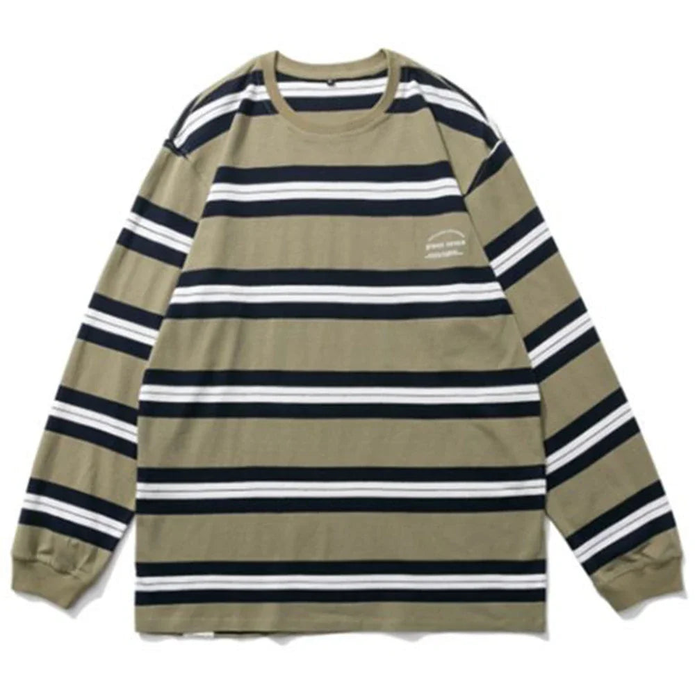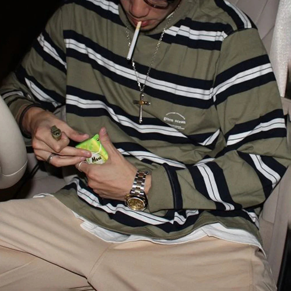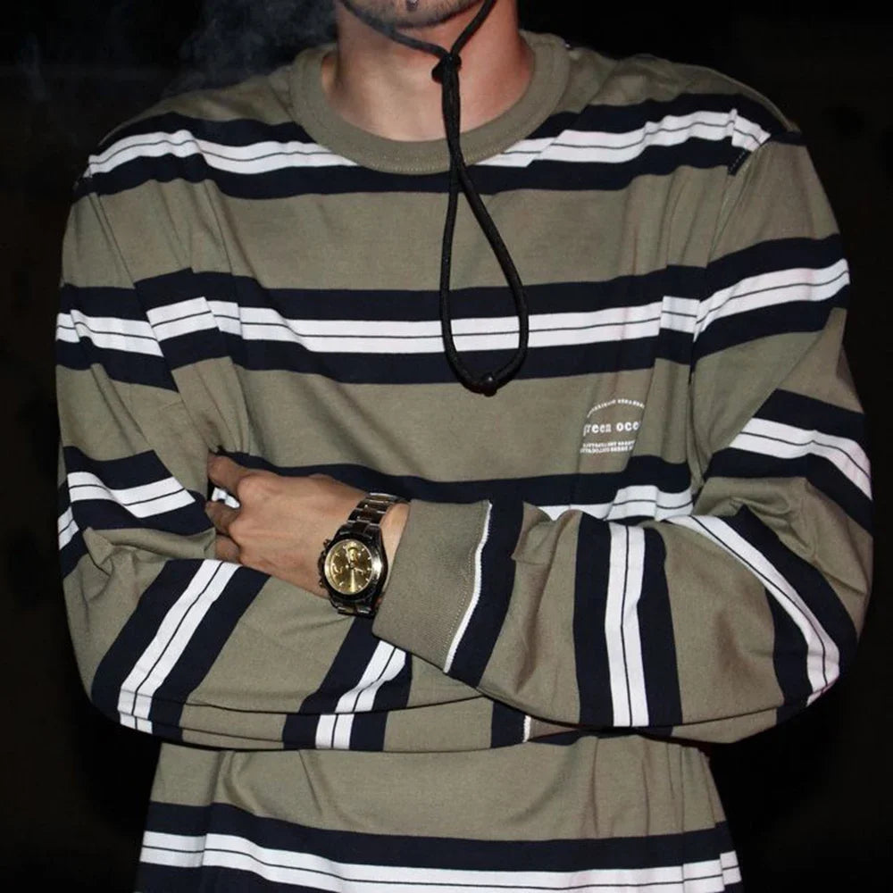 WIAOFELLAS - American Retro Trendy Contrasting Striped Round Neck Long-Sleeved T-Shirt Casual Hip-Hop Street Vibe Tops For Men Women Couples