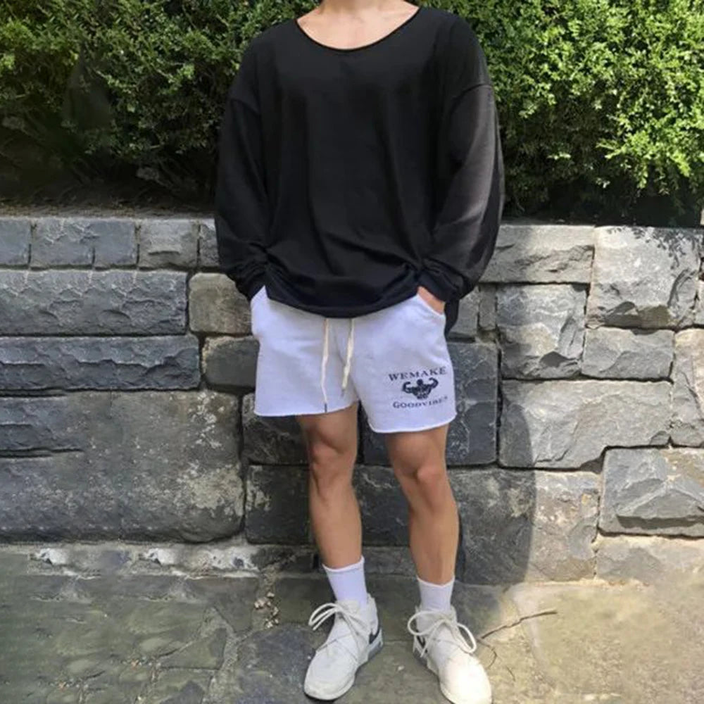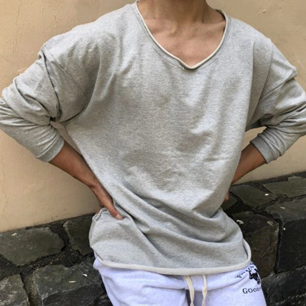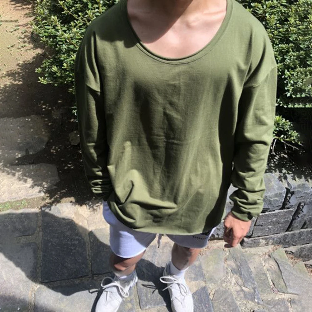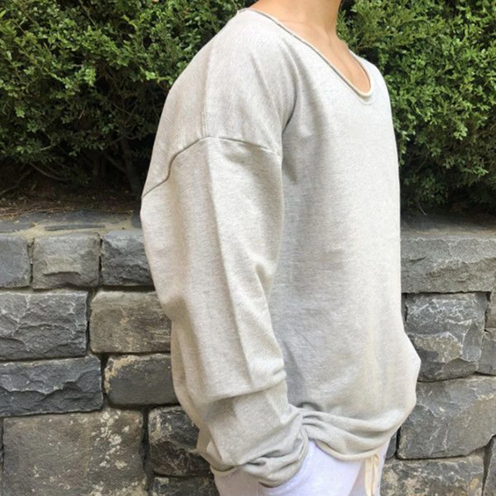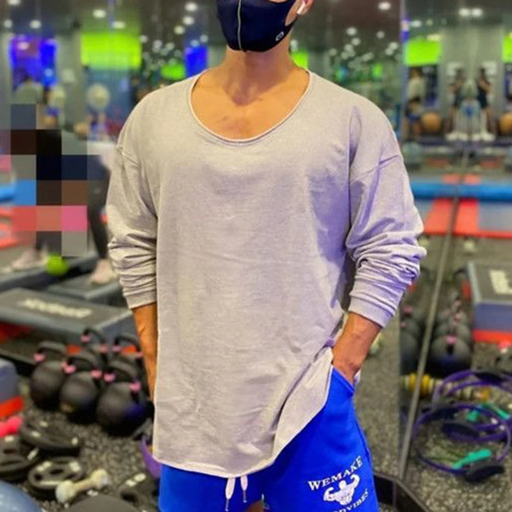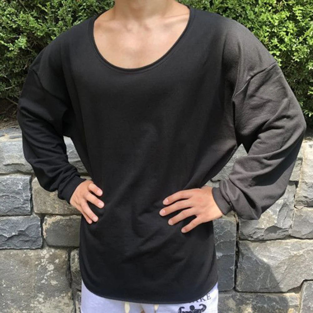 WIAOFELLAS - American Street Solid Color Round Neck Fitness Sports Long-Sleeved Tops Mens Loose Casual T-Shirt Training Running Base Layer