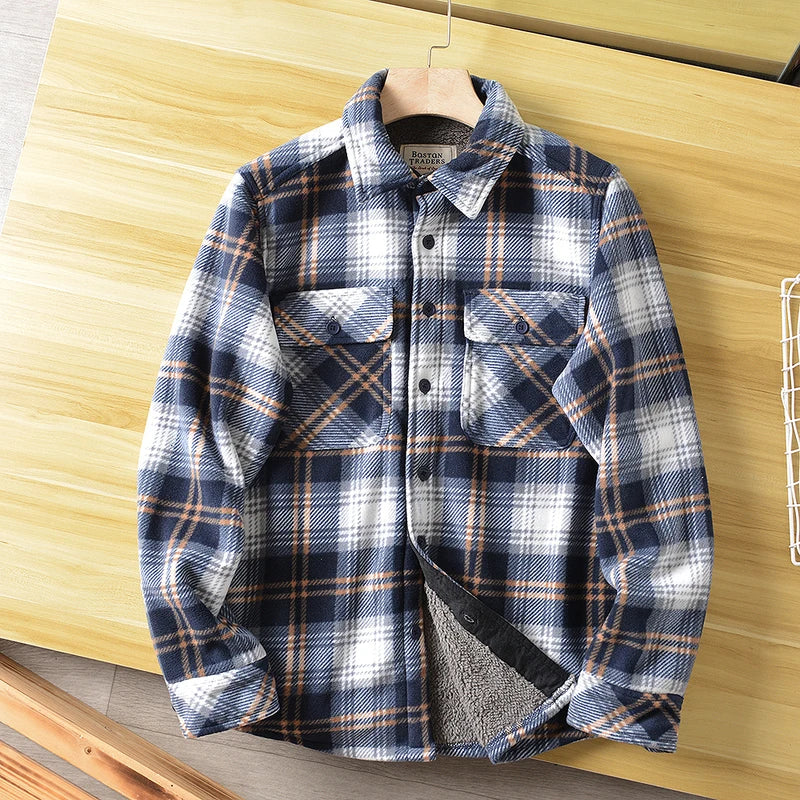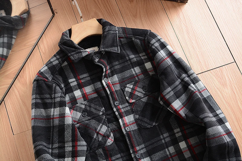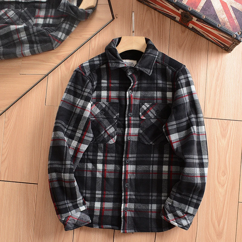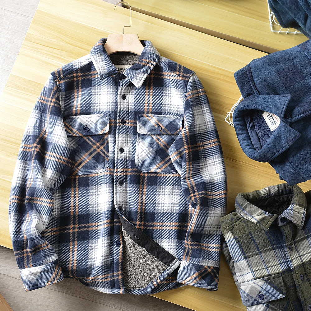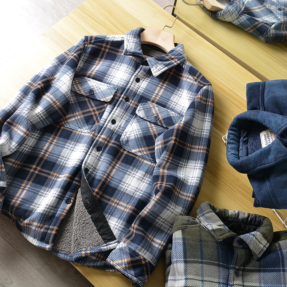 WIAOFELLAS - Americans Style Men's Winter Sherpa Fleece Lined Flannel Shirt Jacket Workwear Warm Button Up Plaid Shirt Jacket Male Clothing