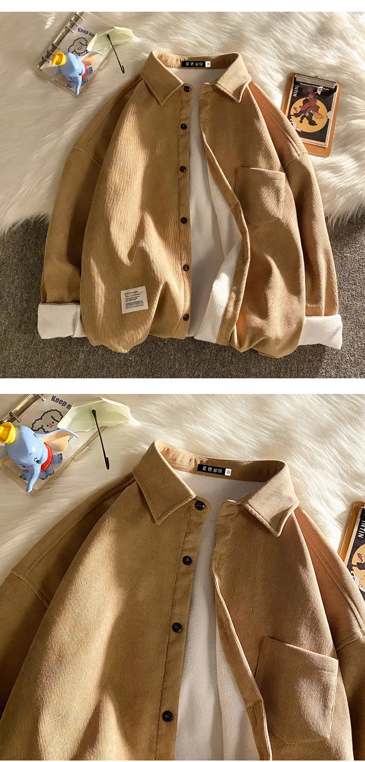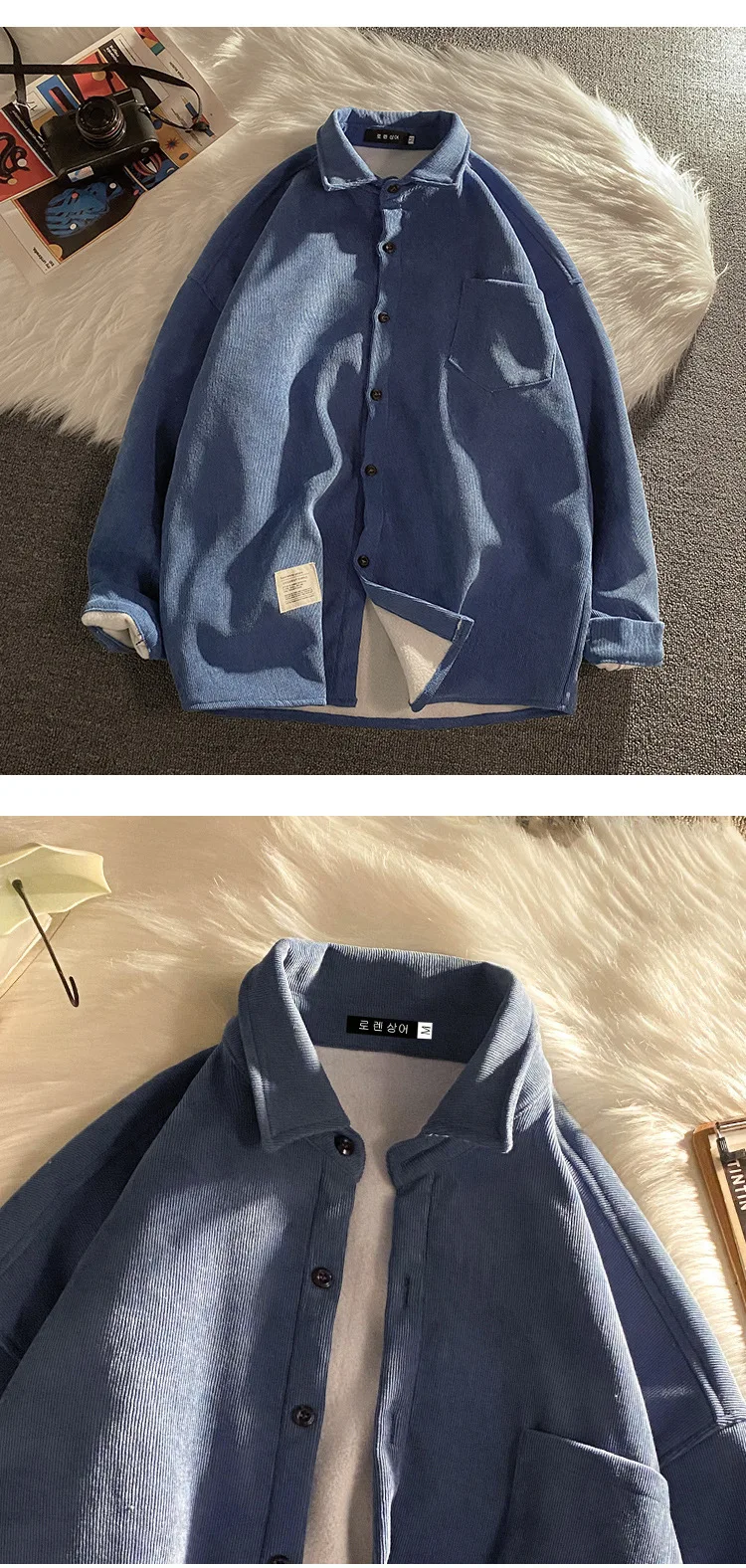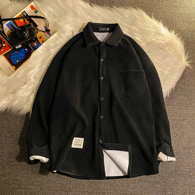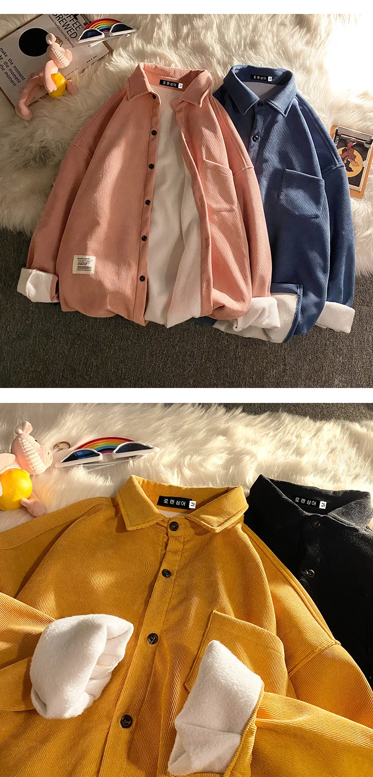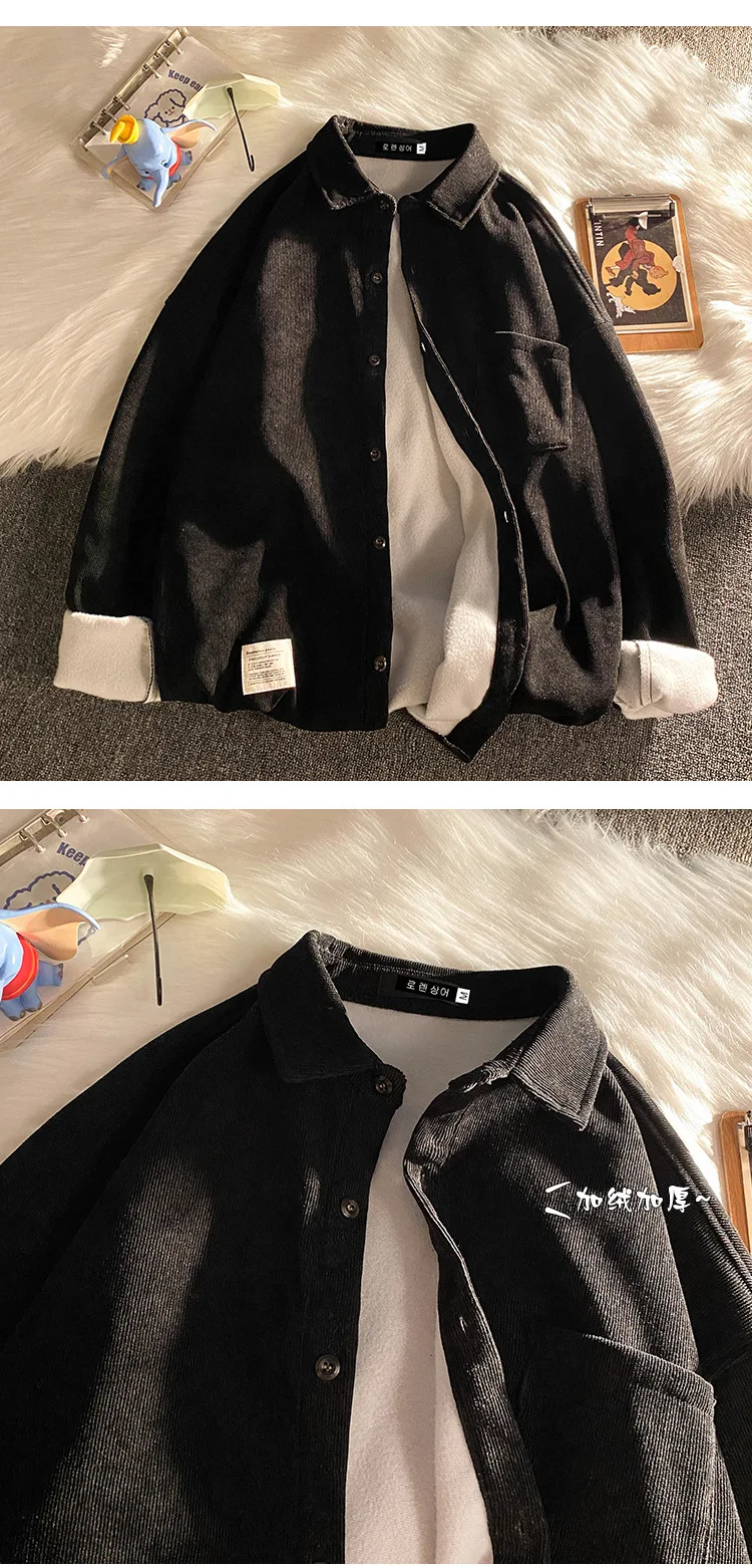 WIAOFELLAS - Autumn New Thickened Long Sleeved Shirt Korean Fashion Loose Men's Wear