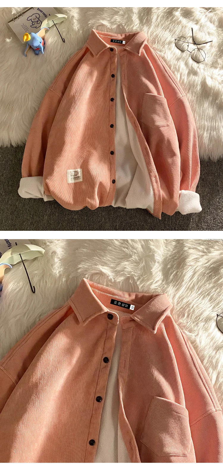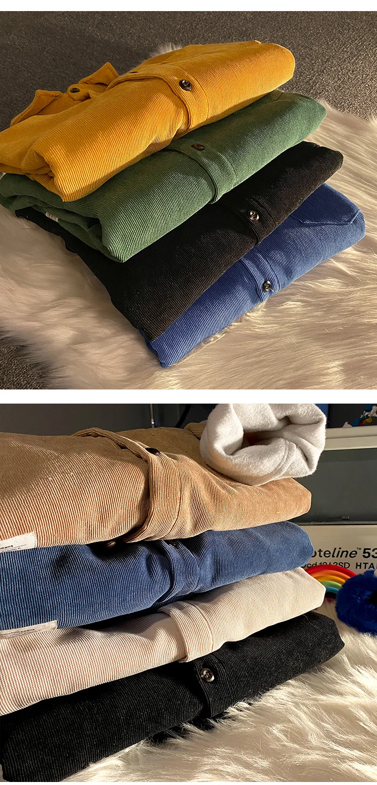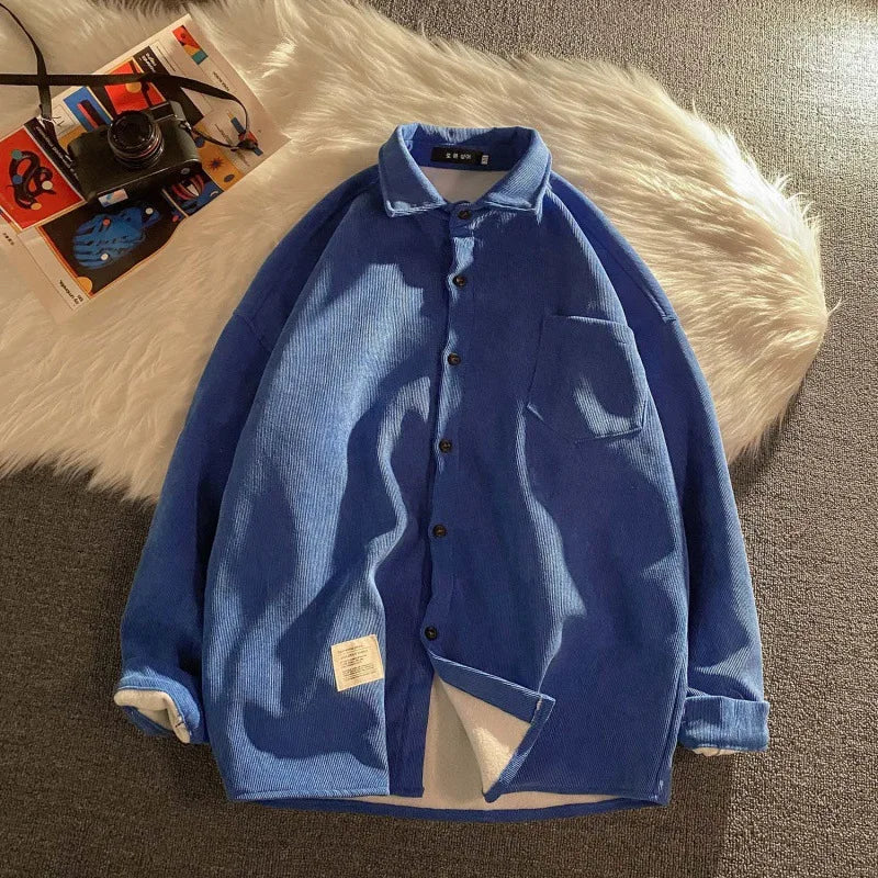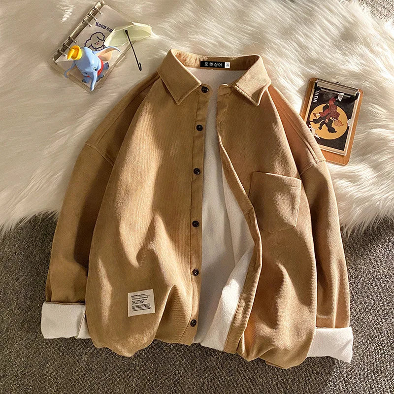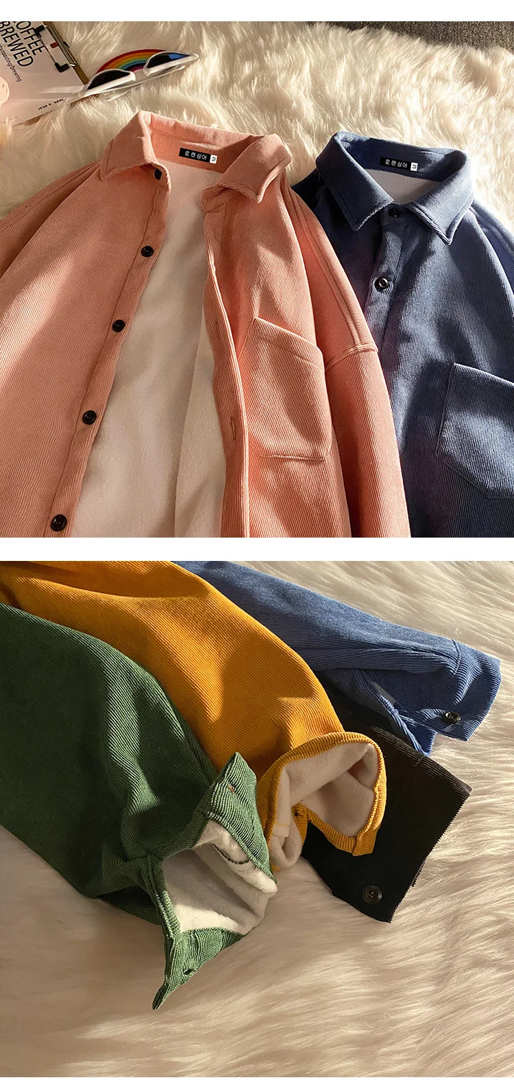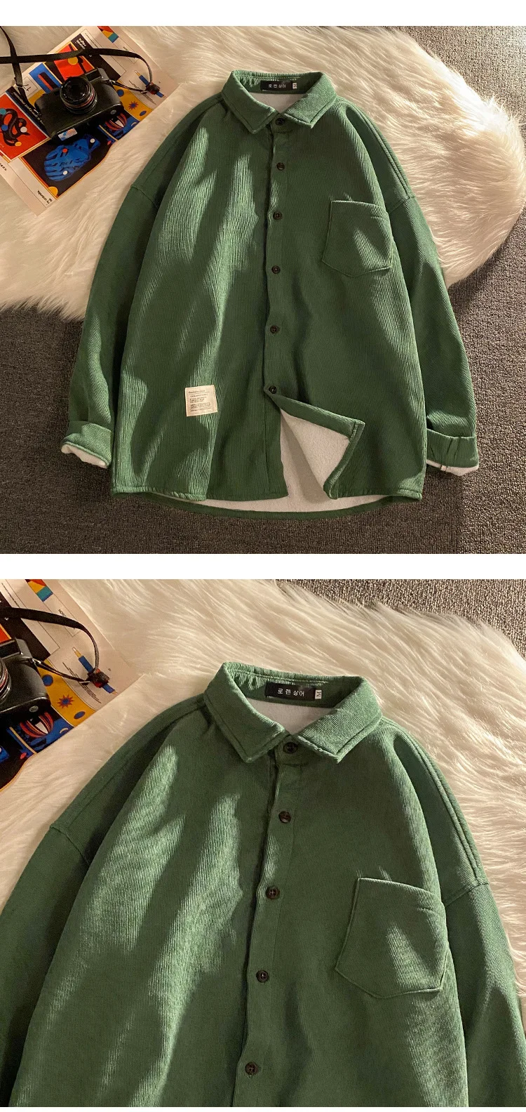WIAOFELLAS - Autumn New Thickened Long Sleeved Shirt Korean Fashion Loose Men's Wear