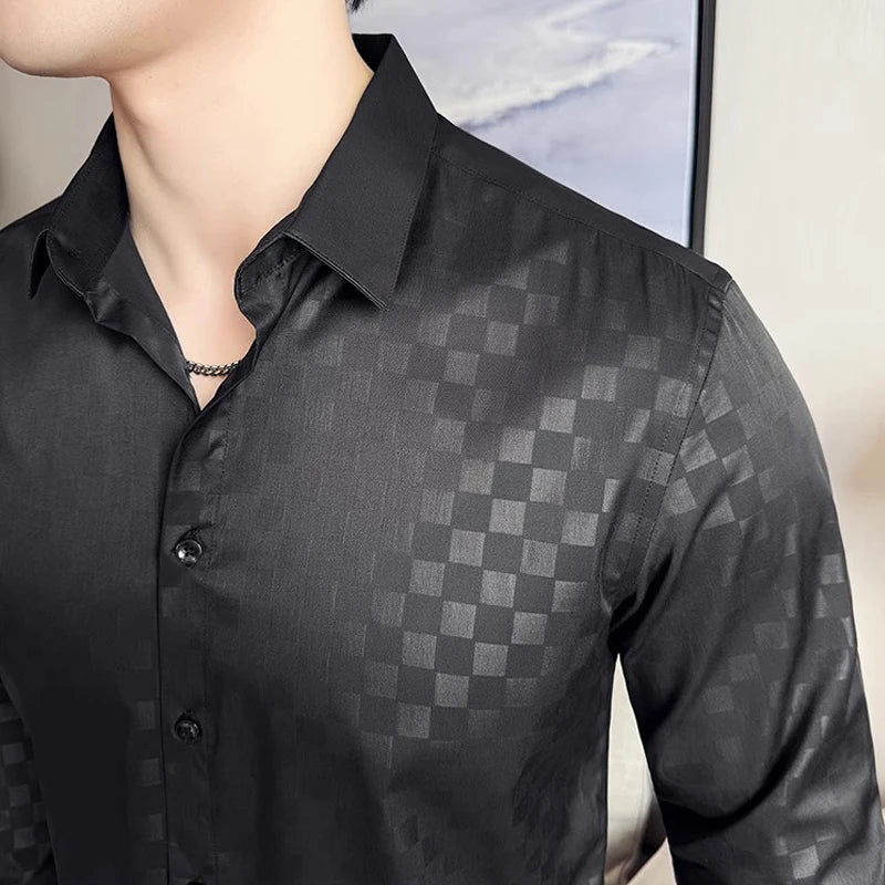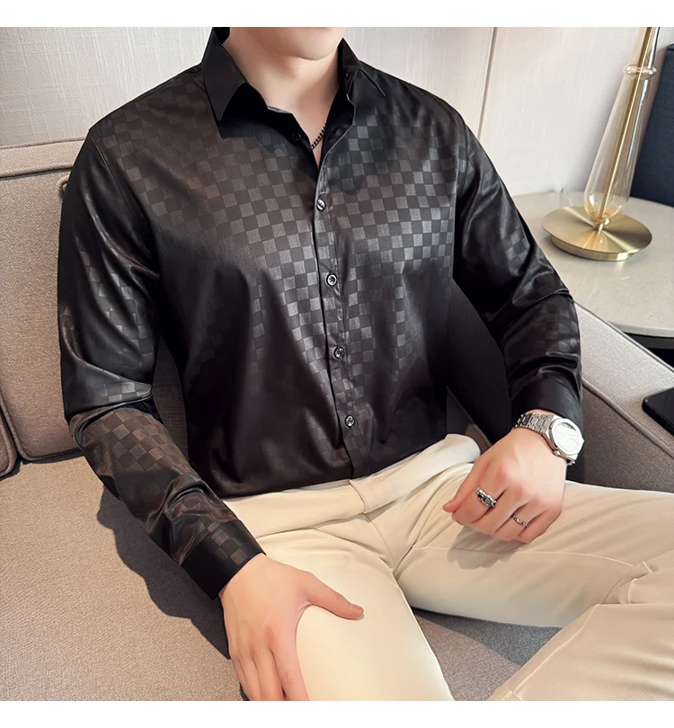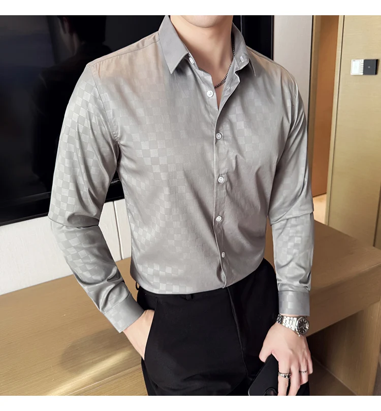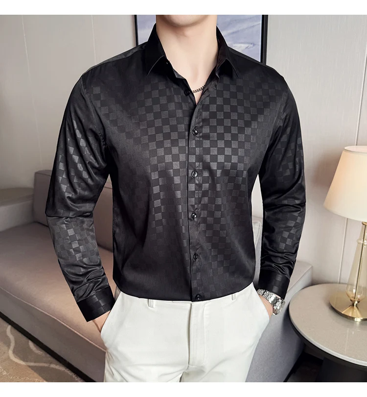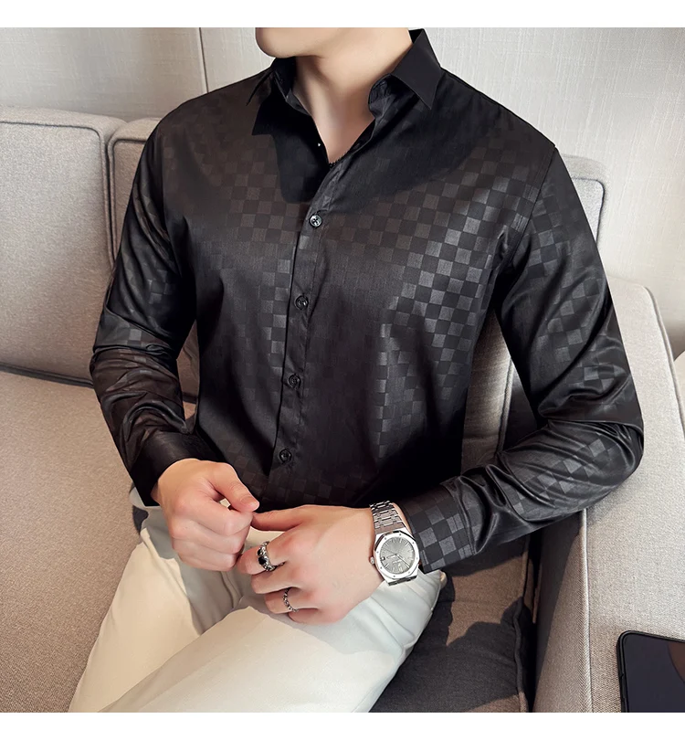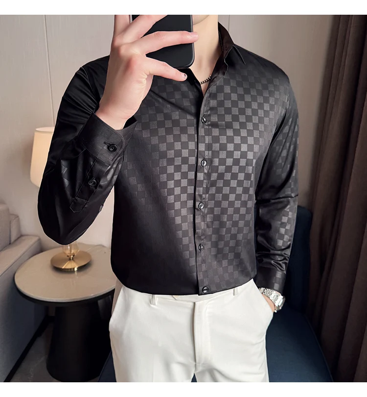 WIAOFELLAS - British Style Slim Fit Business Men Shirts Spring Autumn Vintage Long Sleeved Mens Plaid Shirt Fashion Social Men's Clothing 4XL