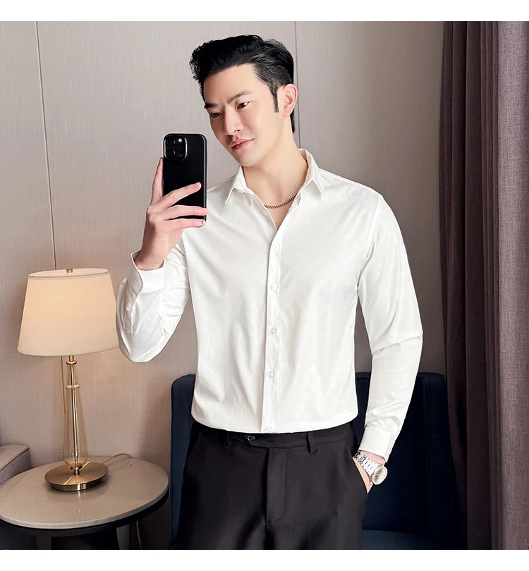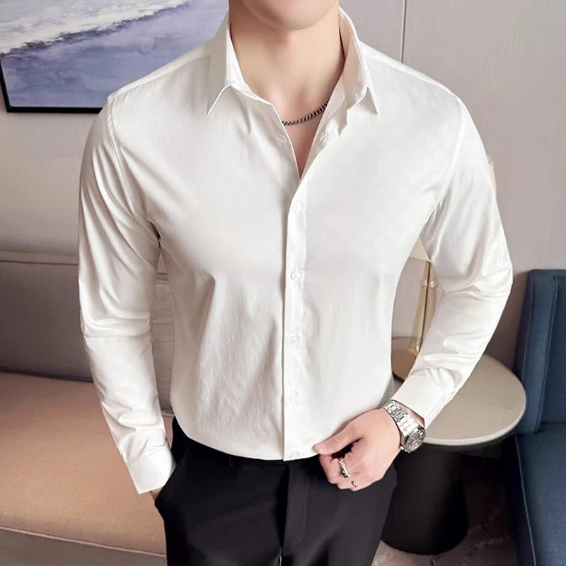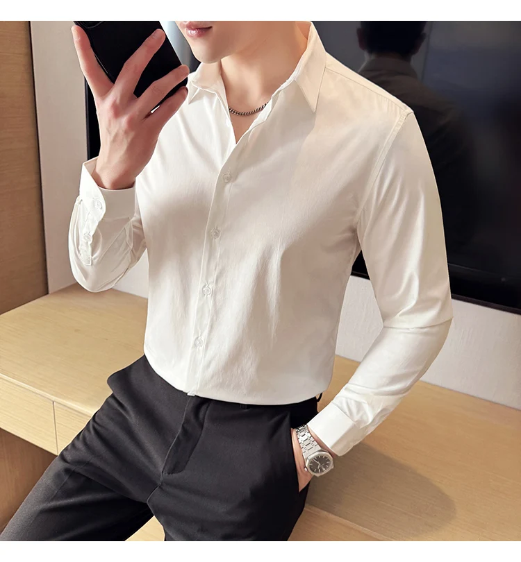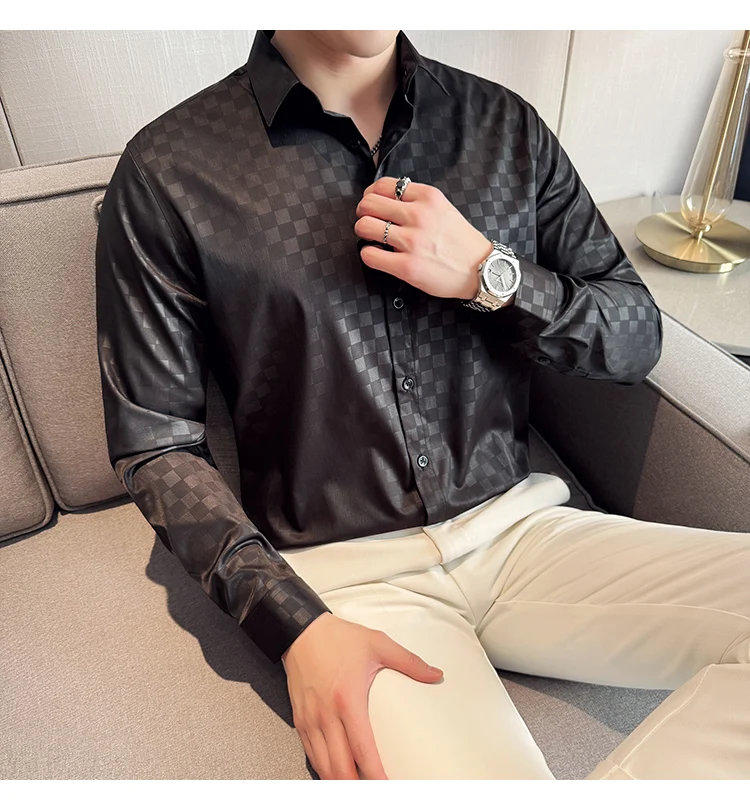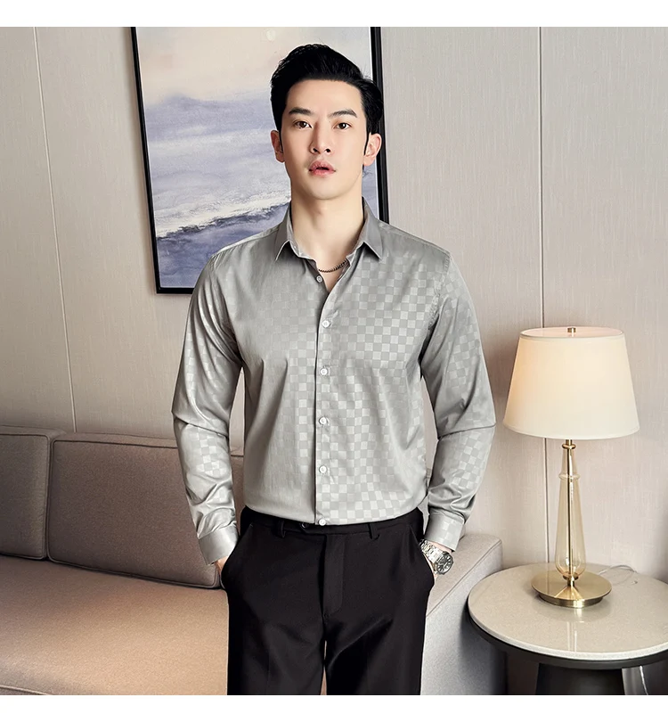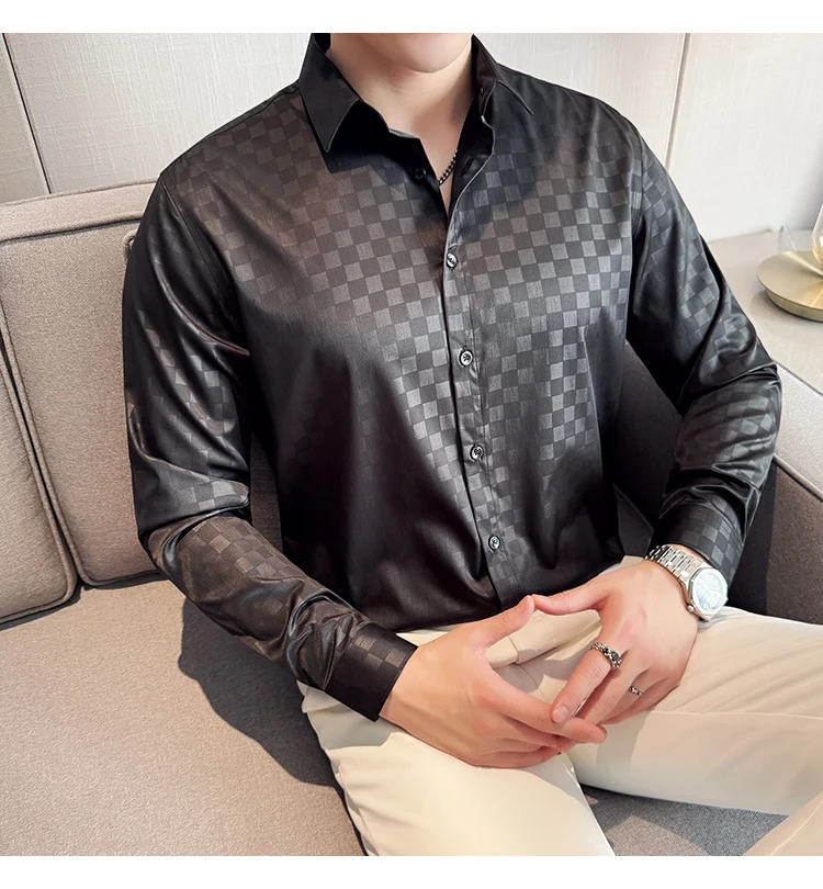 WIAOFELLAS - British Style Slim Fit Business Men Shirts Spring Autumn Vintage Long Sleeved Mens Plaid Shirt Fashion Social Men's Clothing 4XL