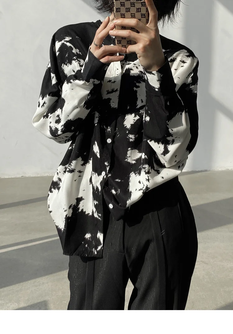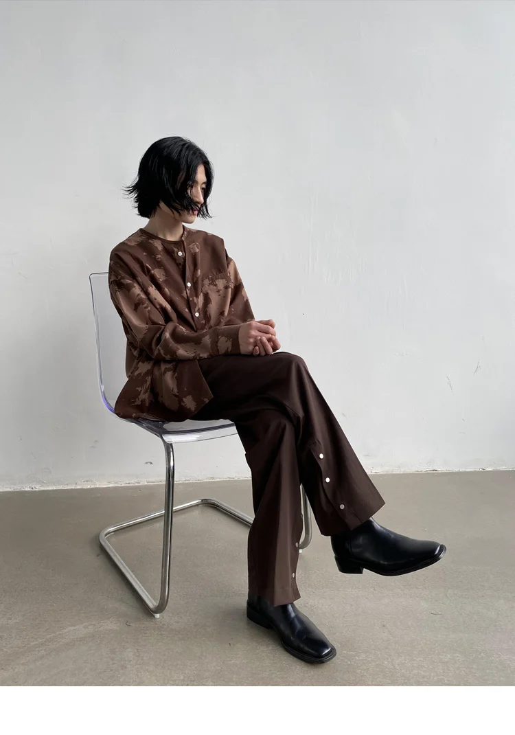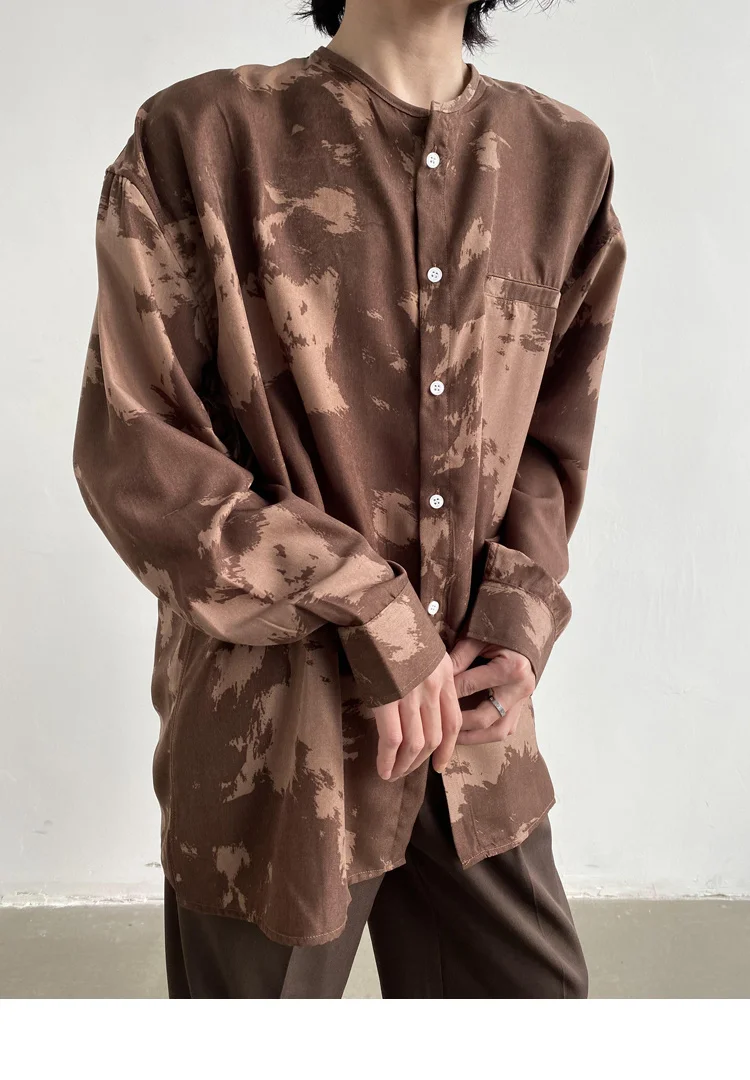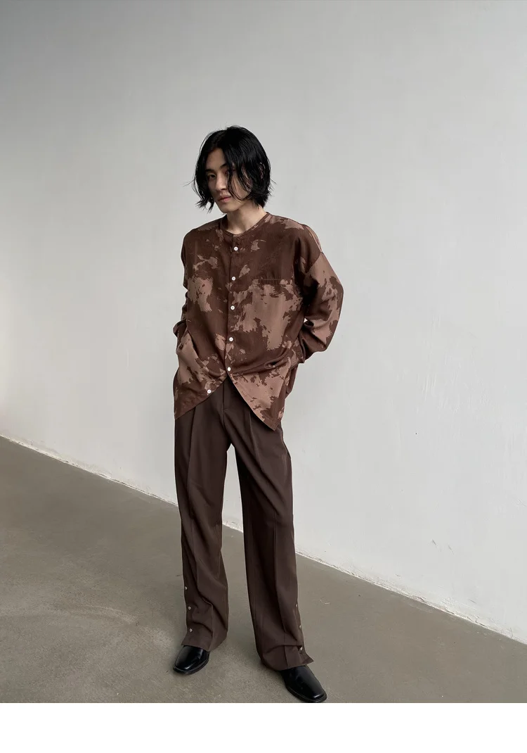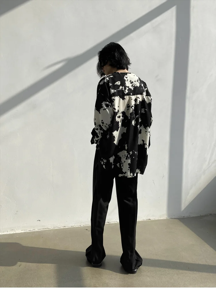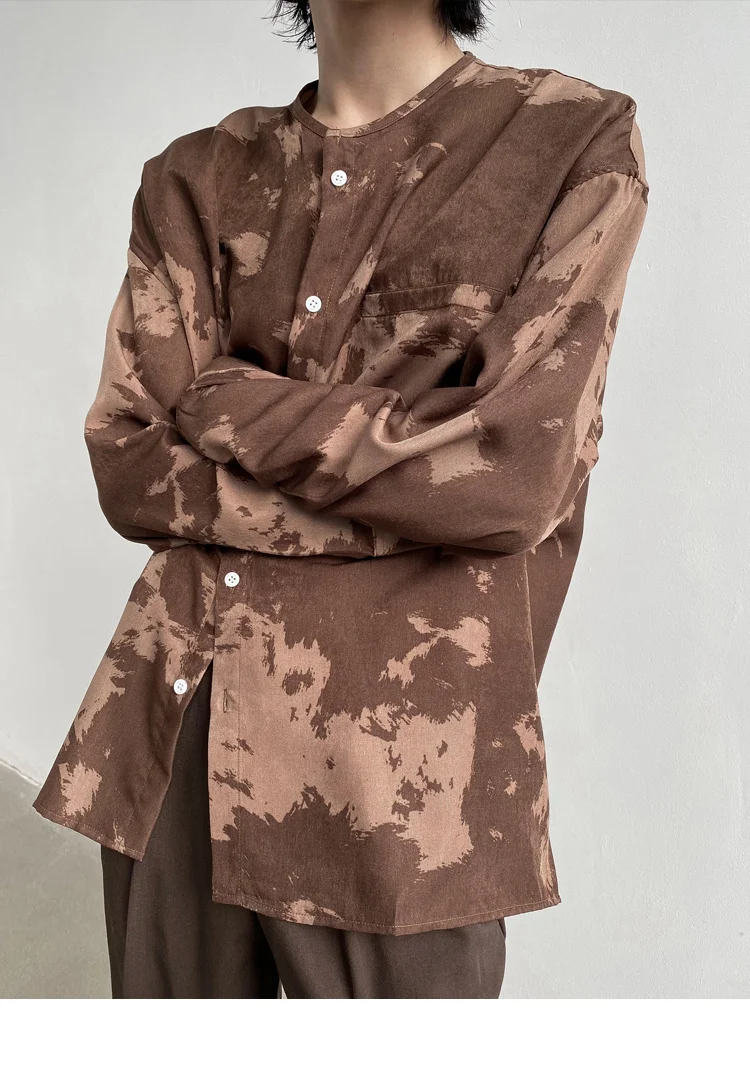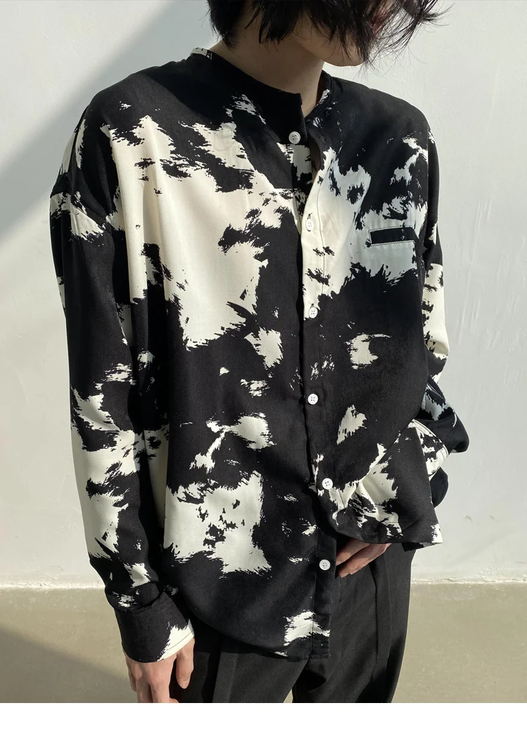 Wiaofellas - Casual Men's Round Neck Shirt Personalized Contrast Color Dyeing Korean Style Single Breasted New Loose Top 2A1820
