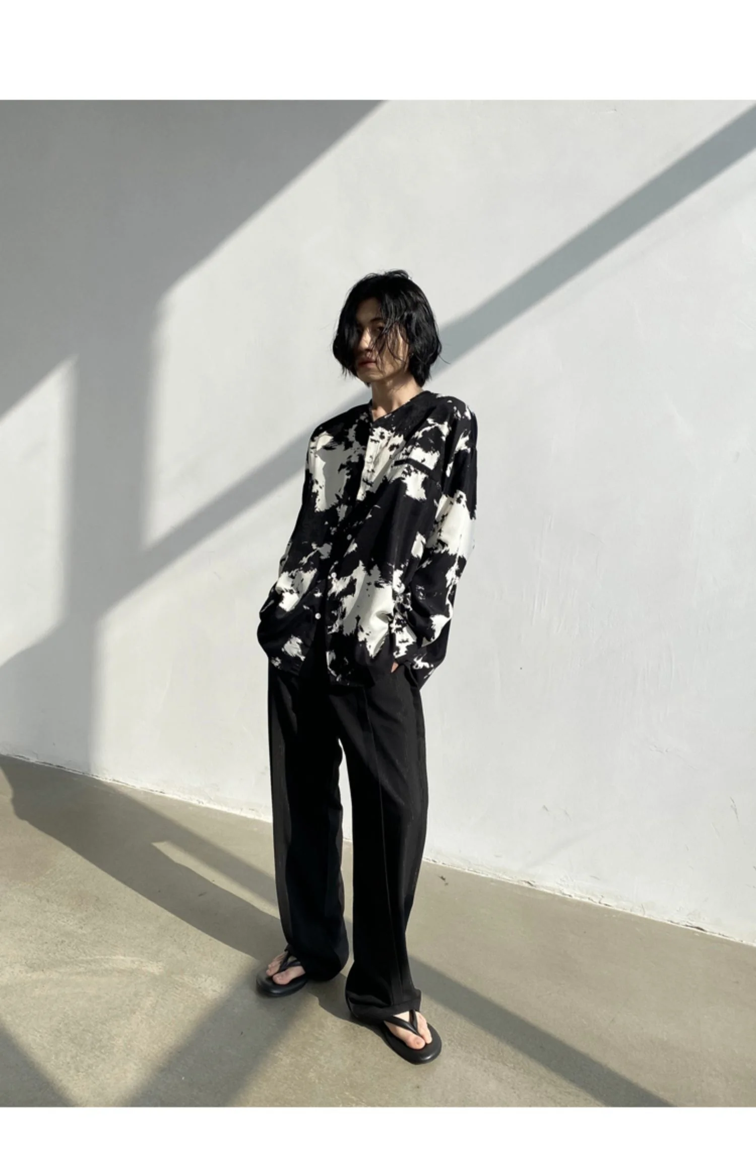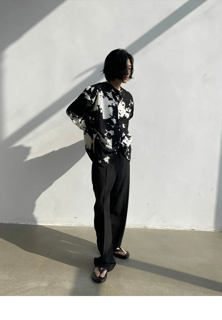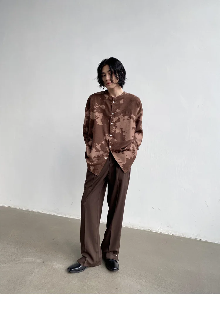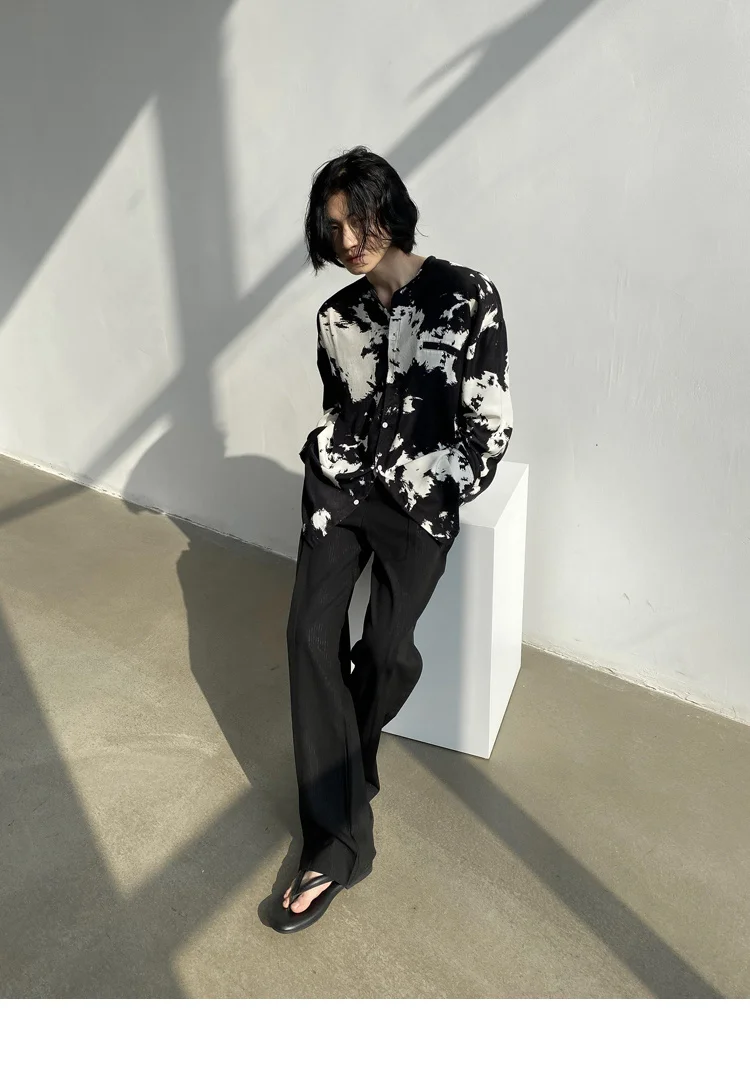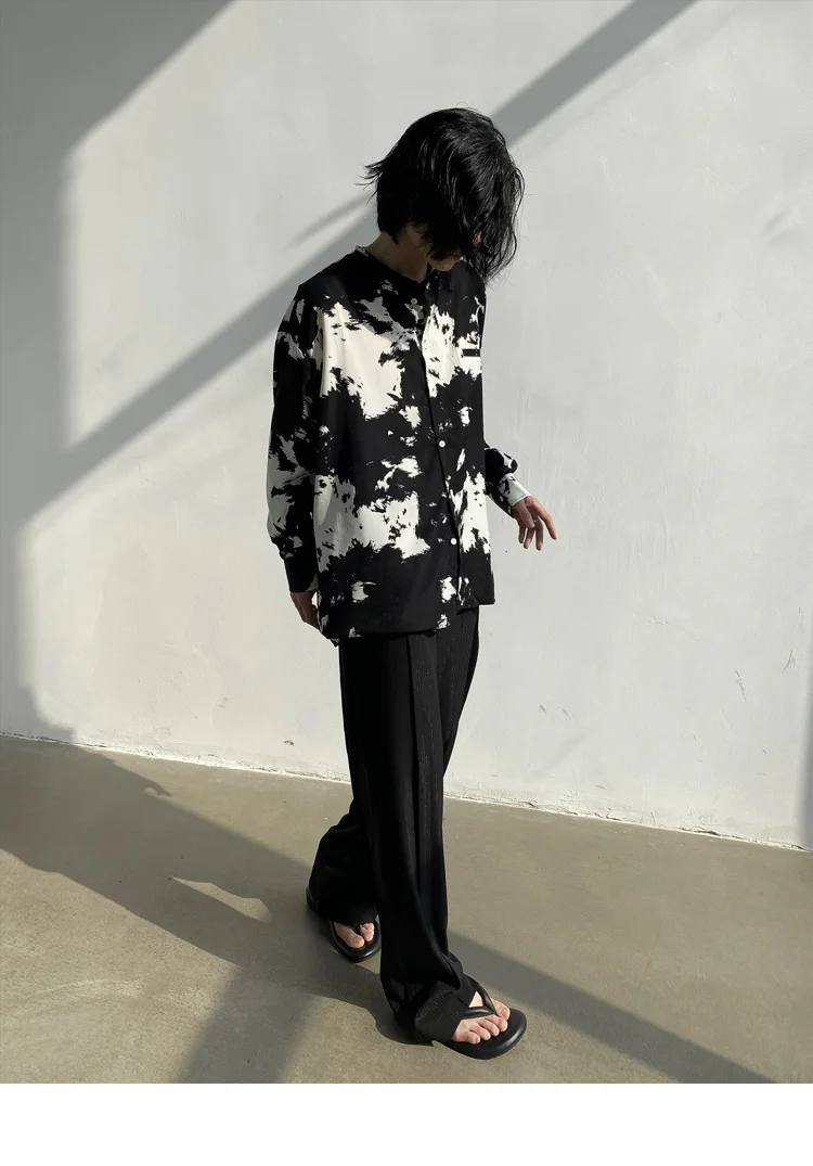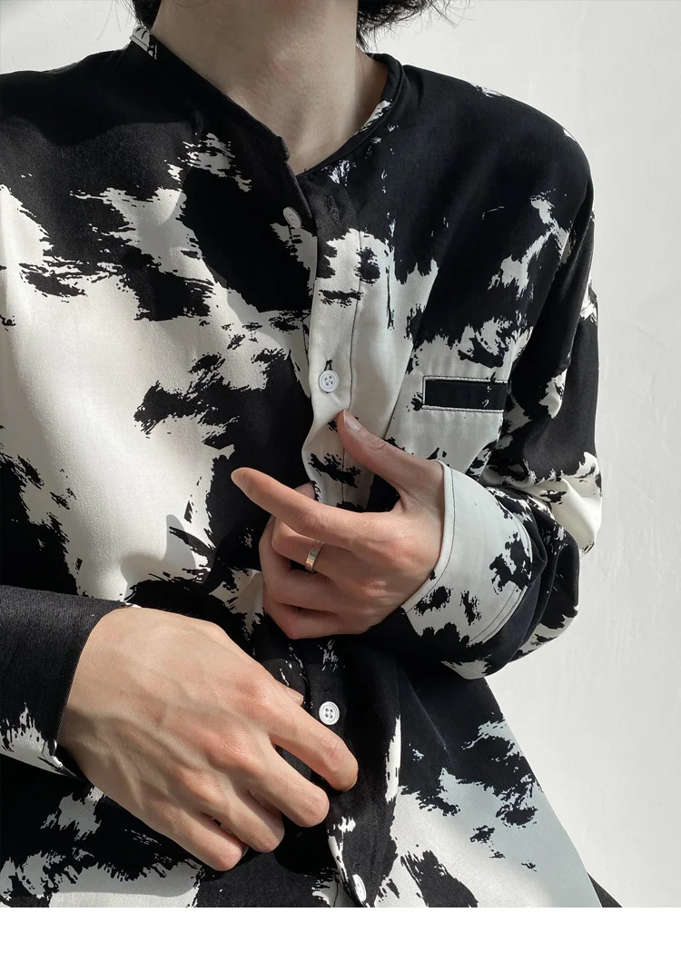 Wiaofellas - Casual Men's Round Neck Shirt Personalized Contrast Color Dyeing Korean Style Single Breasted New Loose Top 2A1820