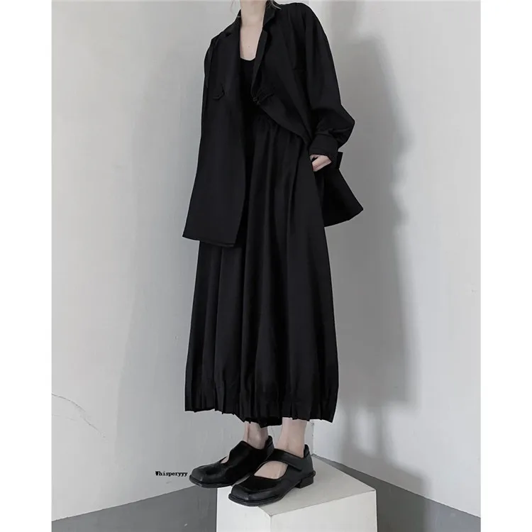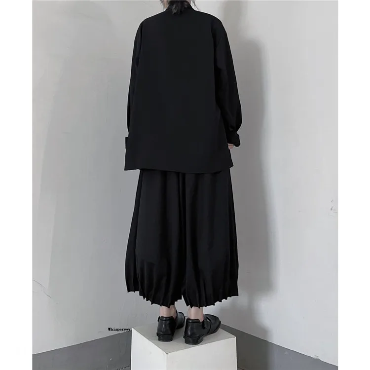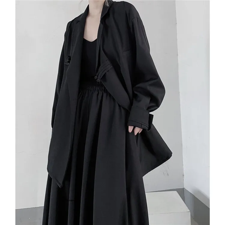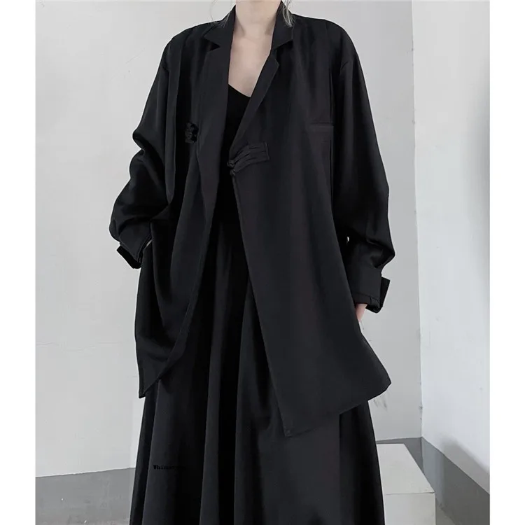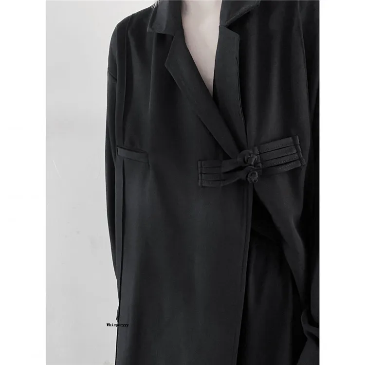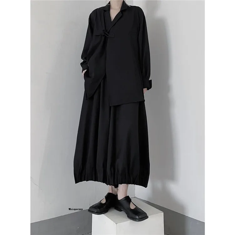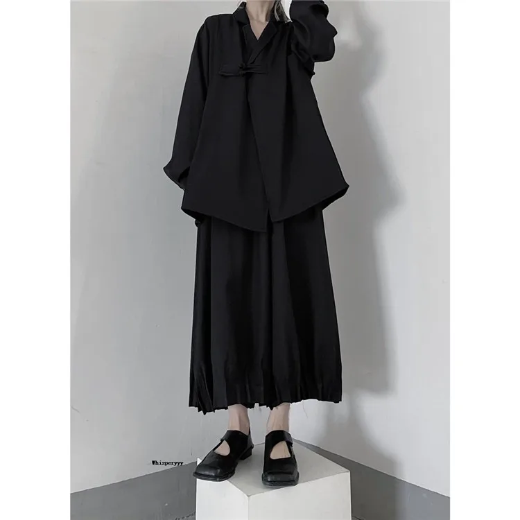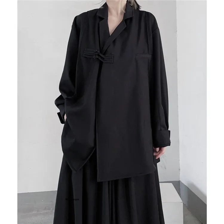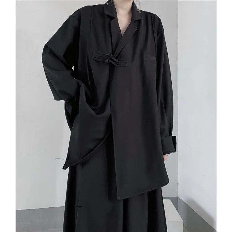 WIAOFELLAS - Chinese Style Black Shirt Jacket Long Sleeve Tops Men Women Vintage Loose Turndown Collar Hanfu Autumn Casual Kimono Hombre