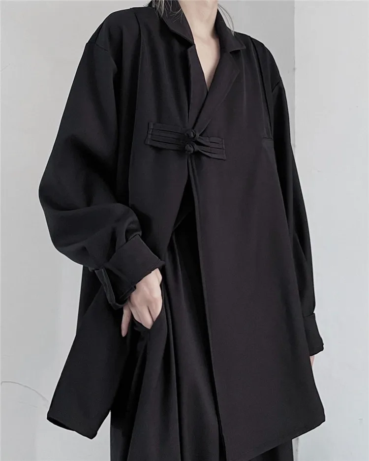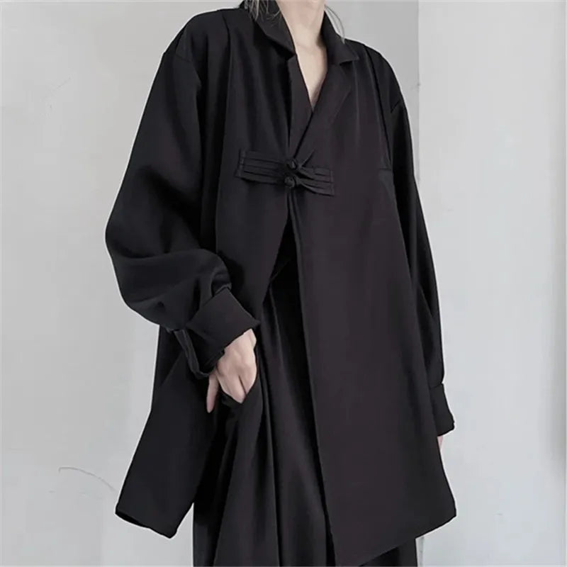 WIAOFELLAS  -  Chinese Style Black Shirt Jacket Long Sleeve Tops Men Women Vintage Loose Turndown Collar Hanfu Autumn Casual Kimono Hombre