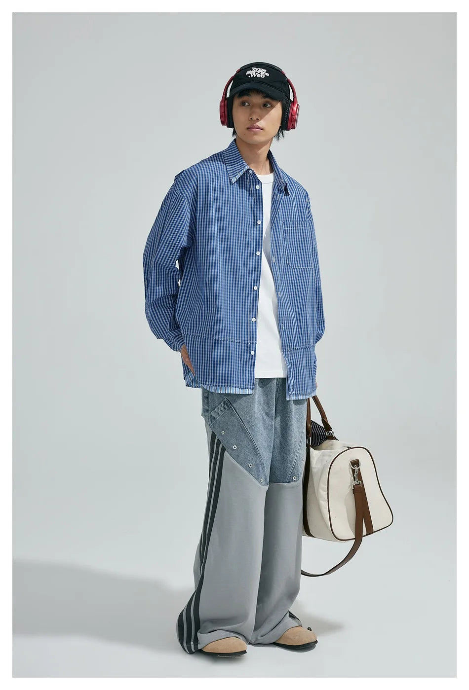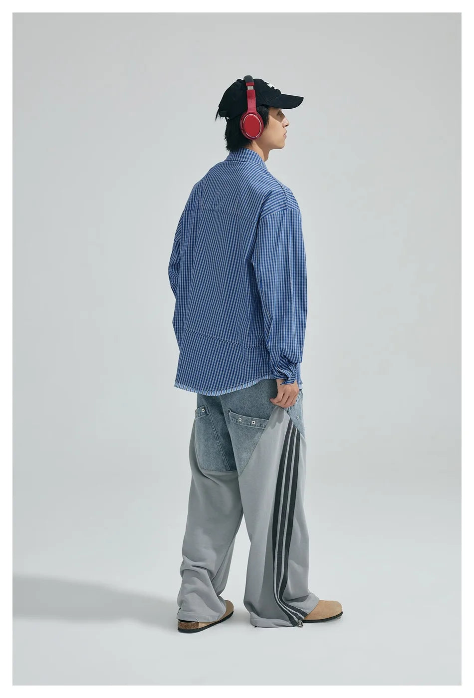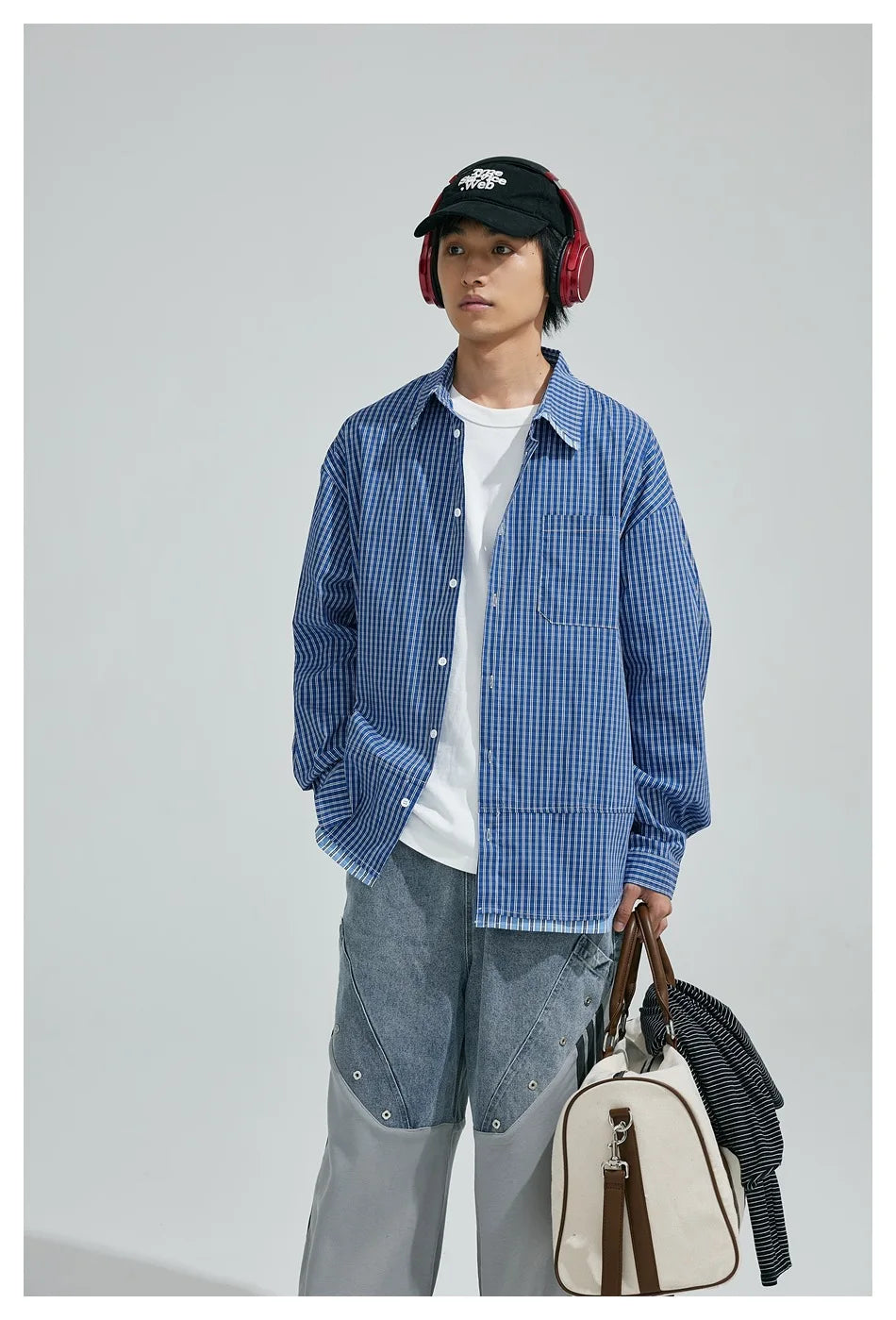 WIAOFELLAS - Cityboy Oversize Cargo Shirt Men Japanese Streetwear Fashion Loose Casual Plaid Splice Stripe Long Sleeve Shirts Blouses