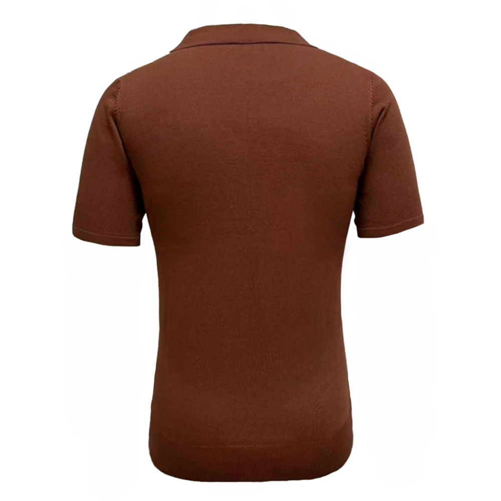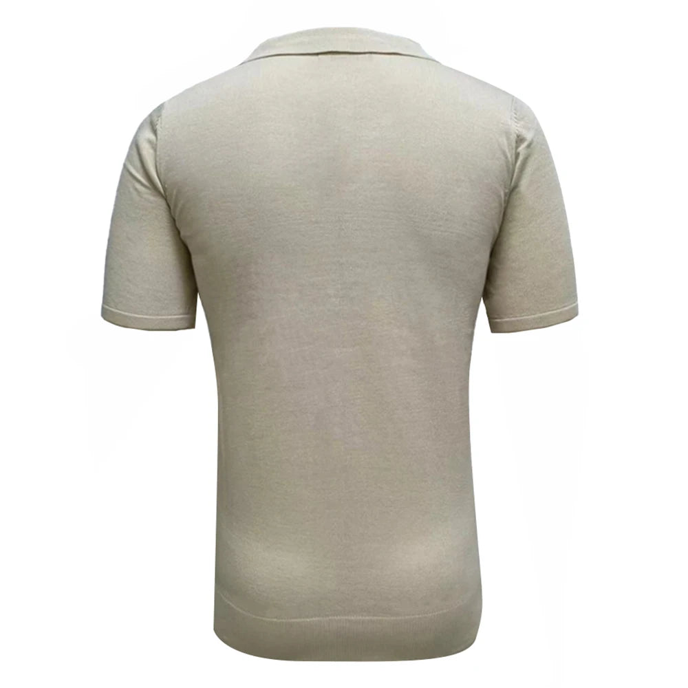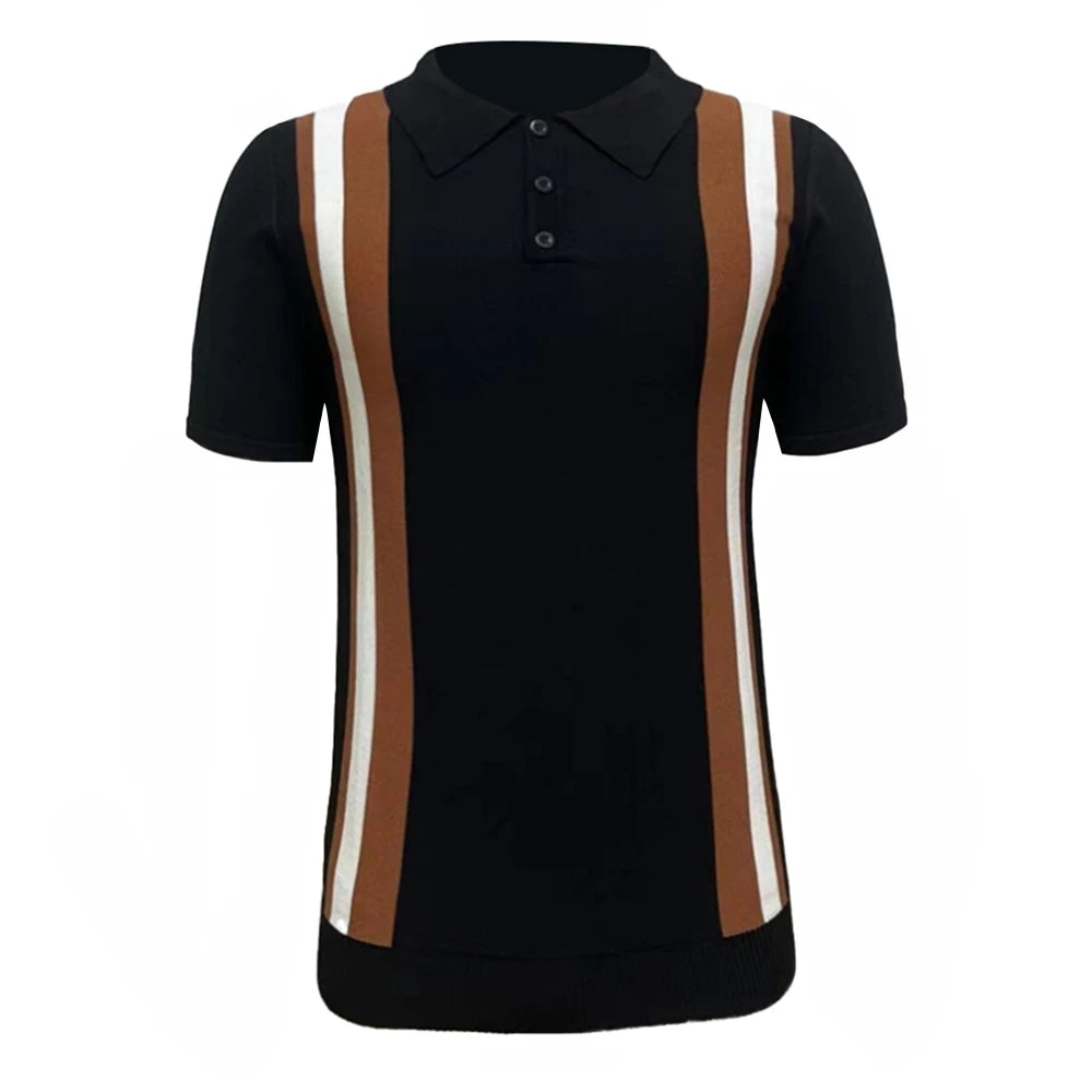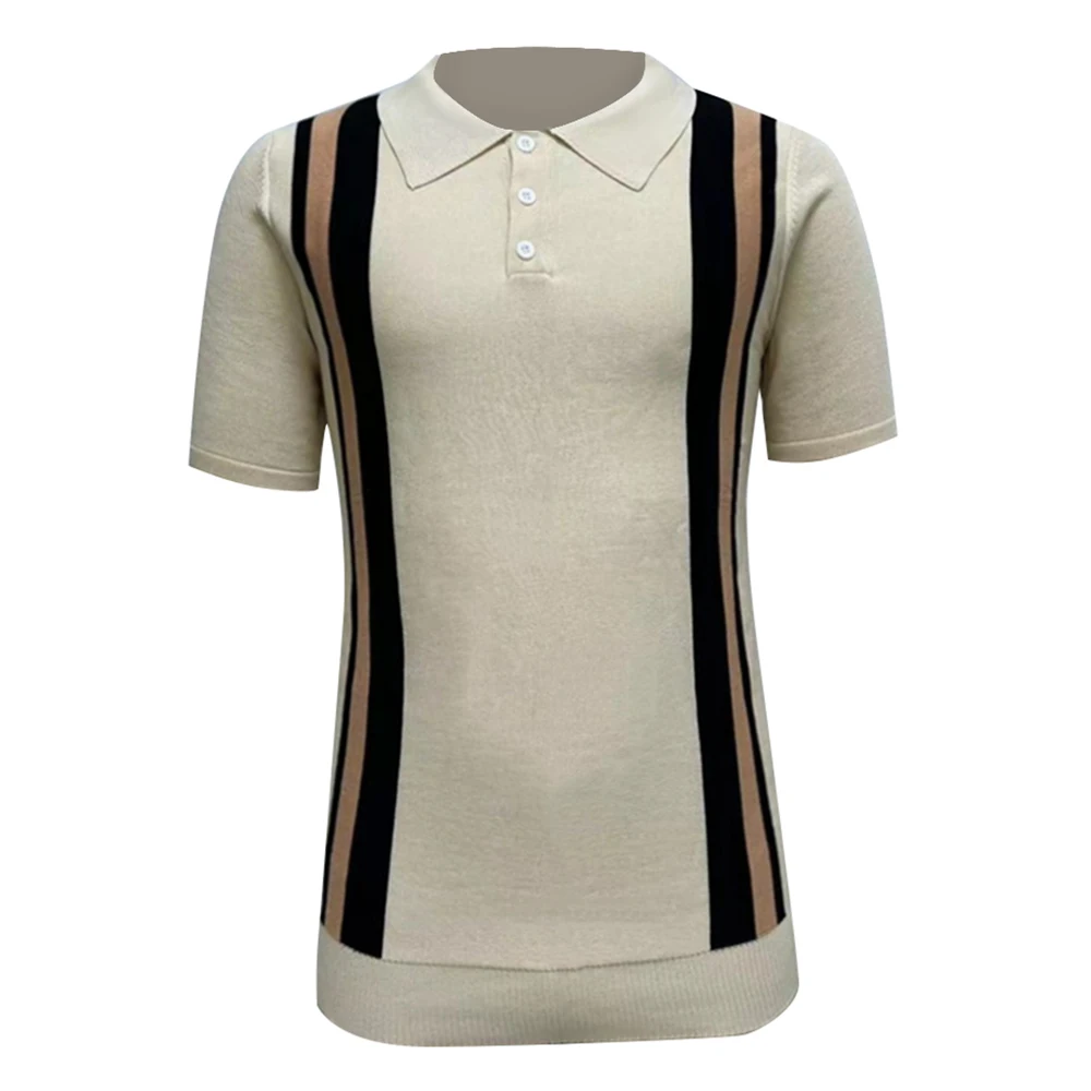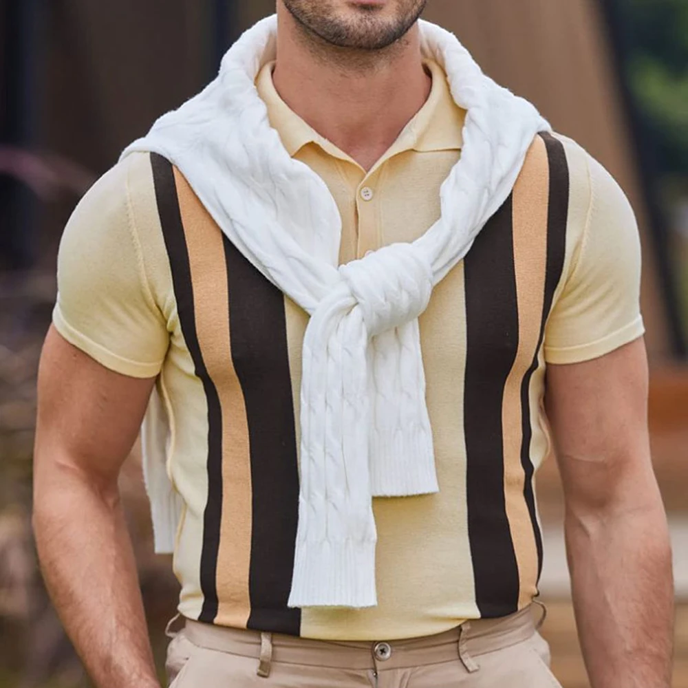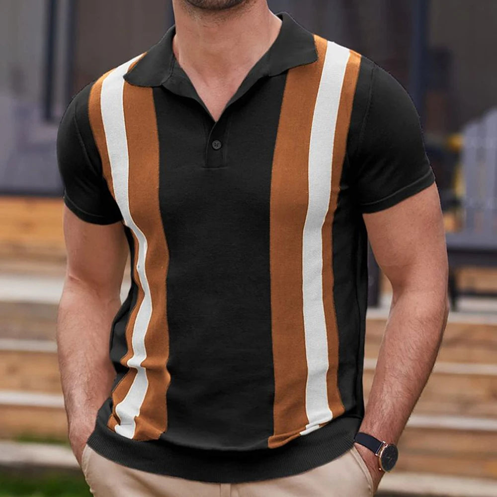 WIAOFELLAS - Contrast Striped Casual Knitted Short-Sleeved Polo Shirt New Business Comfortable Retro Versatile Shirt For Men