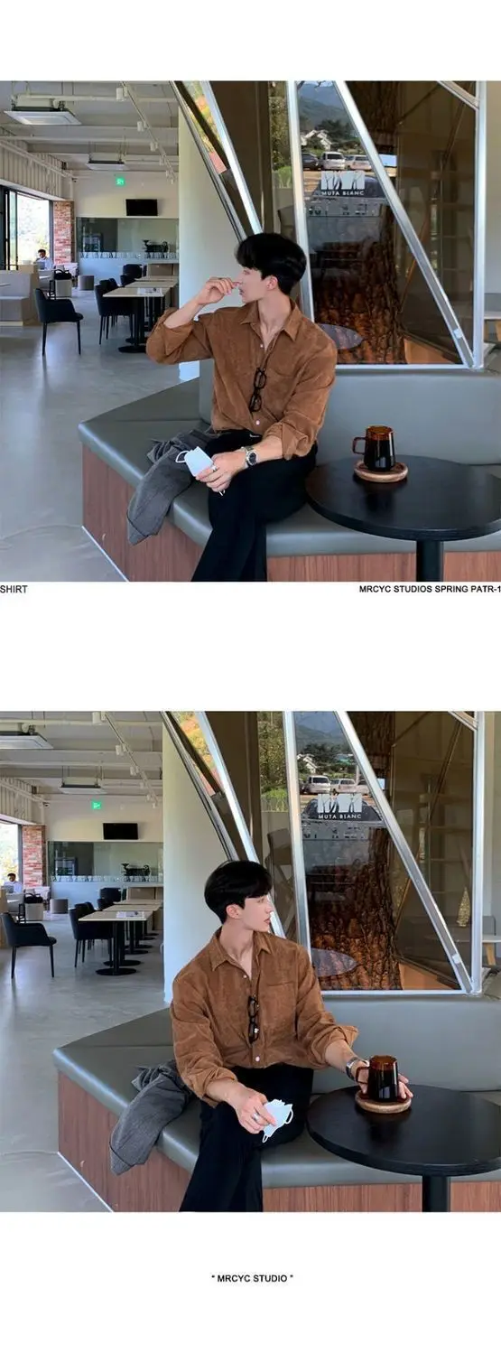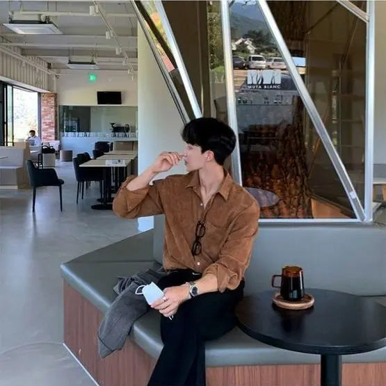 WIAOFELLAS - Corduroy Casual Long Sleeve Shirt Men's Autumn New Fashion Trendy Outerwear