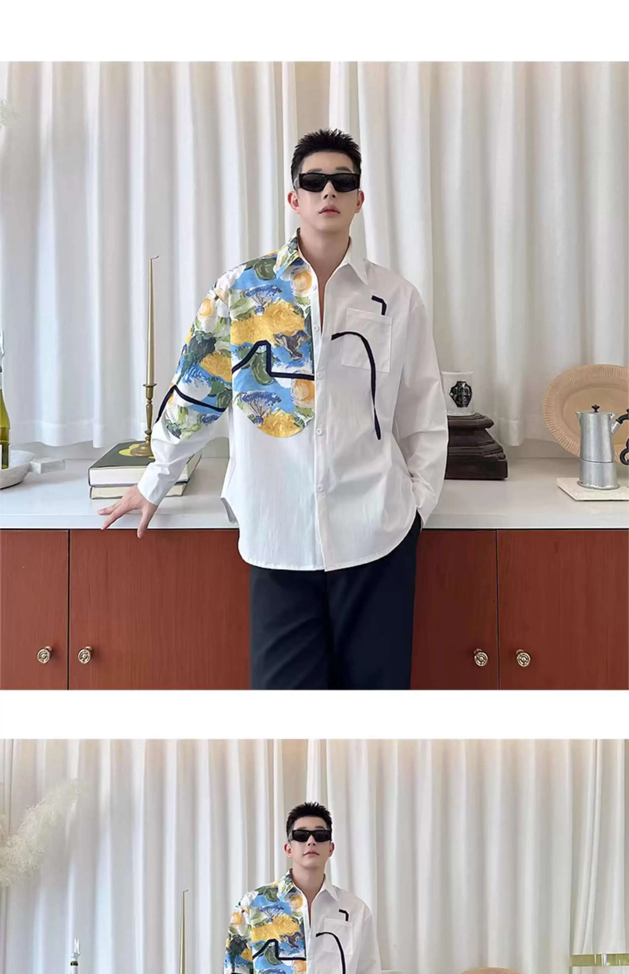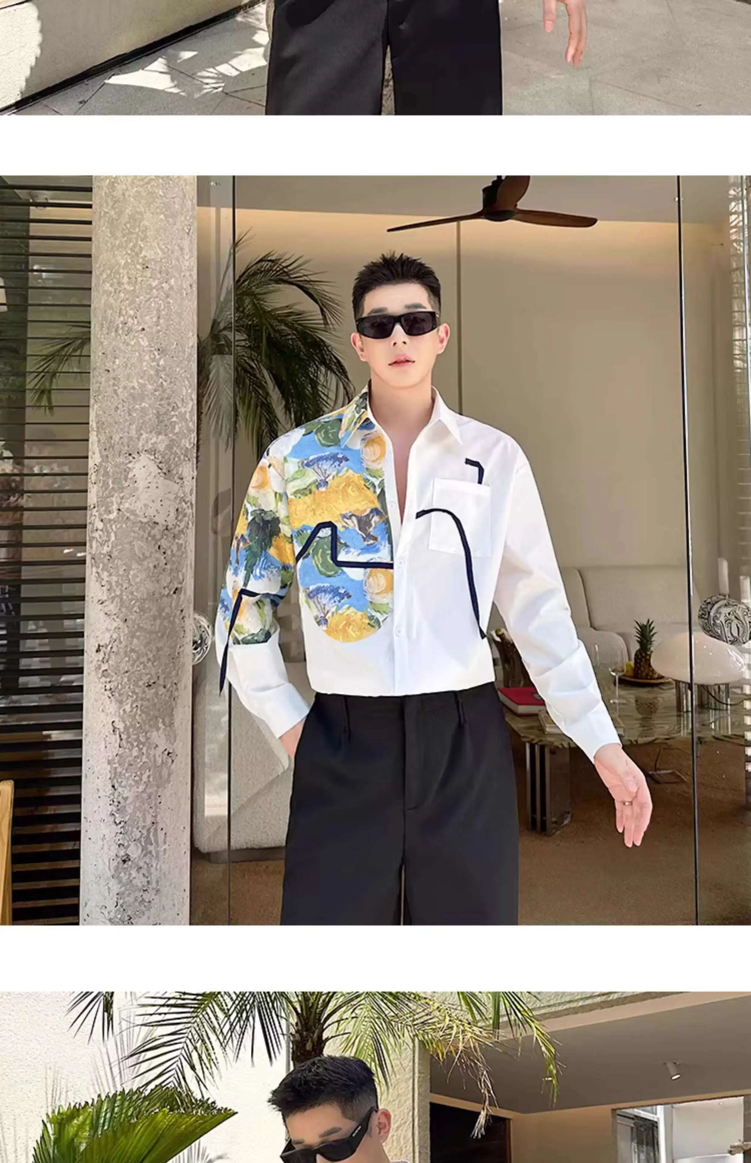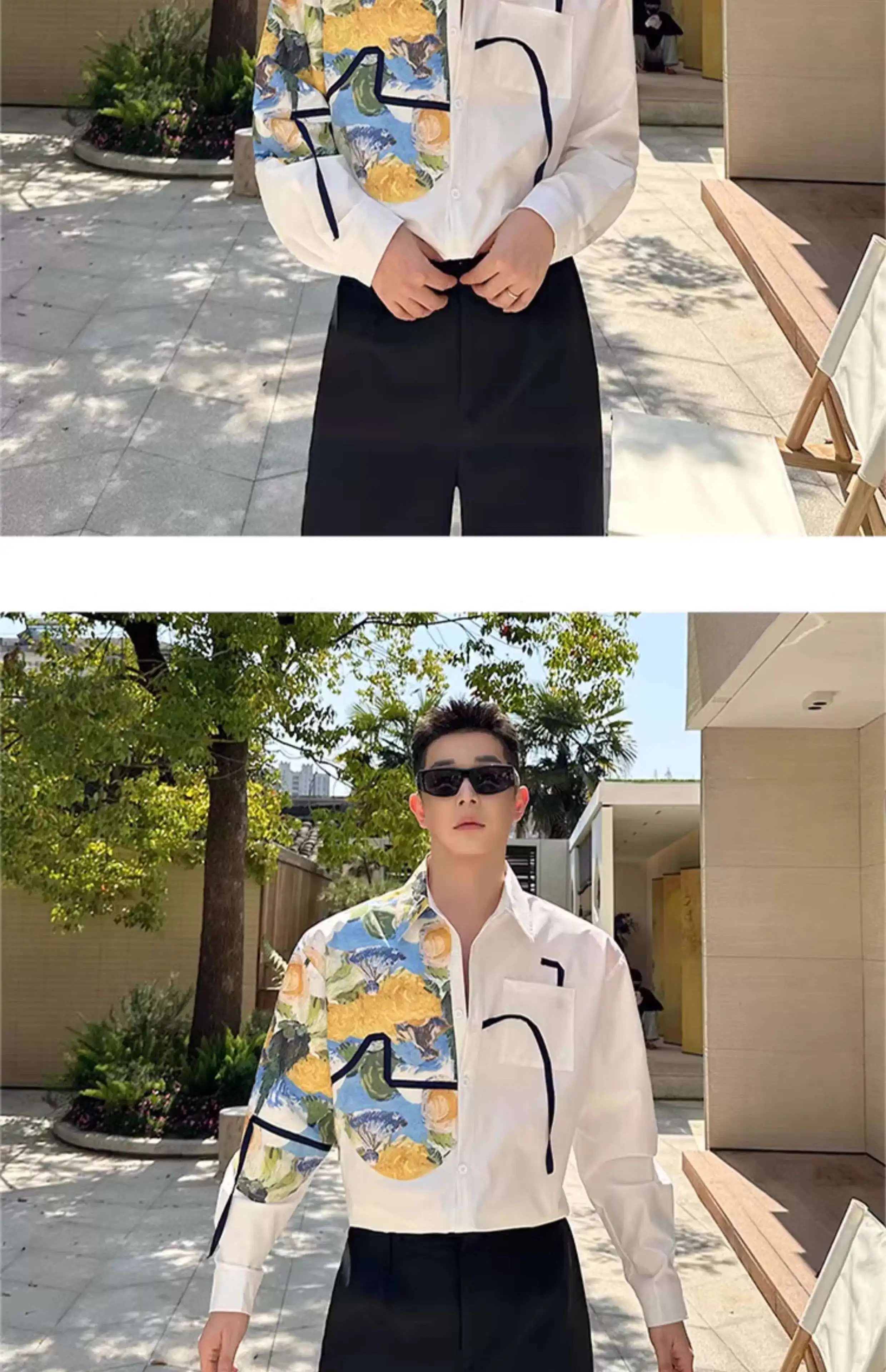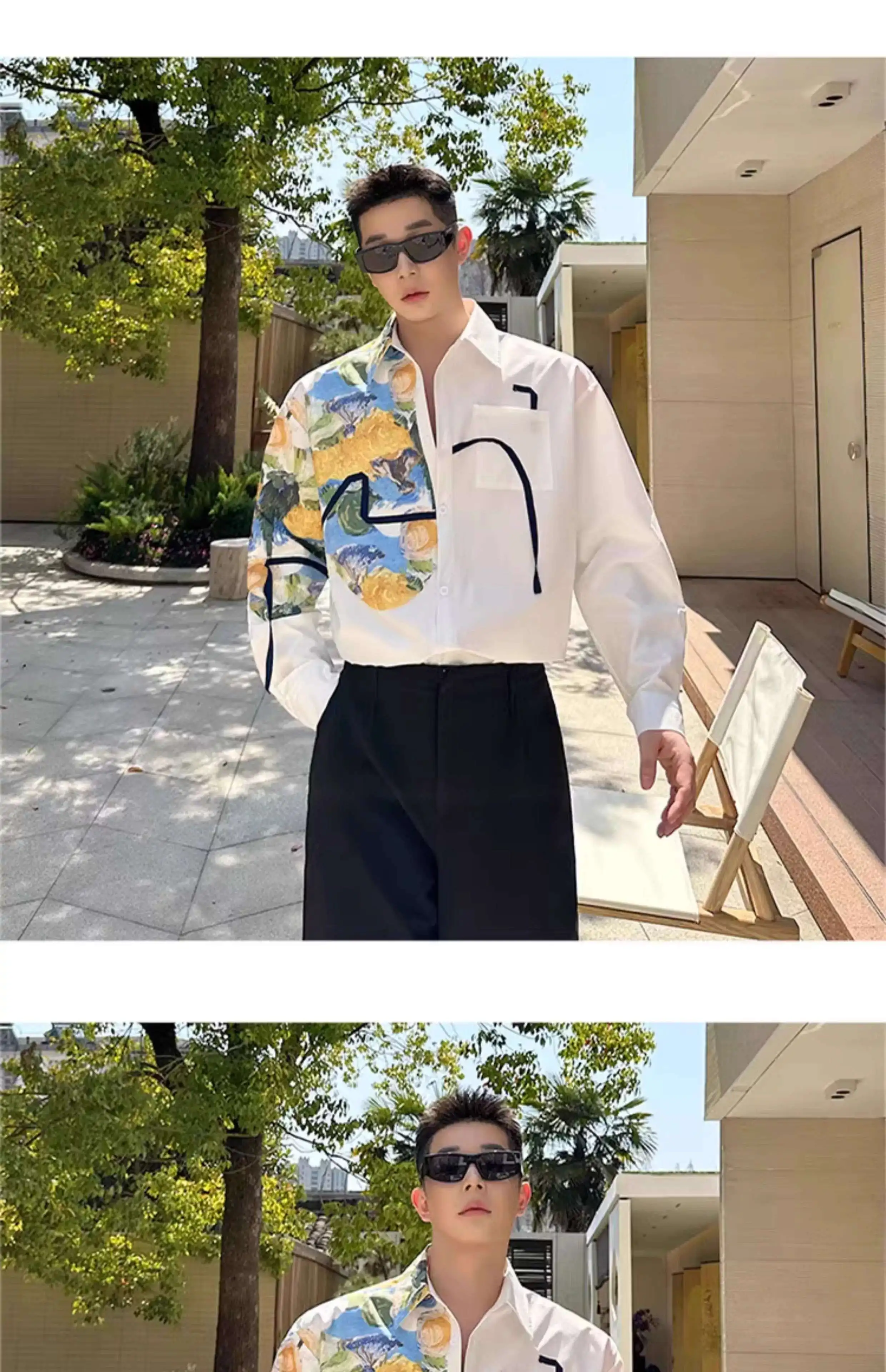 WIAOFELLAS - Fashion 2025 Summer Men‘s Irregular Print Bandage Design Casual Shirts Trendy Single-breasted Long Sleeves Tops Male