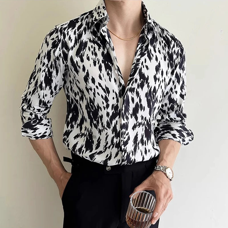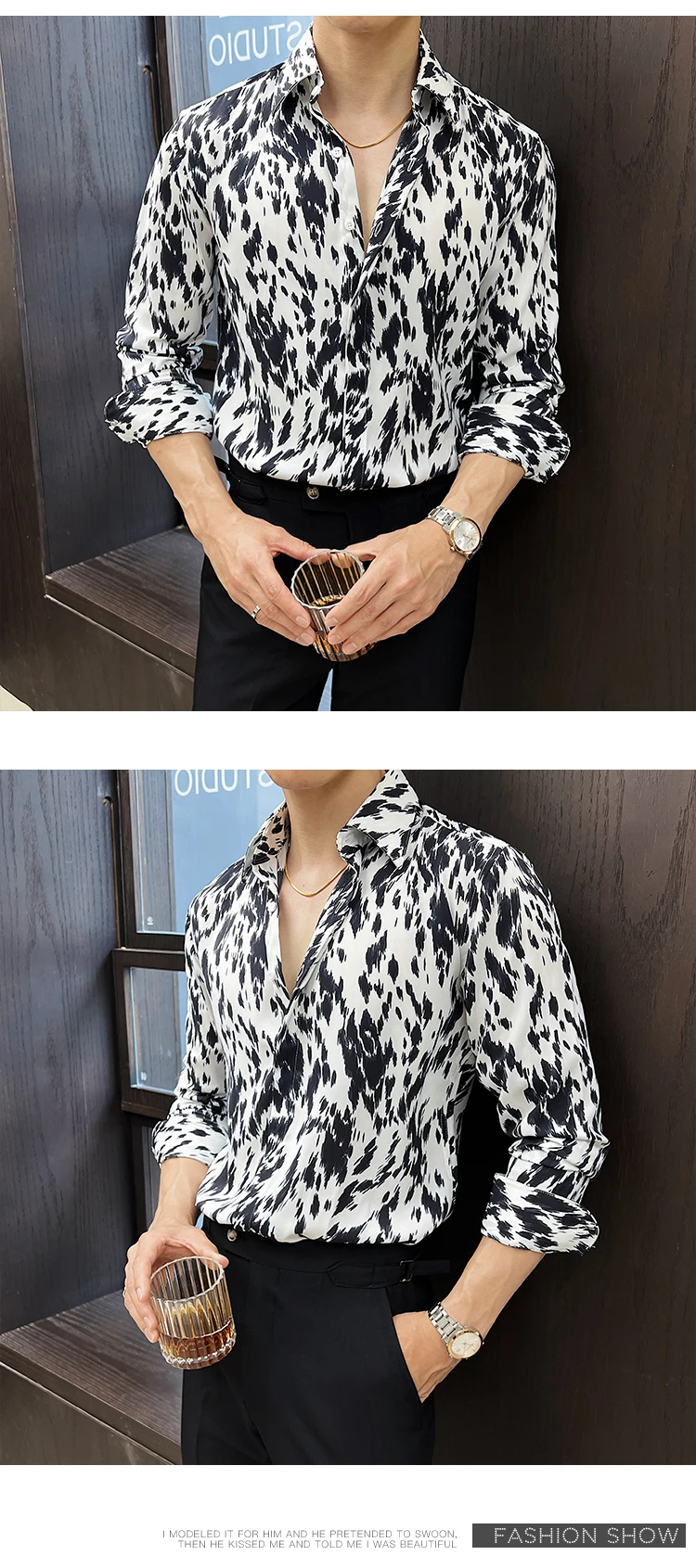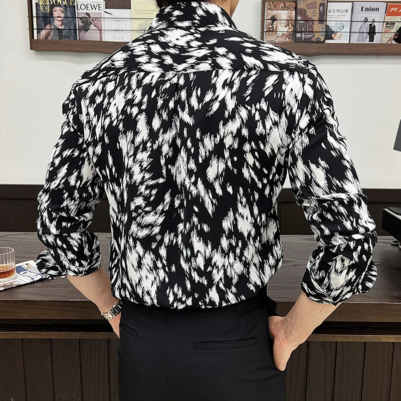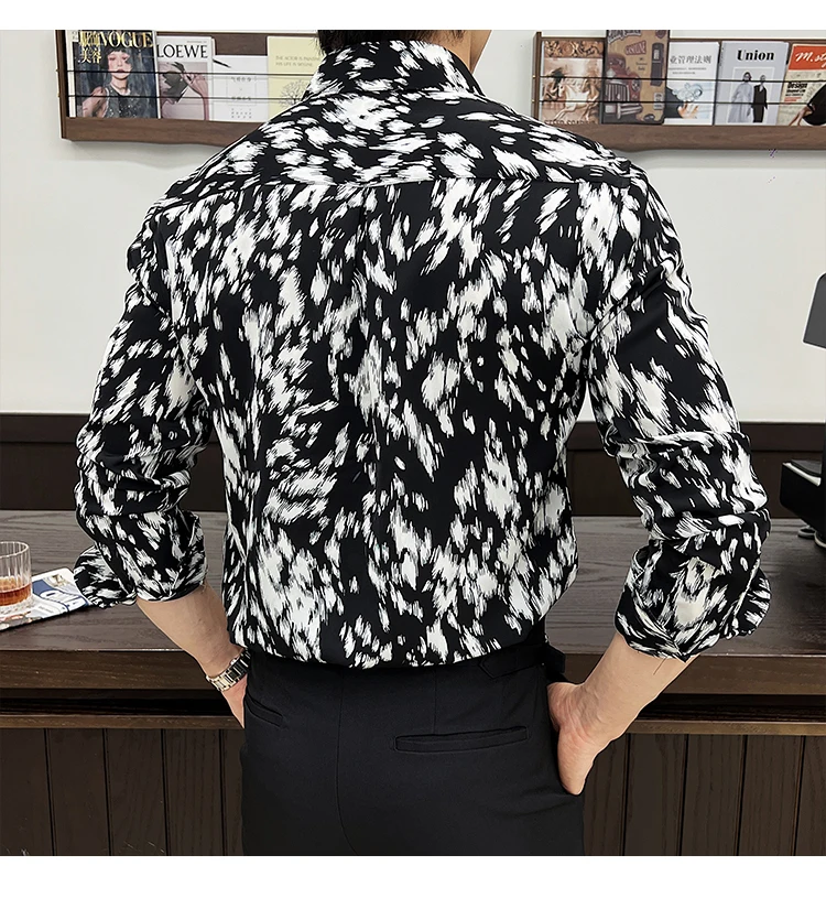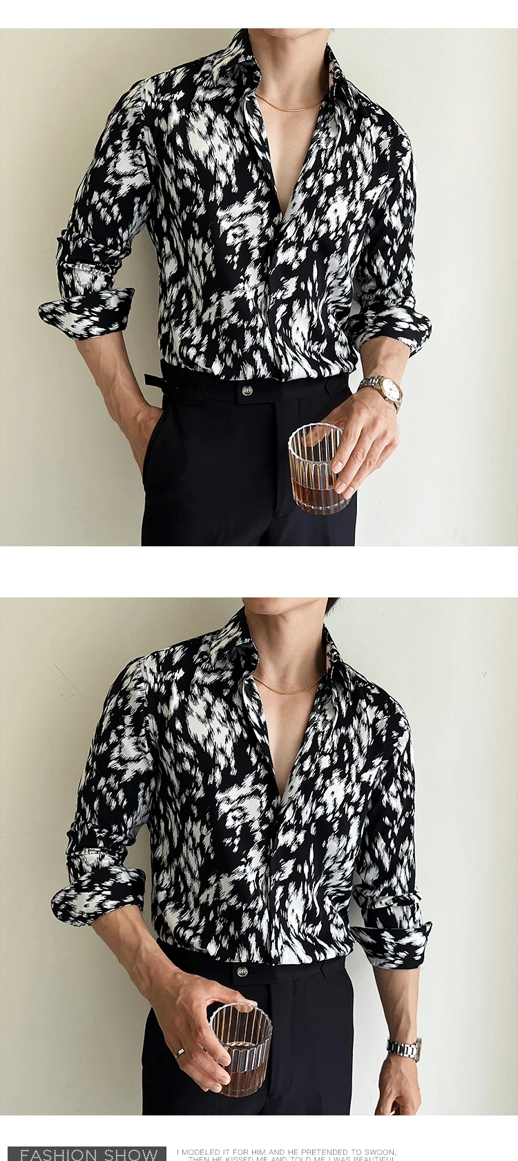 WIAOFELLAS  -  Fashion Handsome Long Sleeved Men Floral Shirts Trendy Korean Style Slim Button Printed Shirt Streetwear All Match Mens Clothing