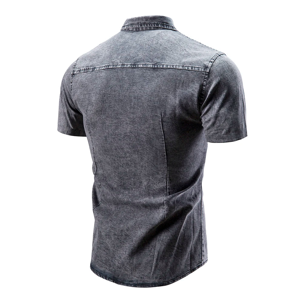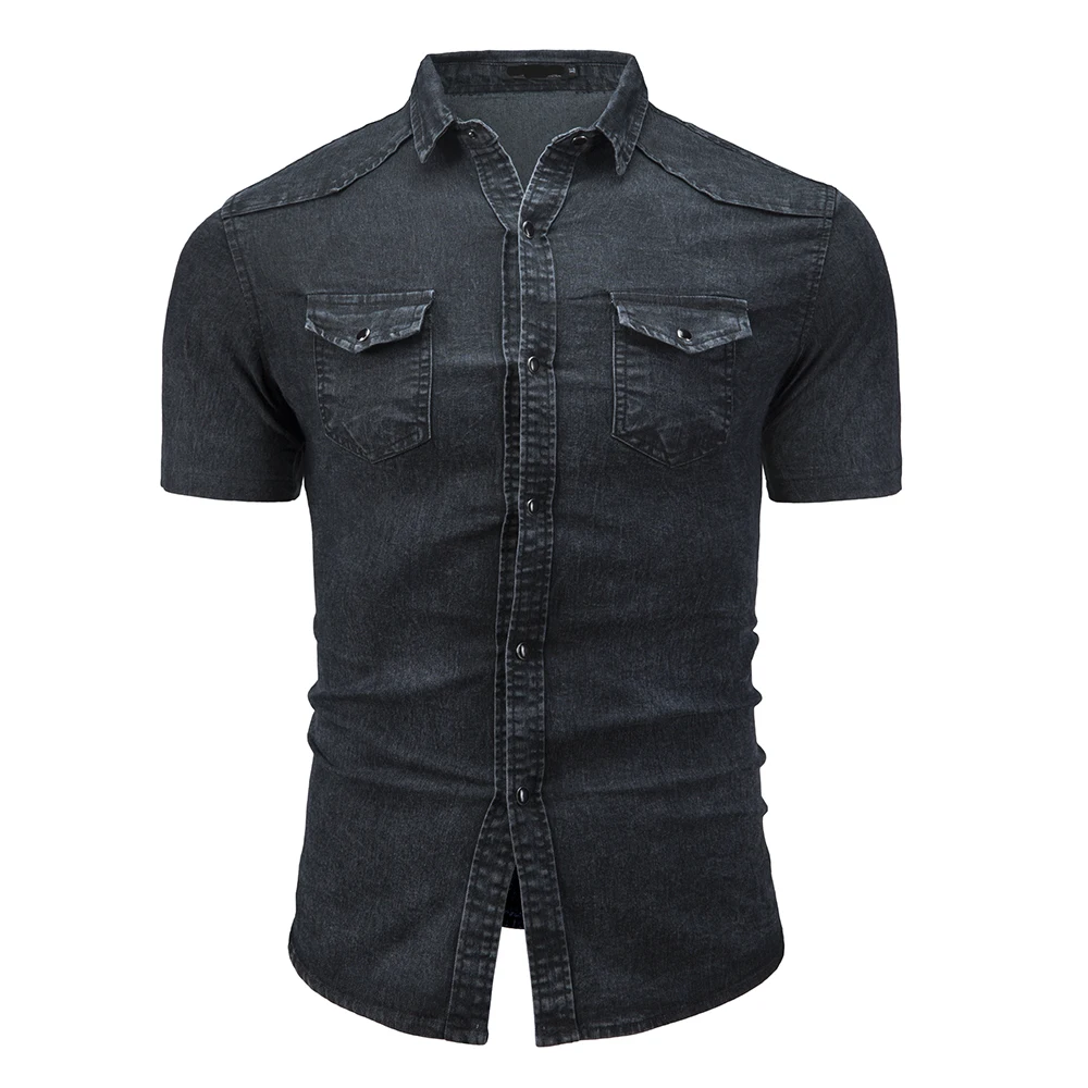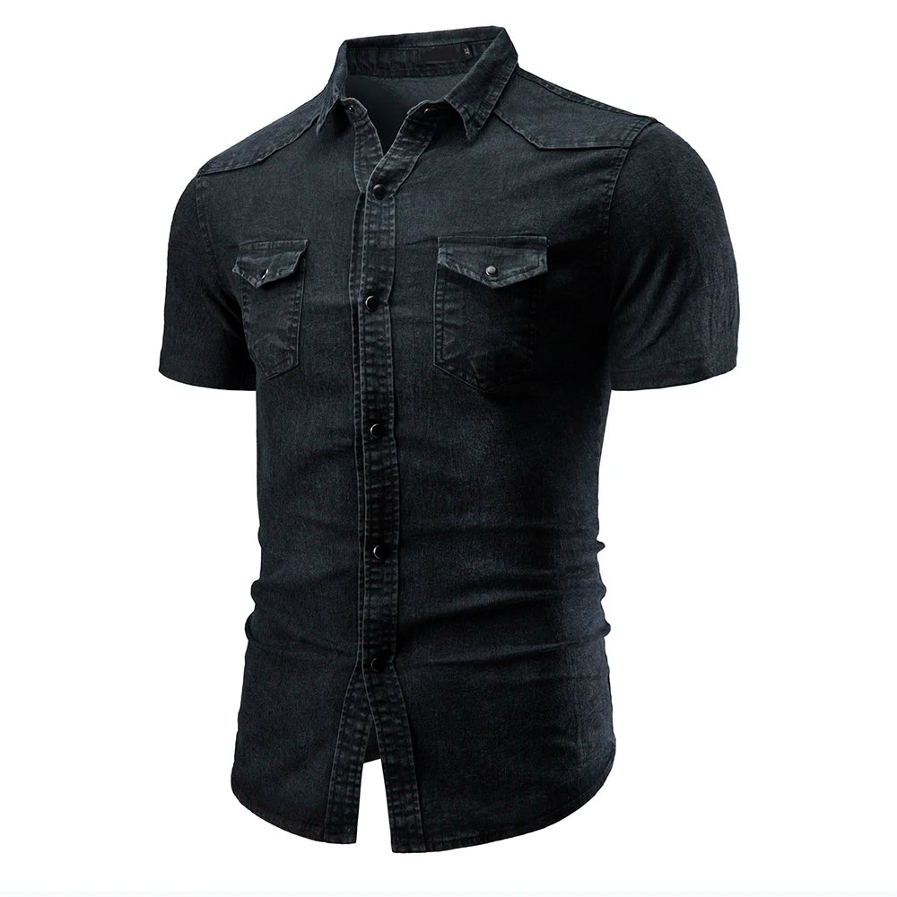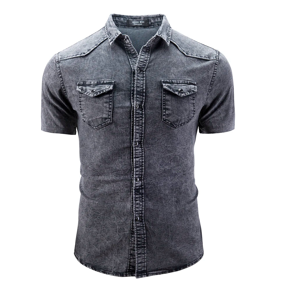 WIAOFELLAS - Fashion Lapel Denim Shirt Designer Short-sleeved Men's Blue Slim and Old Washed Denim Shirt Plus Size Jacket 3XL