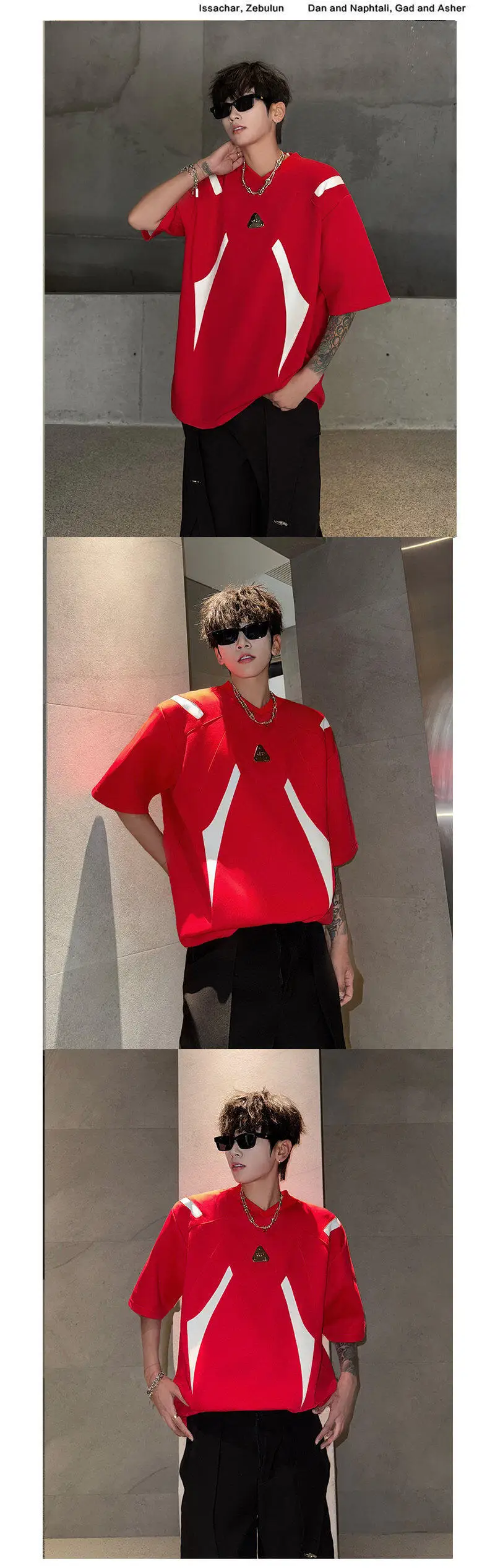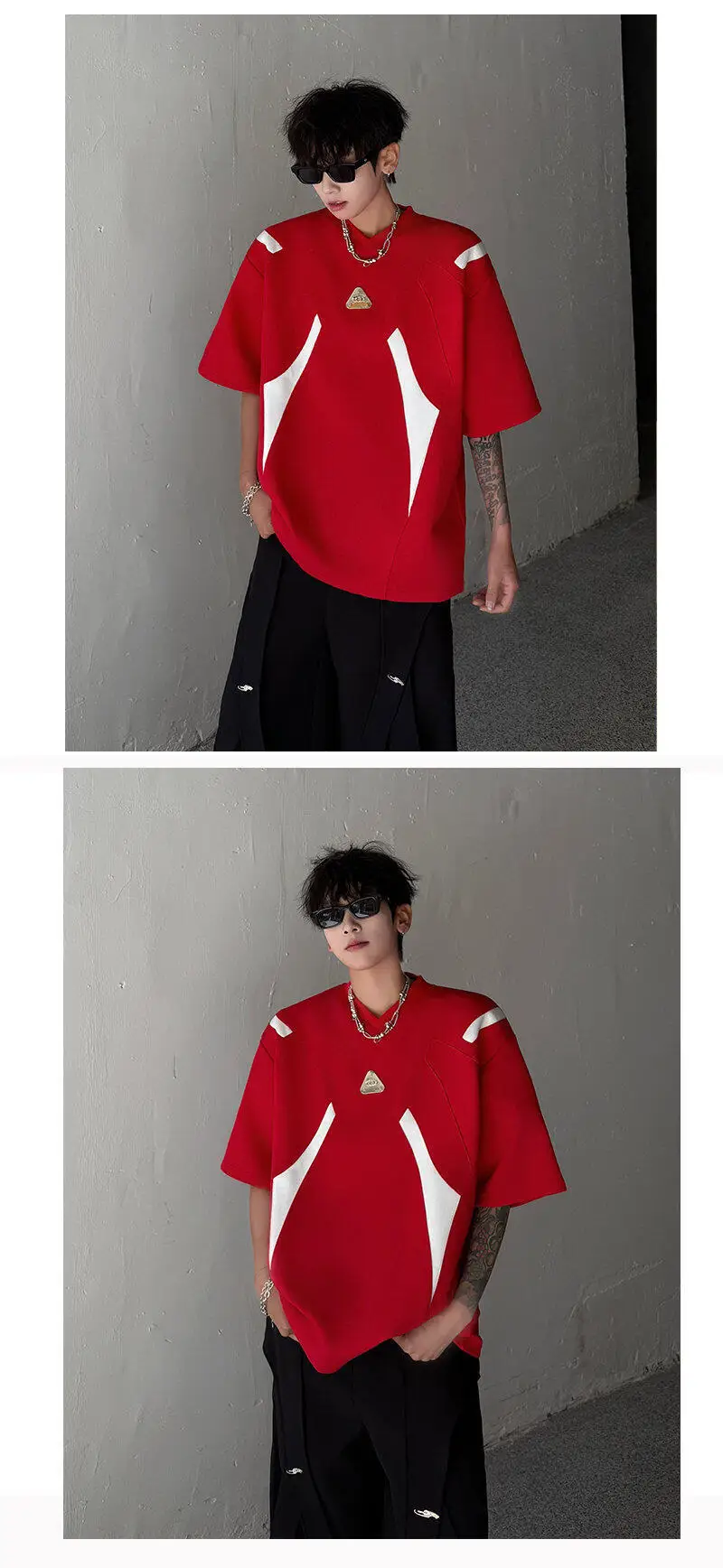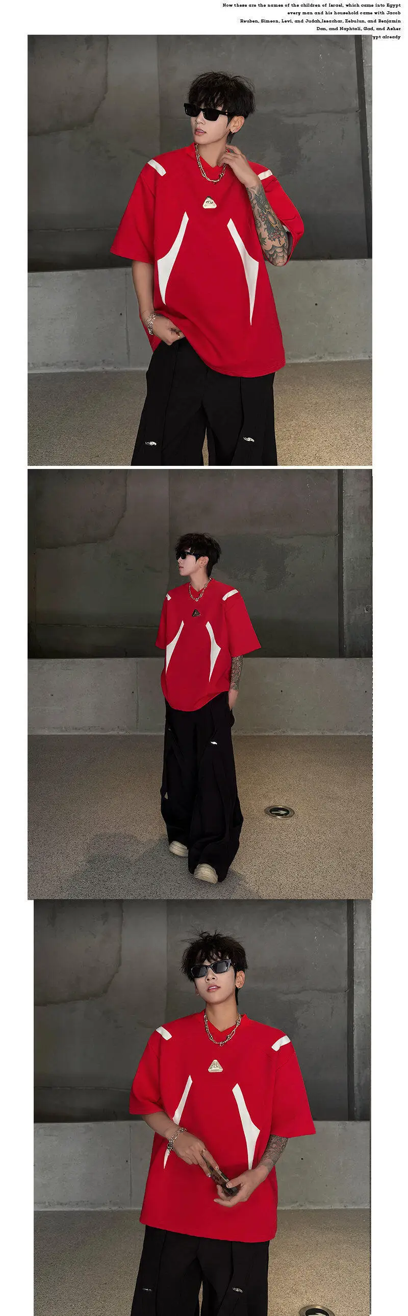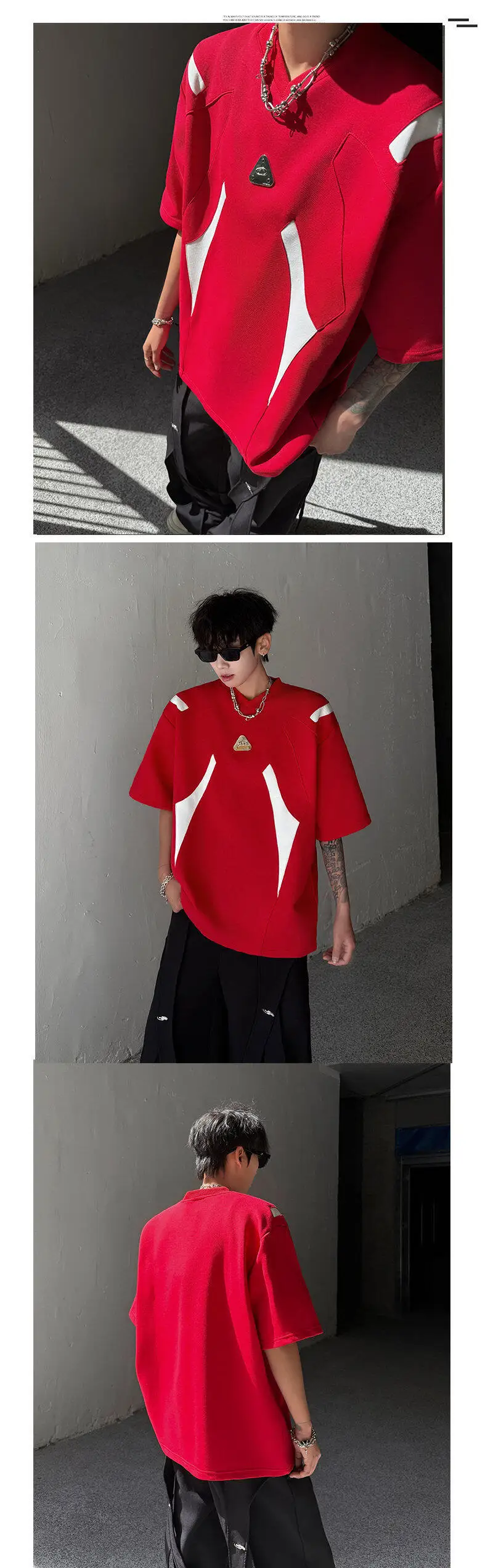 WIAOFELLAS  -  Fashion Men's Spliced Metal Contrast Color Shoulder Pads T-shirts Trendy Short Sleeves O-neck Tops Male 2025 Summer