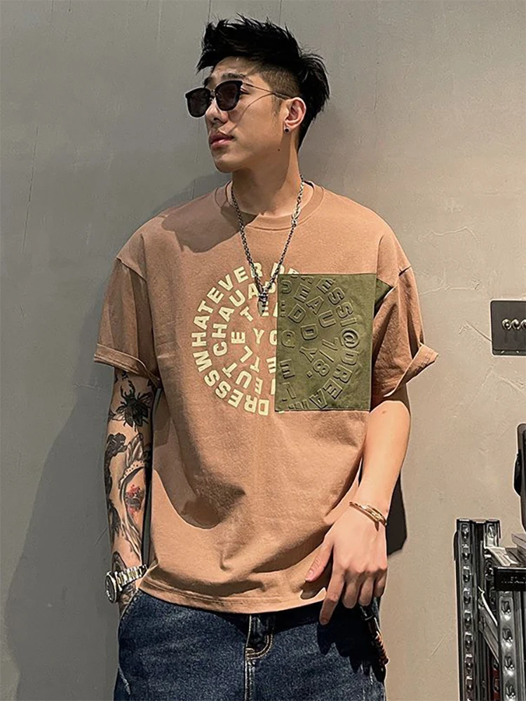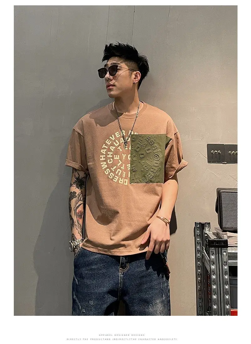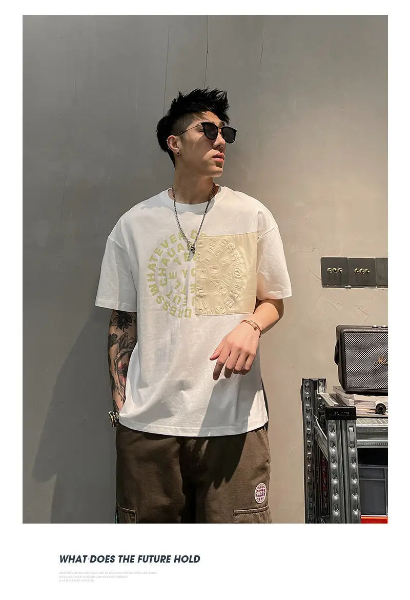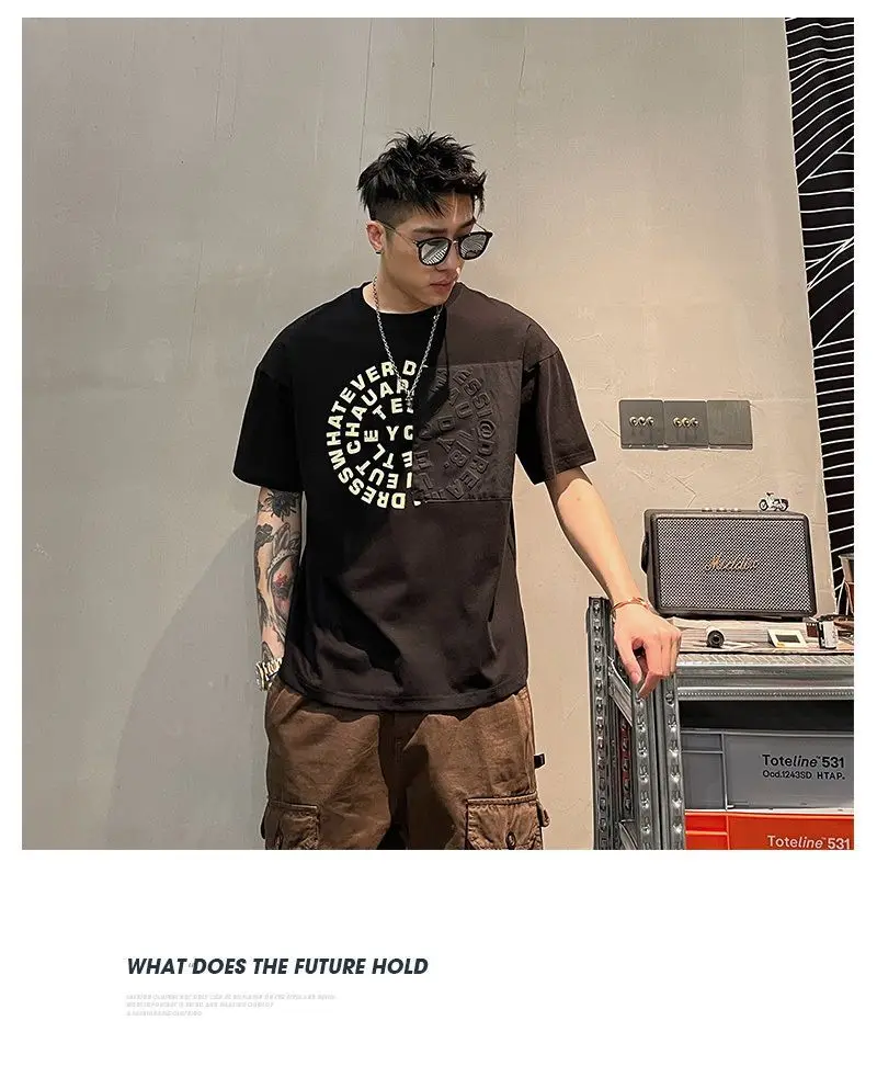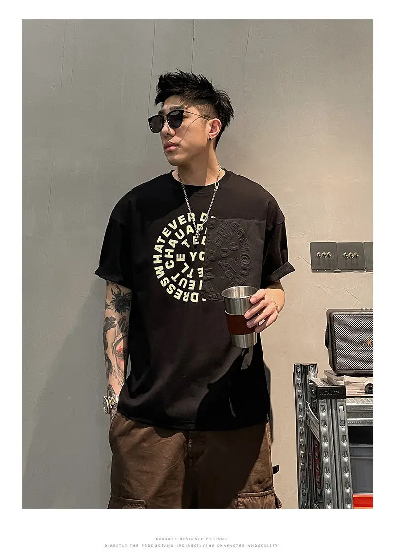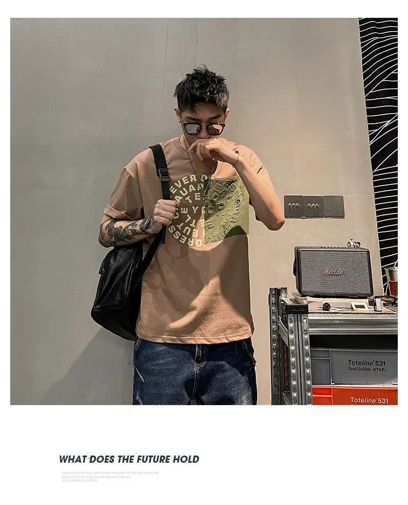 Wiaofellas - Fashion O-Neck Casual Printed Letter Short Sleeve T-Shirts Men's Clothing Summer New Loose All-match Tops Korean Tee Shirt