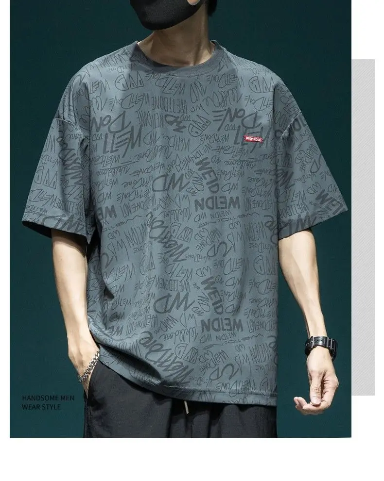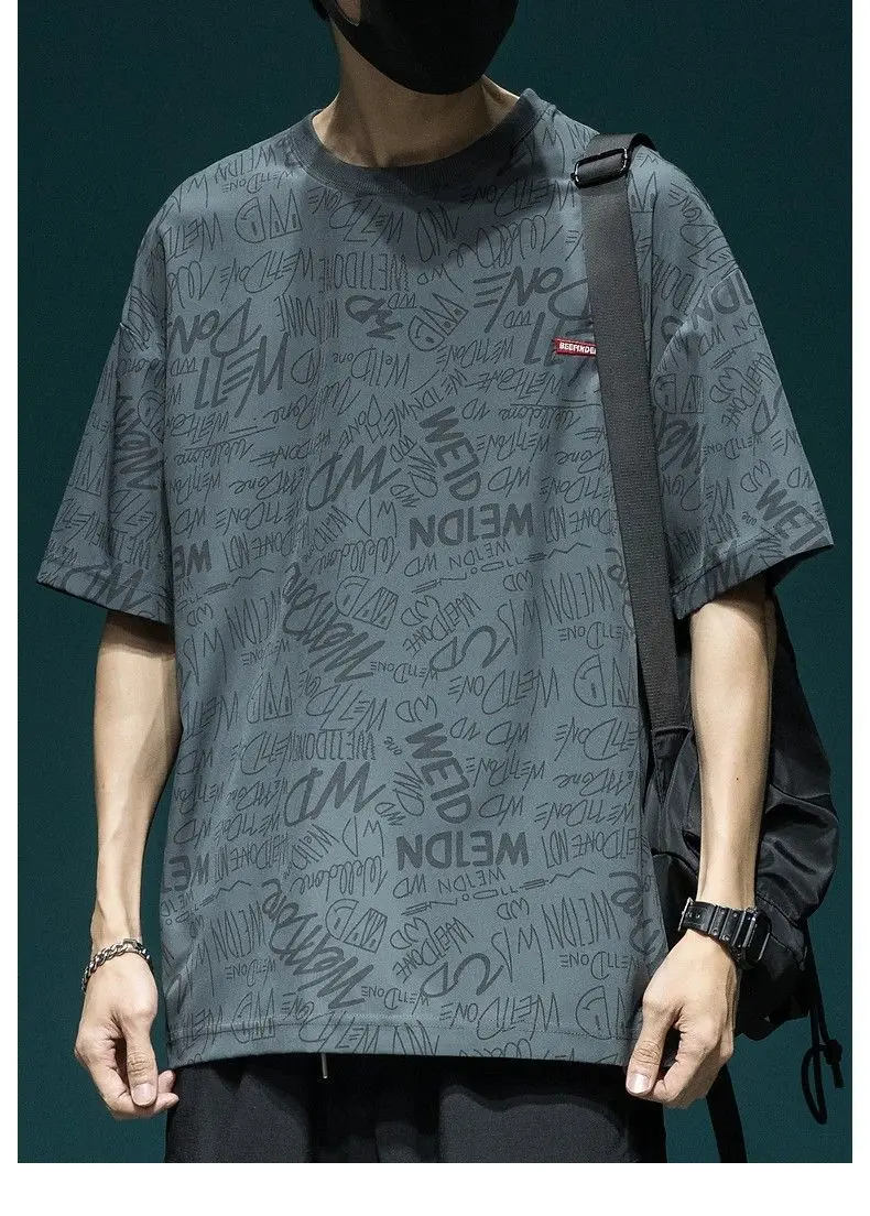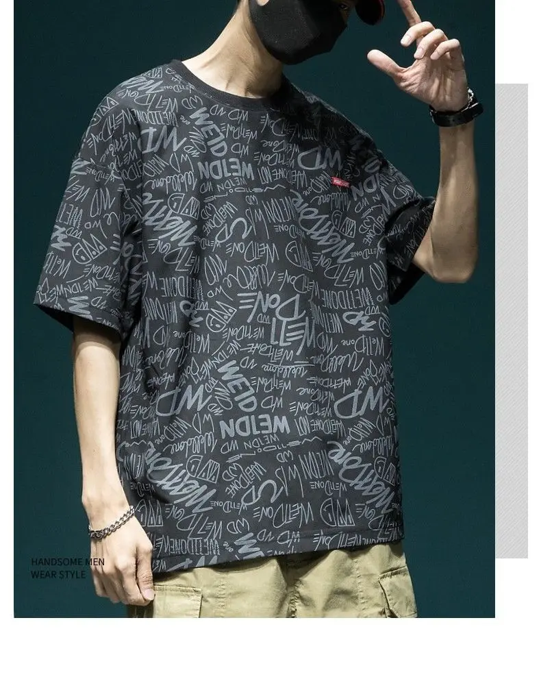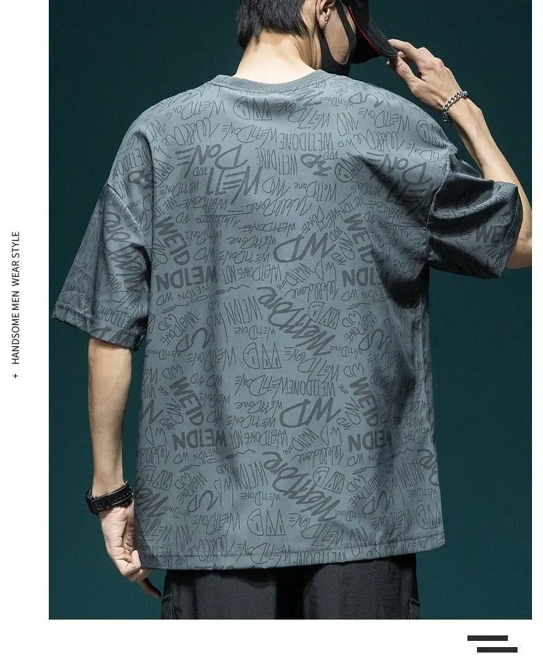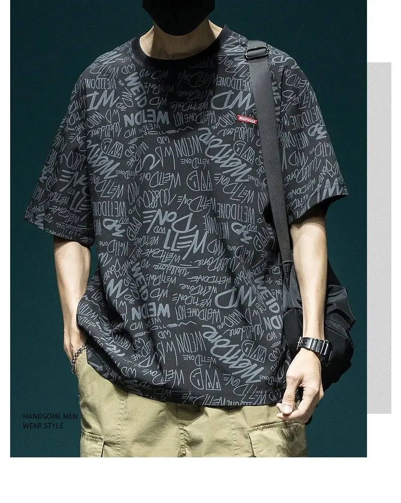 Wiaofellas - Fashion O-Neck Spliced Loose Printed Letter T-Shirts Men's Clothing Summer New Oversized Casual Tops All-match Tee Shirt
