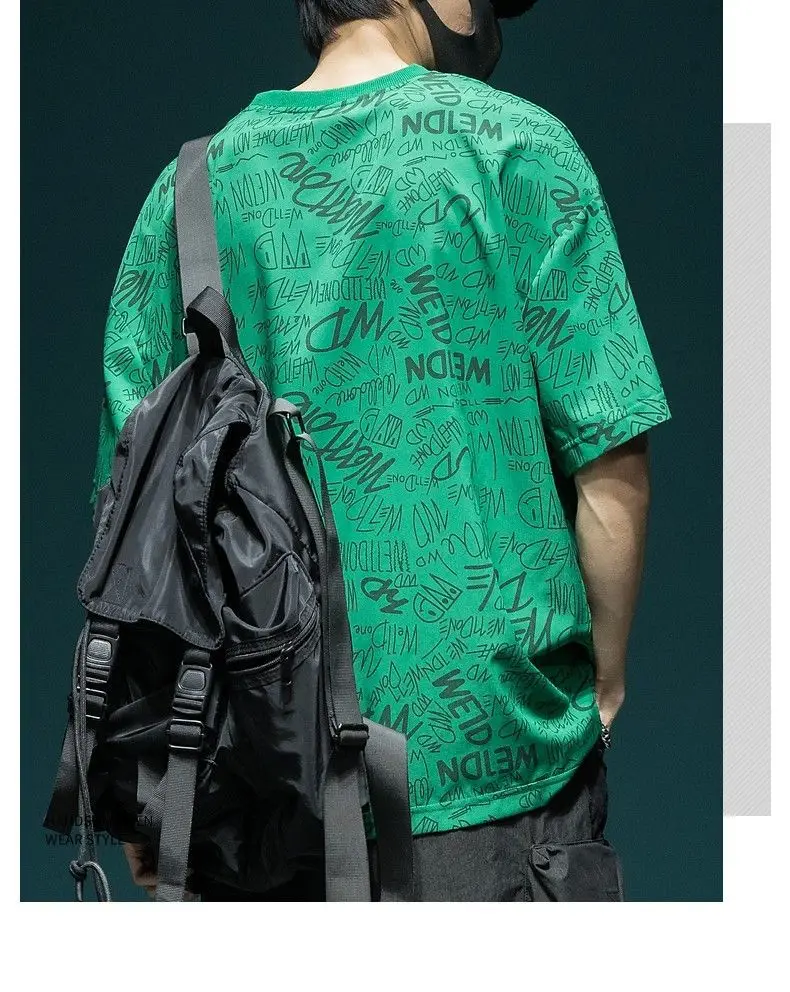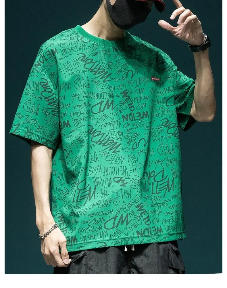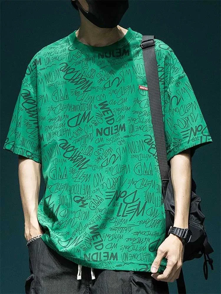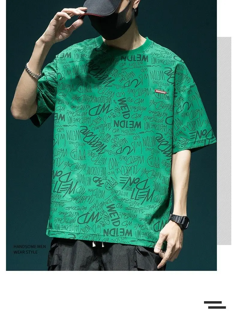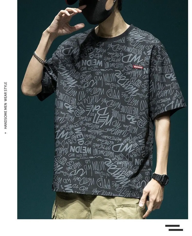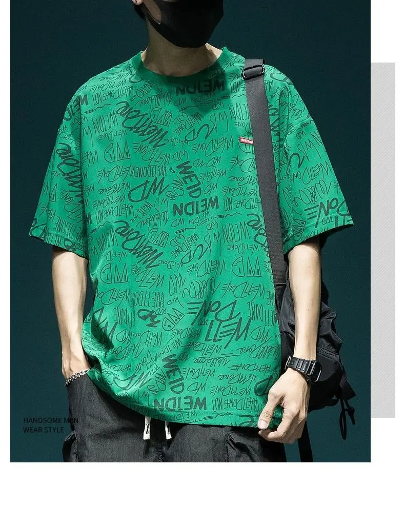 Wiaofellas - Fashion O-Neck Spliced Loose Printed Letter T-Shirts Men's Clothing Summer New Oversized Casual Tops All-match Tee Shirt