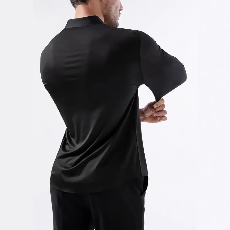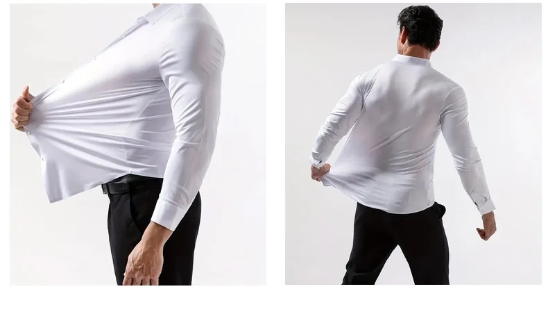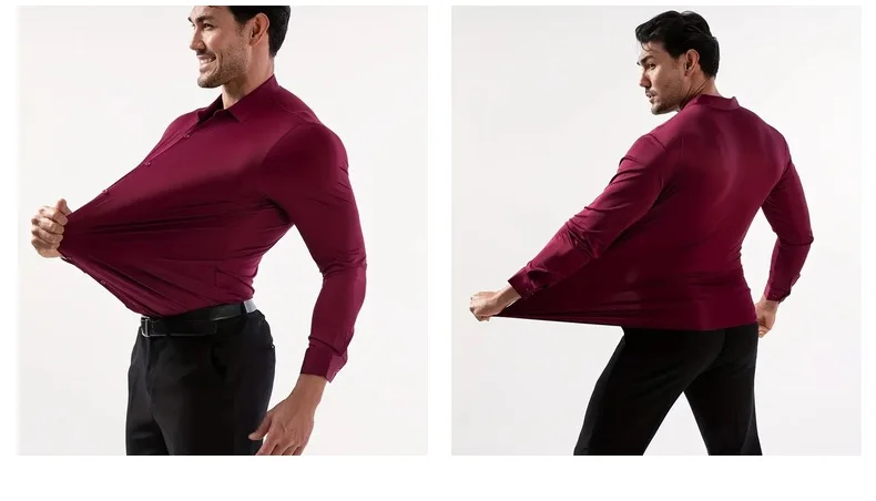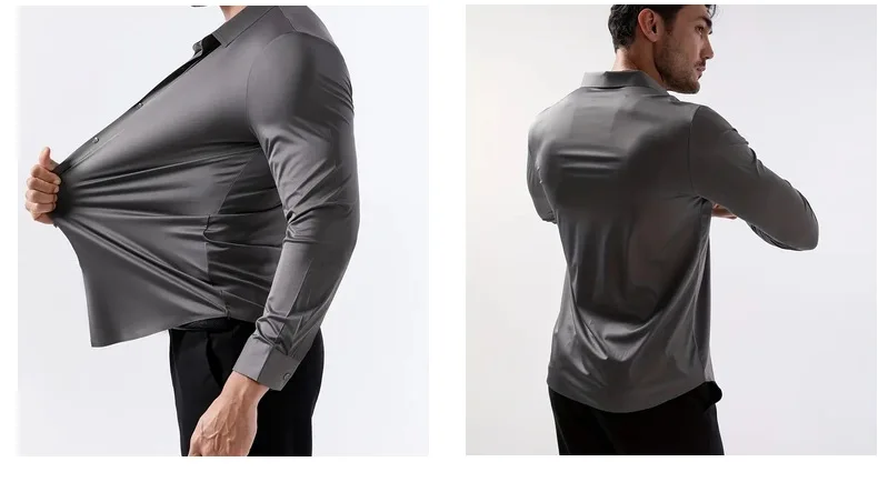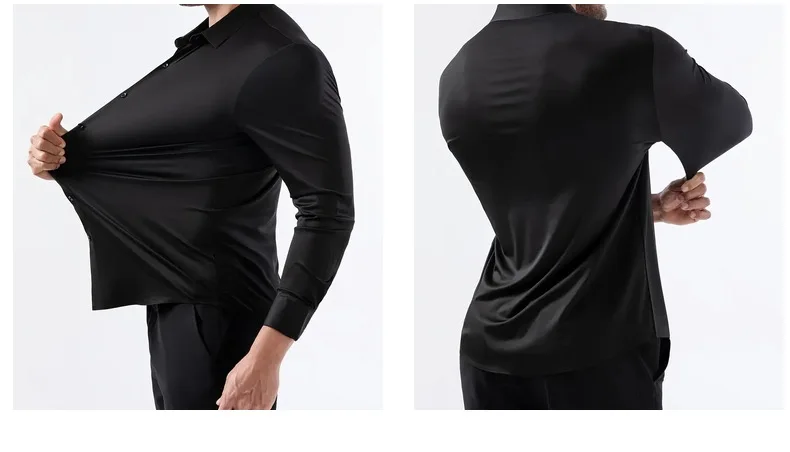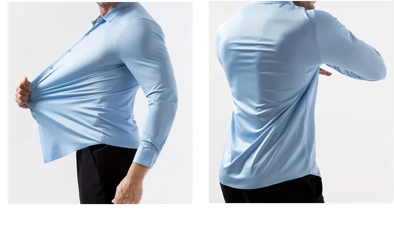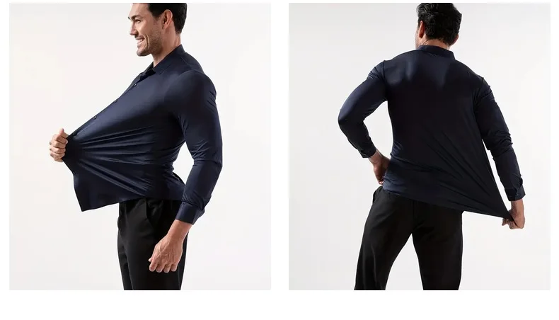WIAOFELLAS  -  Fashionable High-elastic Men's Solid Color Shirt Long-sleeved Anti-wrinkle No-iron Casual Loose Button Patchwork Cardigan Top