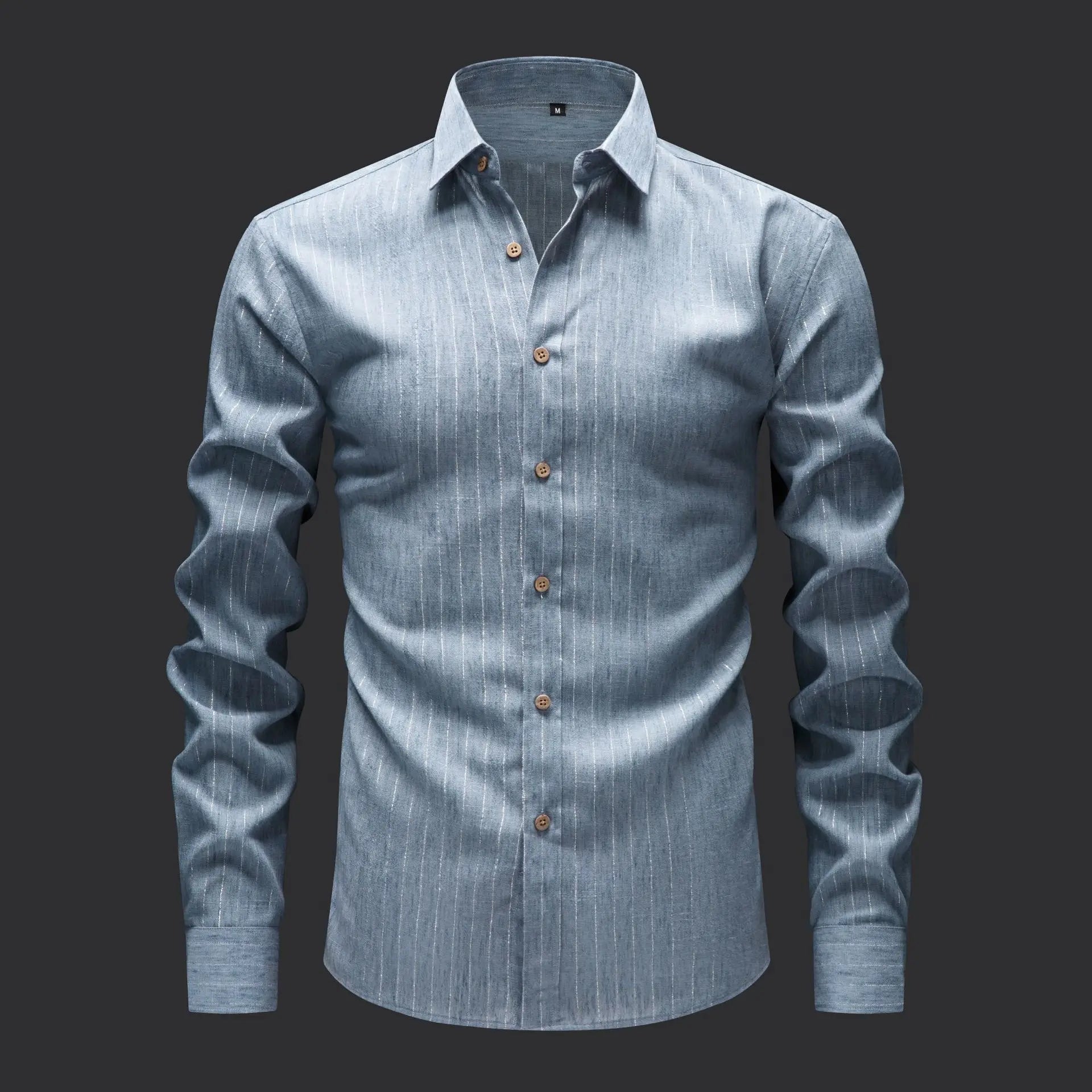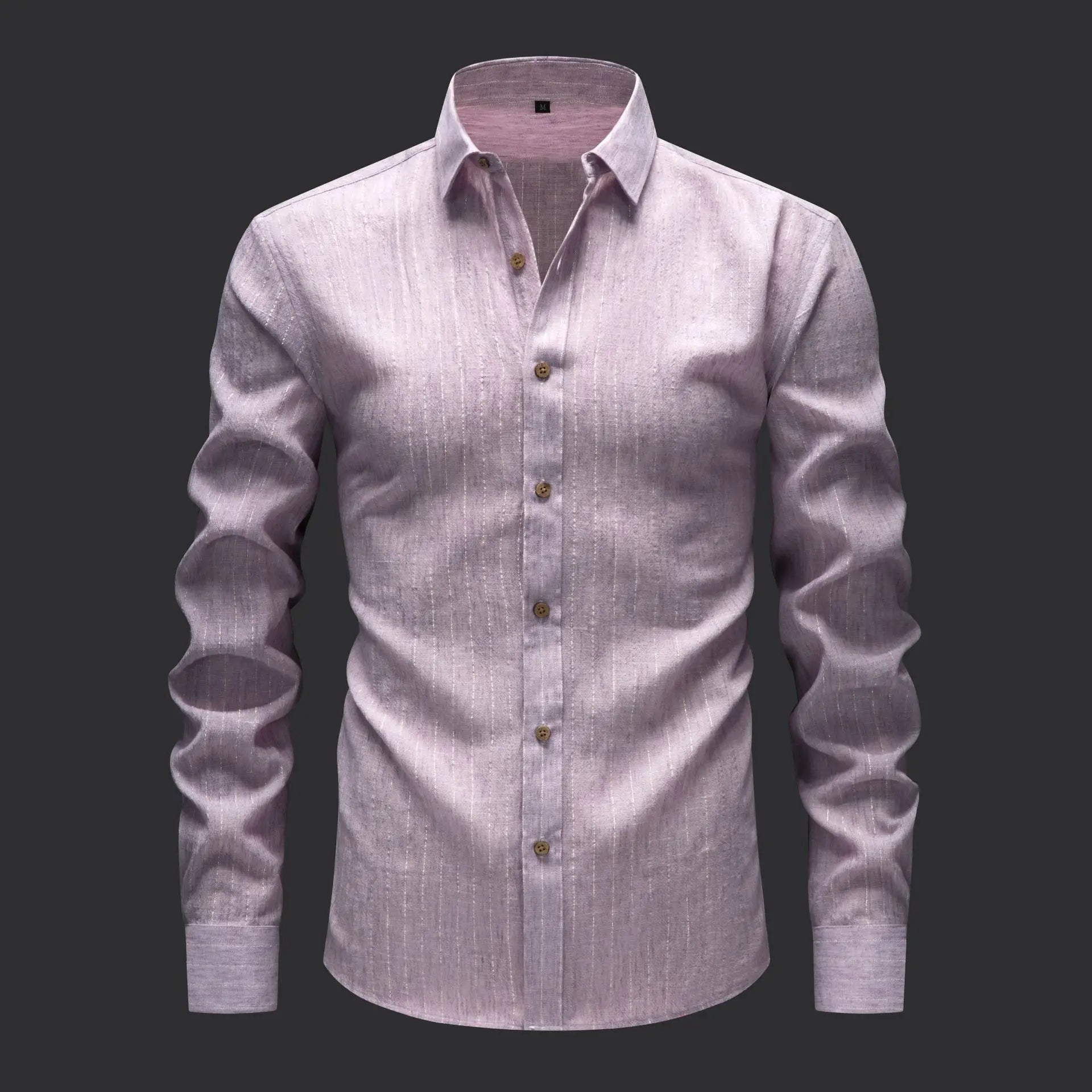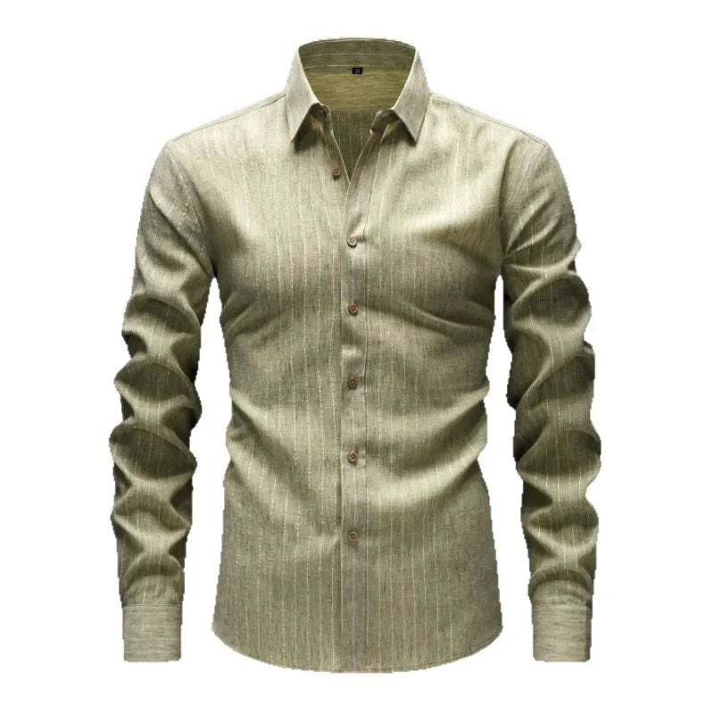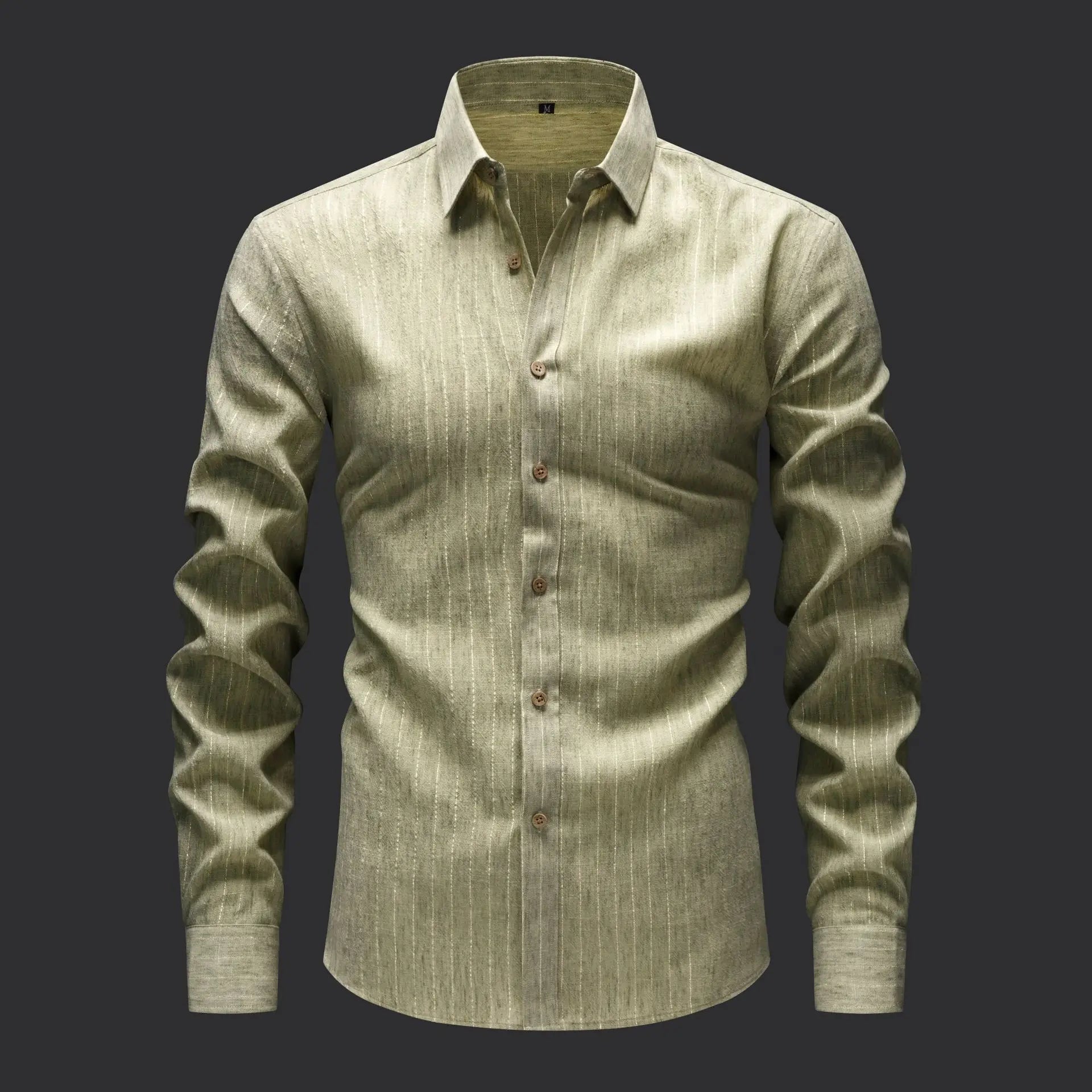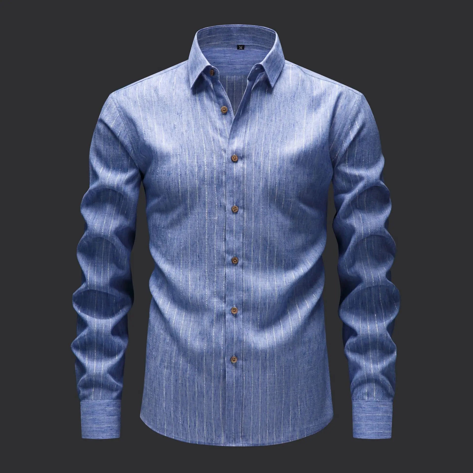 WIAOFELLAS - Fashionable Men's Linen Long-sleeved Shirt Gold Thread Gold Linen Striped Retro Casual Loose Cardigan
