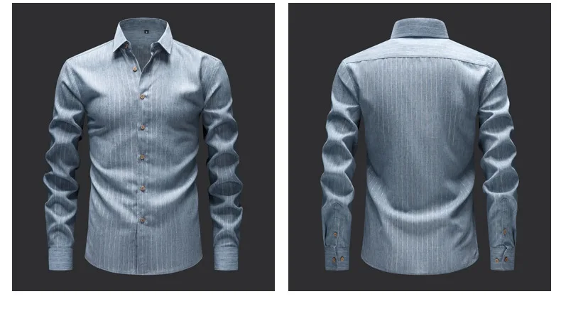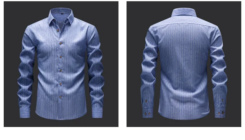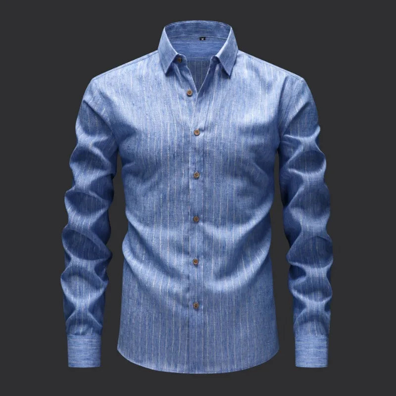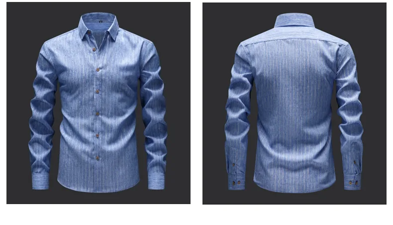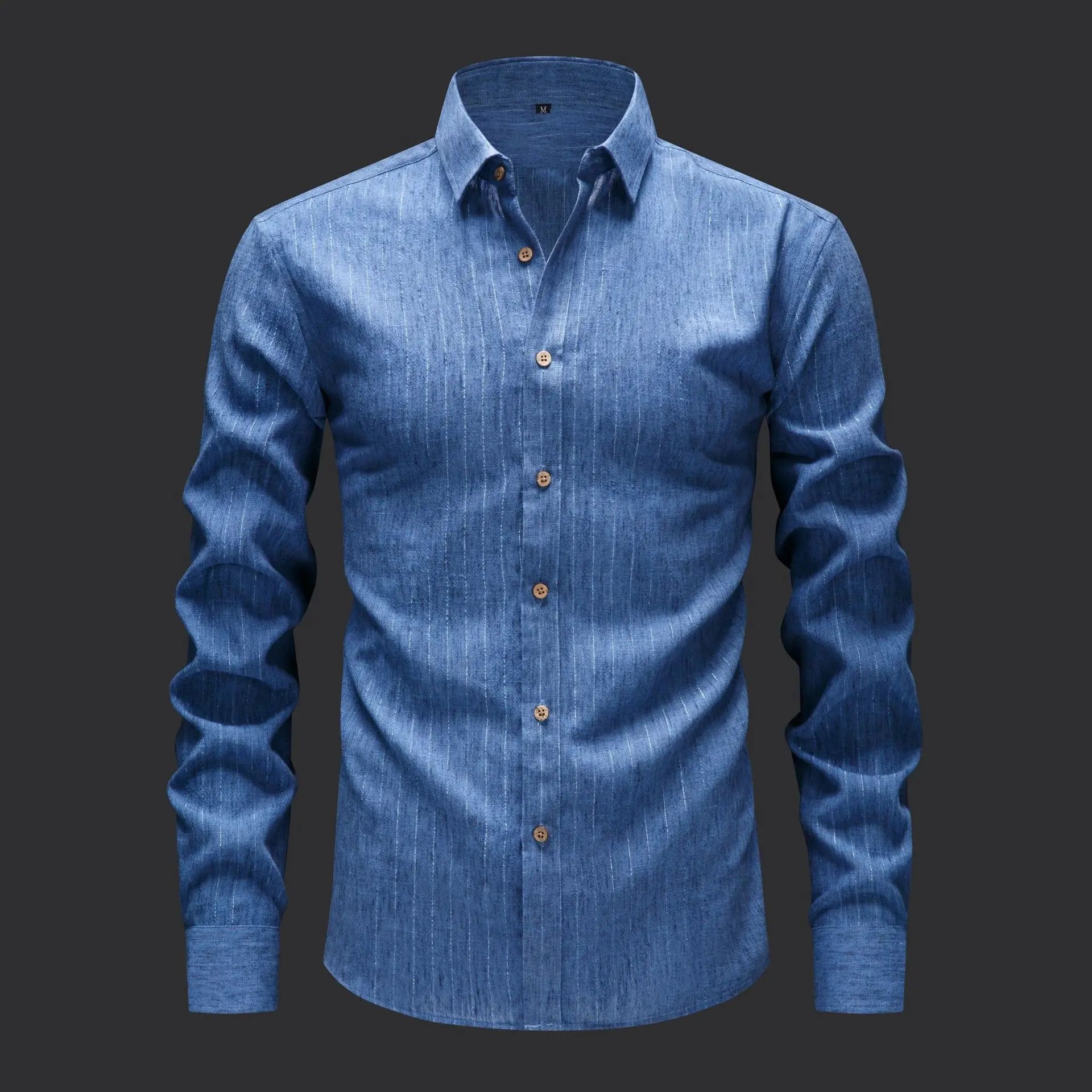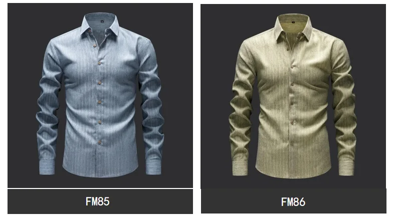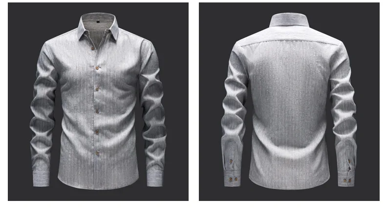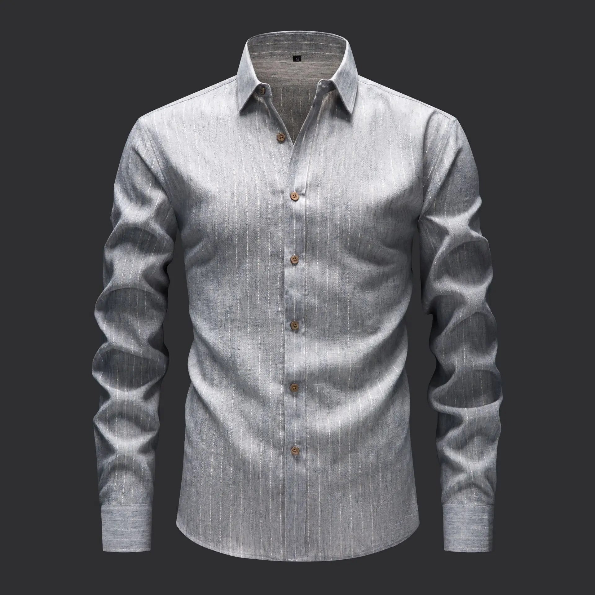 WIAOFELLAS - Fashionable Men's Linen Long-sleeved Shirt Gold Thread Gold Linen Striped Retro Casual Loose Cardigan