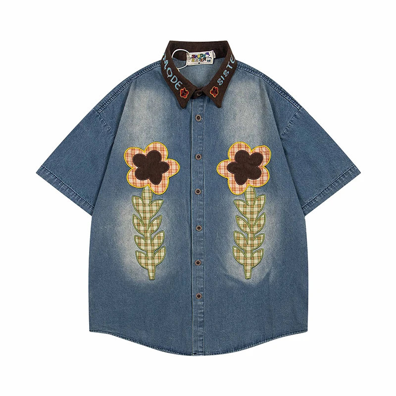 WIAOFELLAS  -  Flower Embroidery Short Sleeve Shirts Mens Summer Retro Streetwear Lapel Single Breasted Half-Sleeve Loose Shirts Cotton Tops