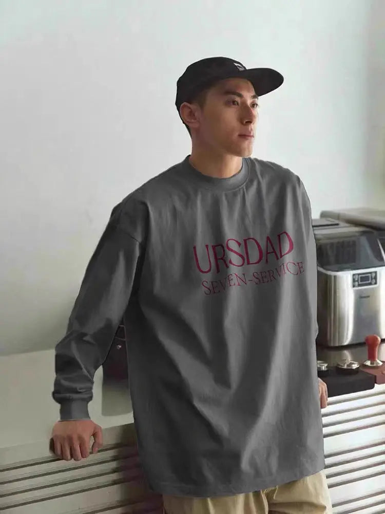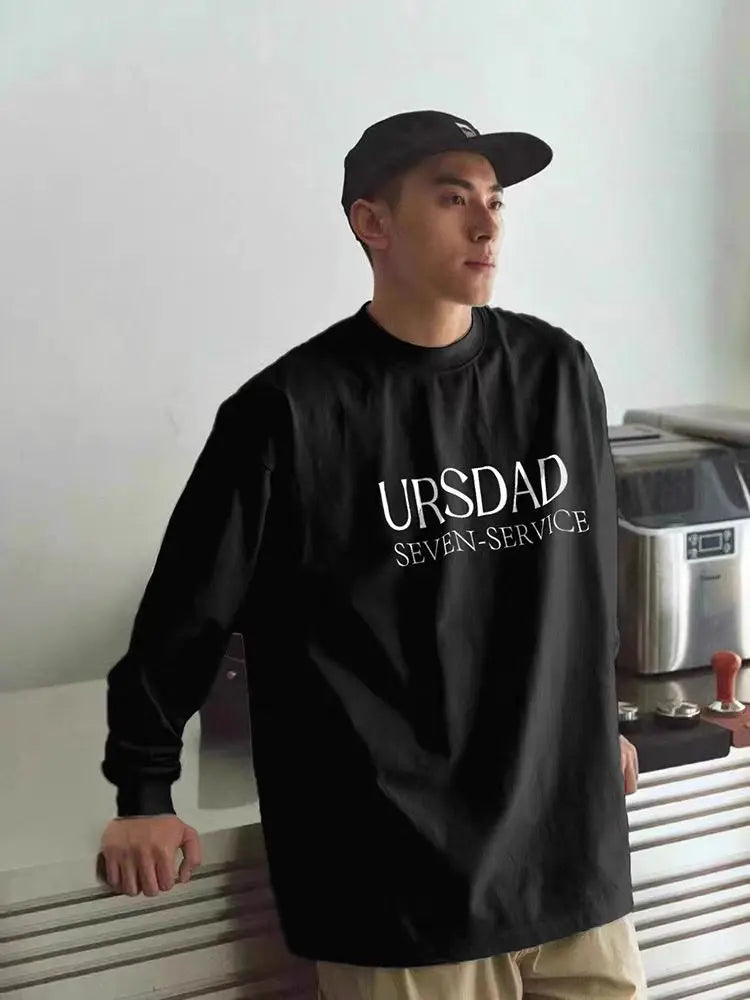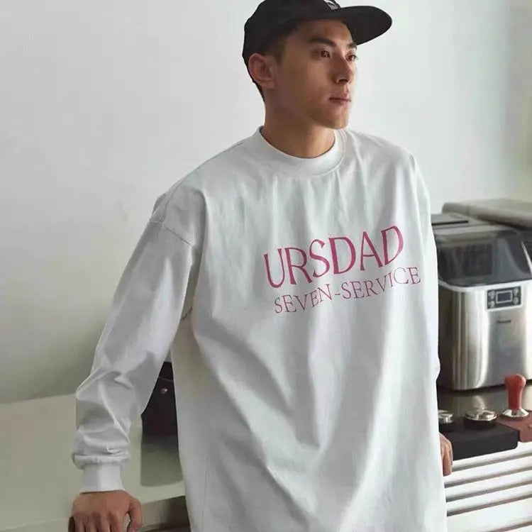 WIAOFELLAS - Heavy cotton Japanese street printed long-sleeved T-shirt for men in autumn loose and simple small neckline inner t-shirt