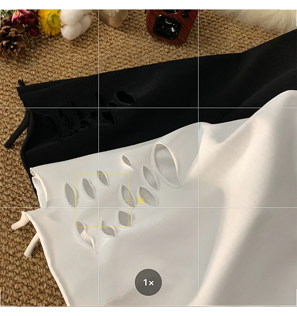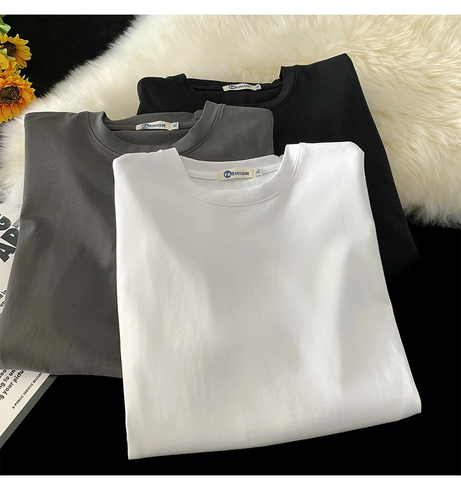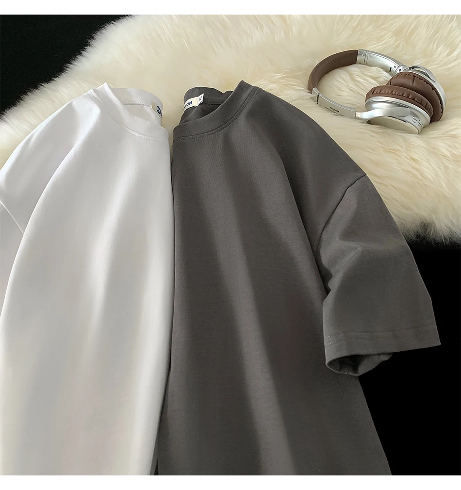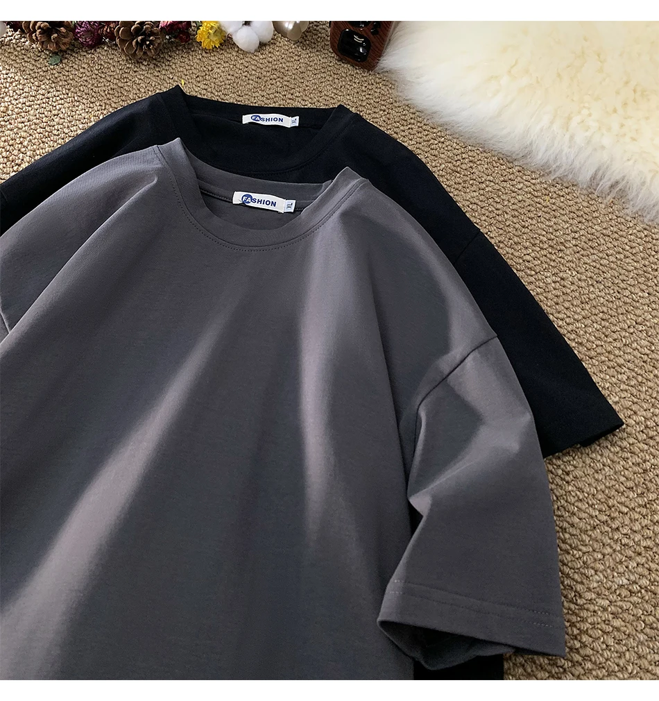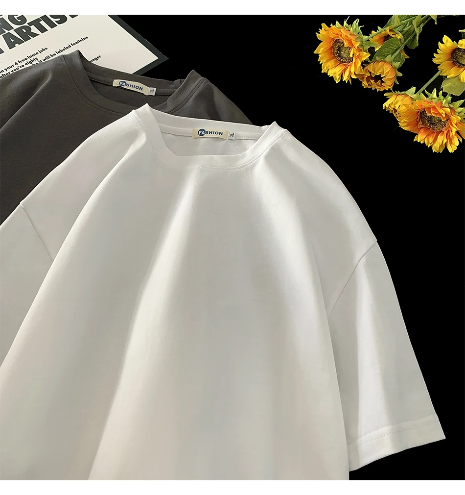 WIAOFELLAS - Hip-hop Street Mens T-Shirt Broken Hole Design T-Shirt Basic Solid Colour Round Neck Short Sleeve Top Casual Loose T-Shirt