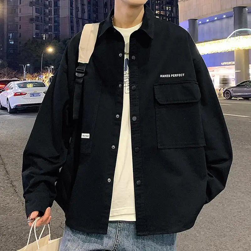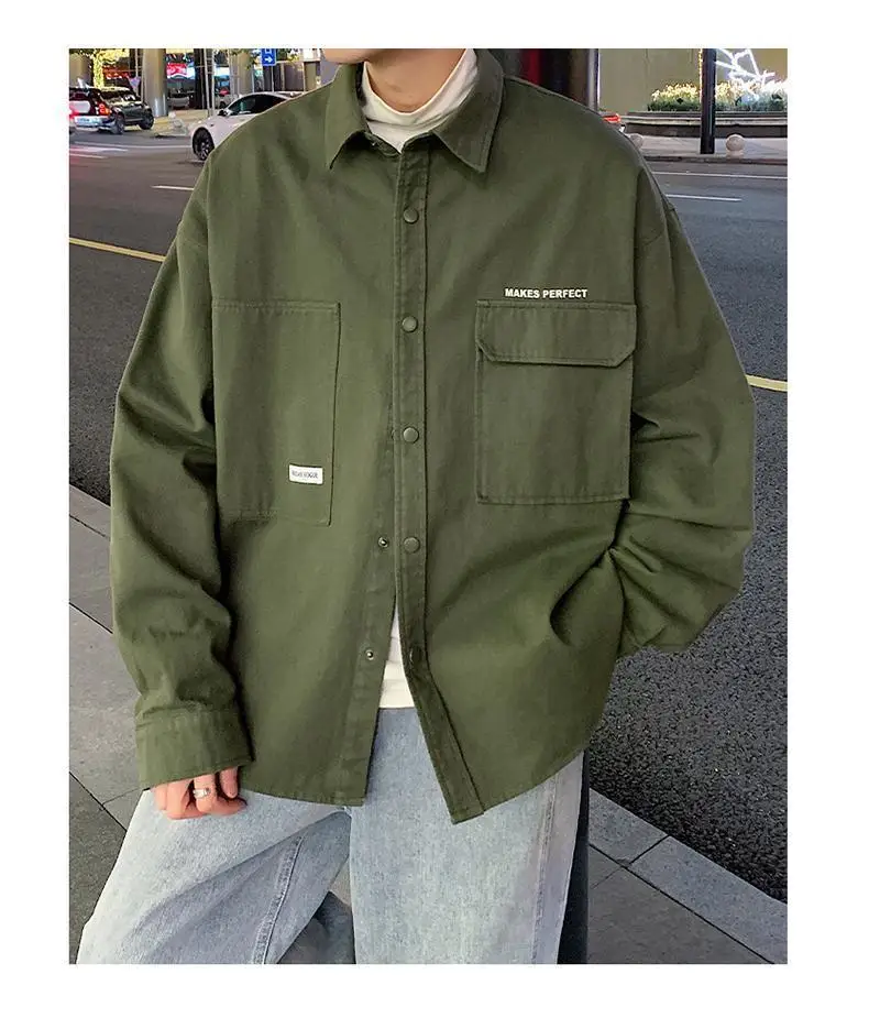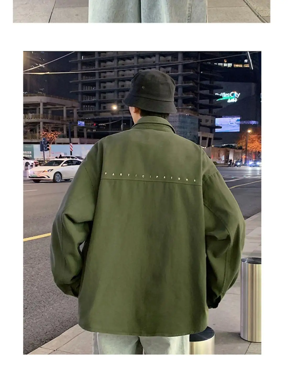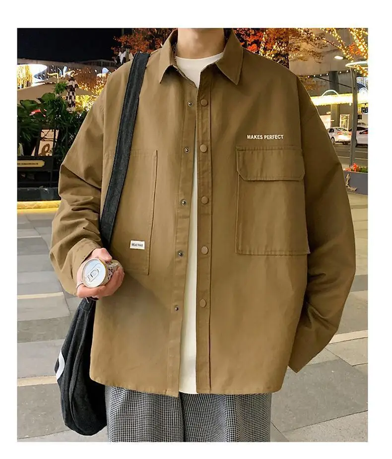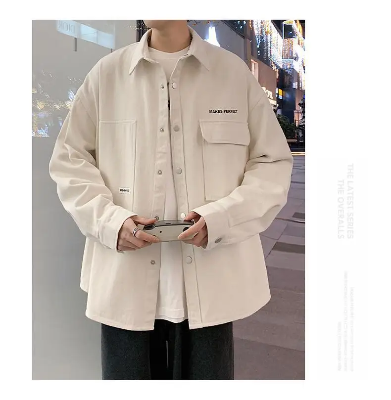 WIAOFELLAS - Jacket Men's Trendy Japanese Loose Shirt Collar Workwear Men's Trendy Casual Jacket