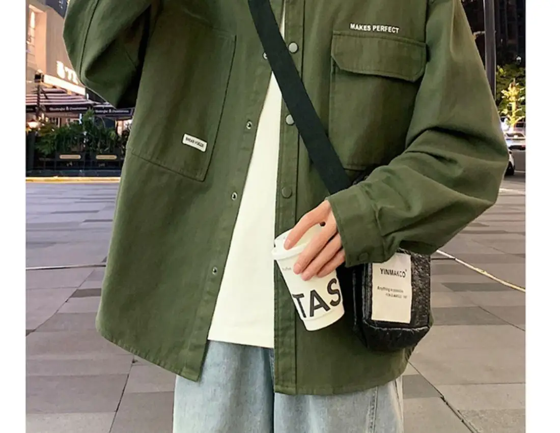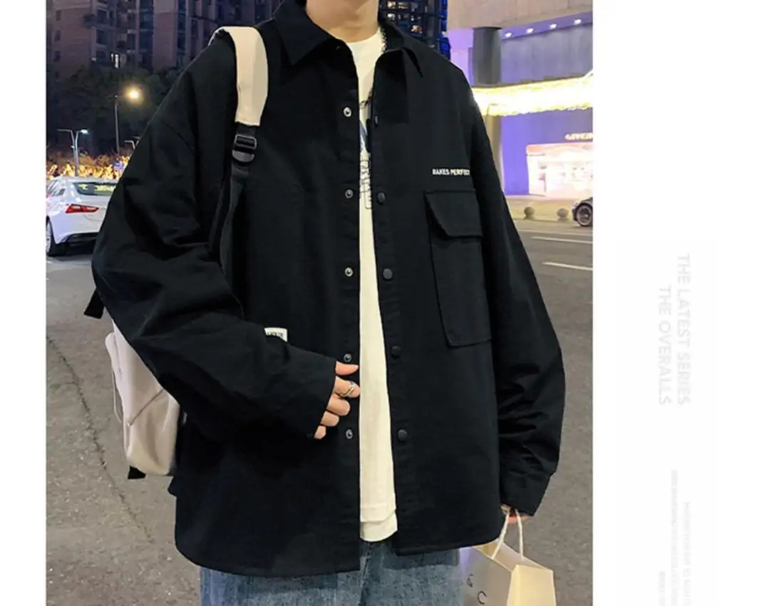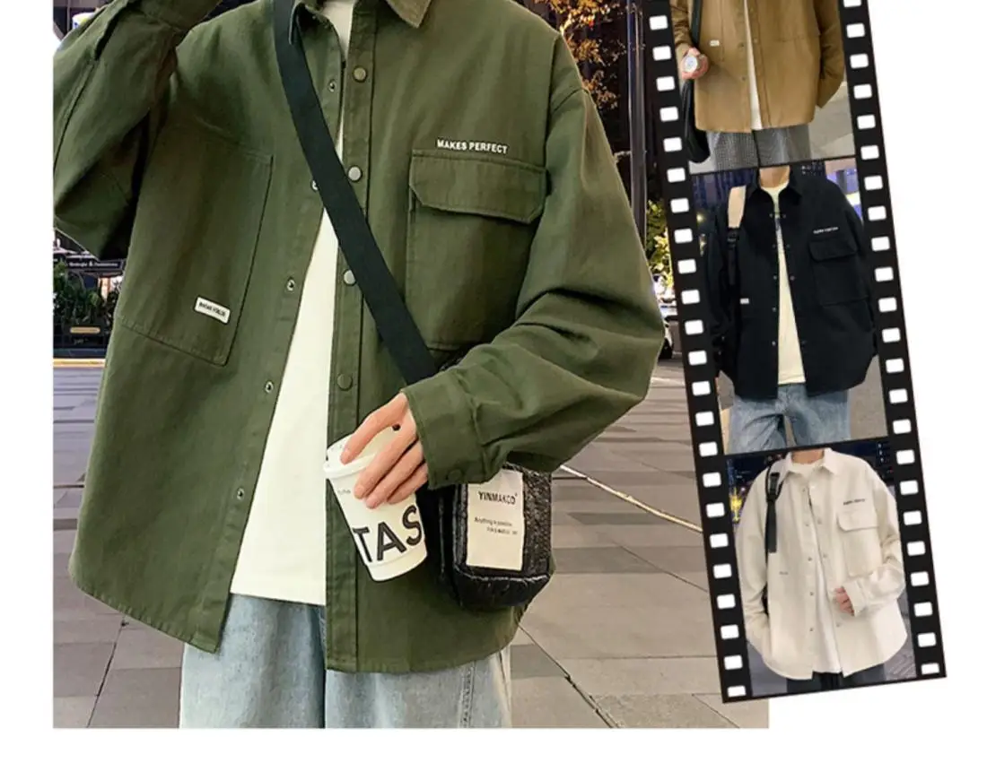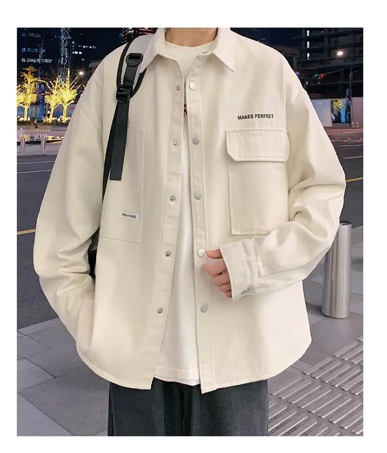 WIAOFELLAS - Jacket Men's Trendy Japanese Loose Shirt Collar Workwear Men's Trendy Casual Jacket