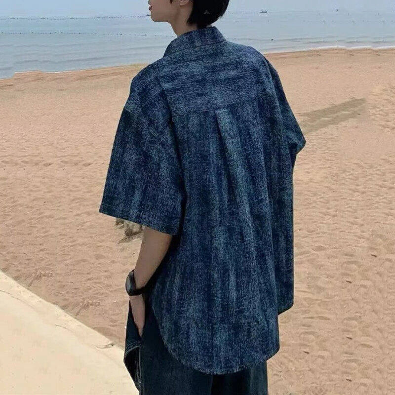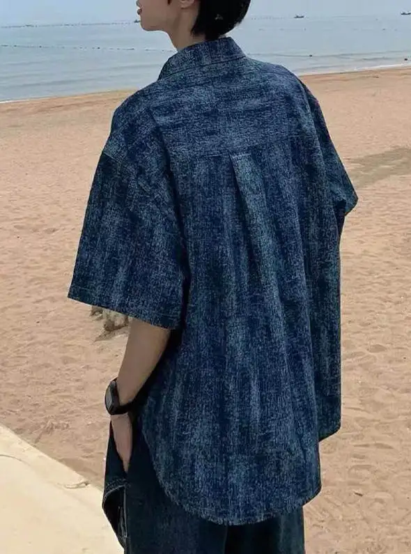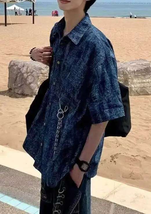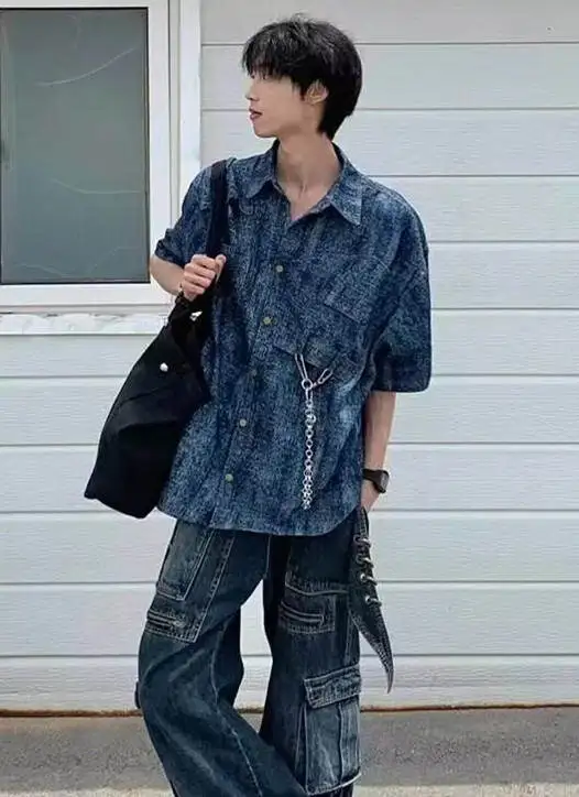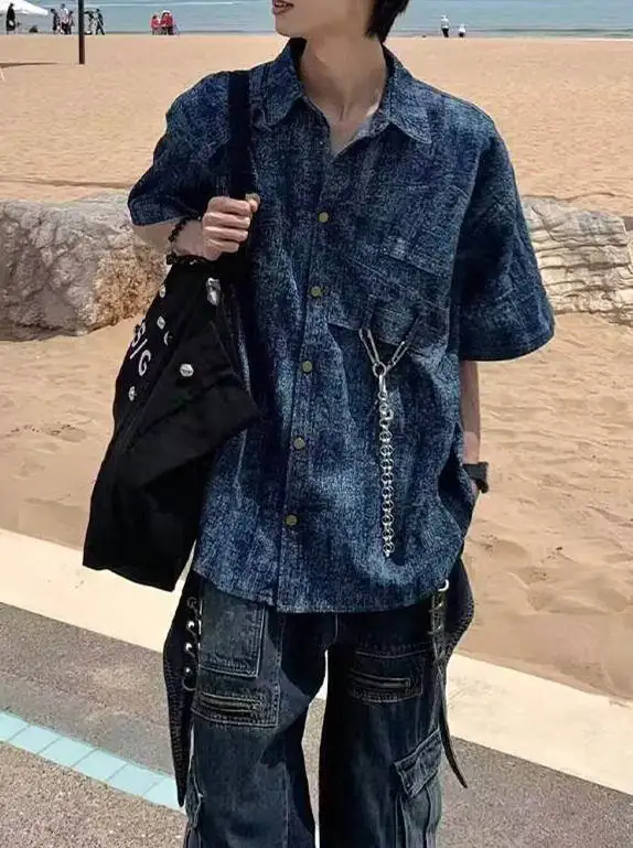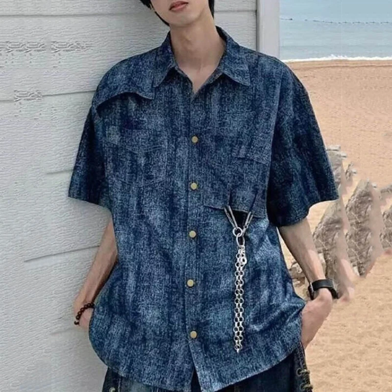 WIAOFELLAS - Jacquard Men's Shirts Lapel Short Sleeved Metal Chain Decoration Loose Single Breasted Casual Male Tops Summer New