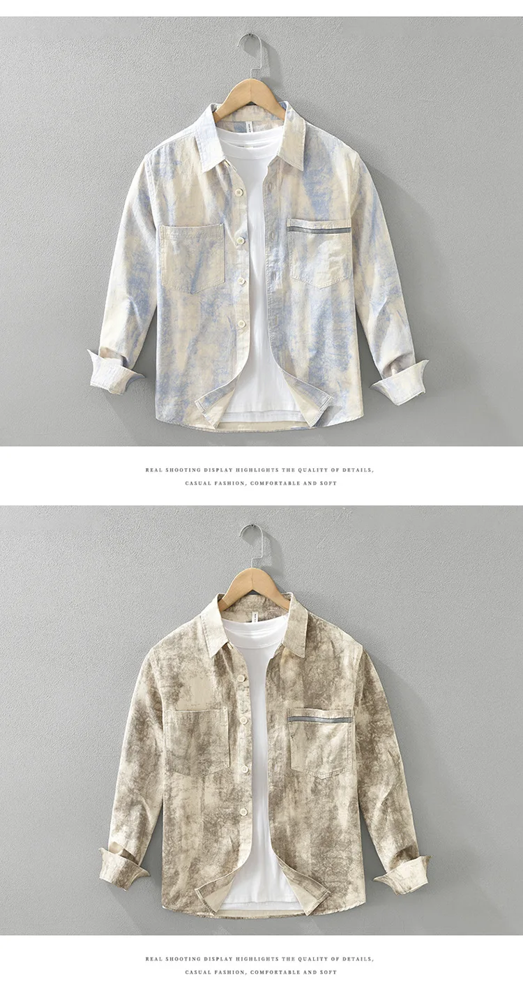 WIAOFELLAS - Japanese fresh printed long-sleeved shirt men's fashion casual versatile literary loose tops