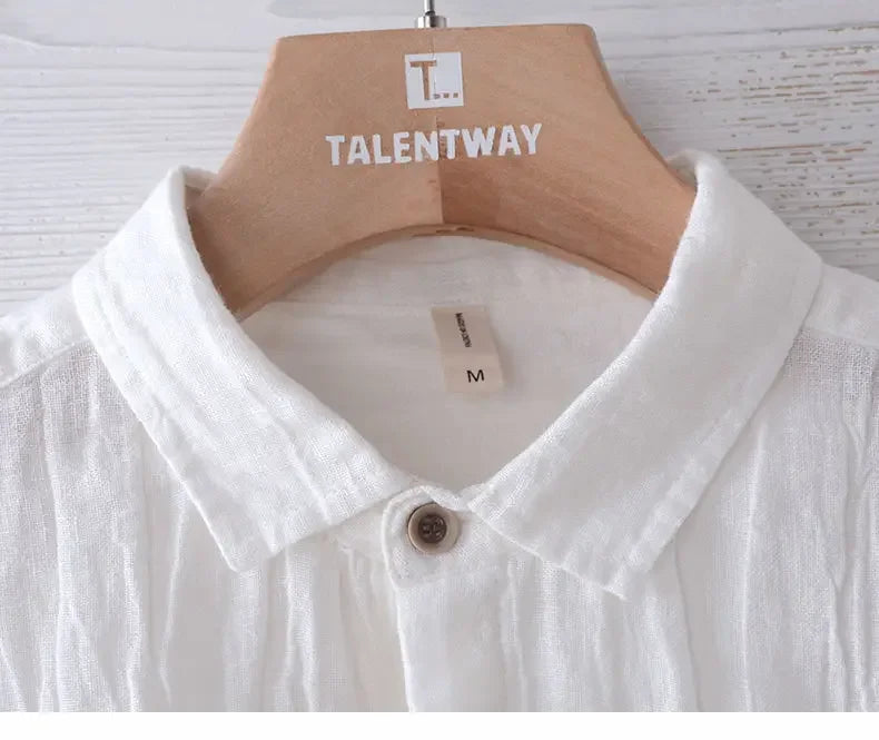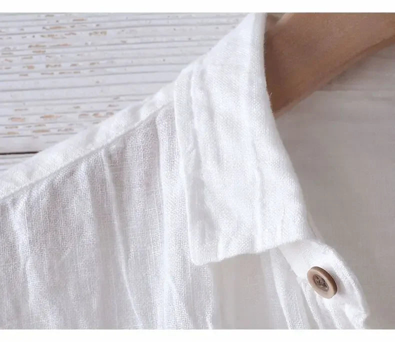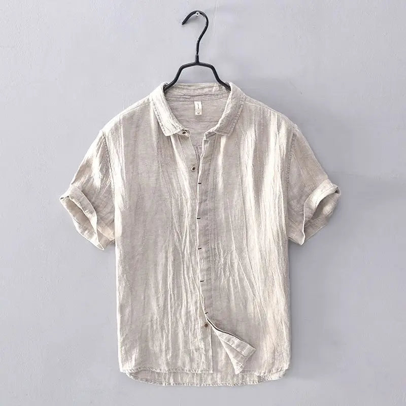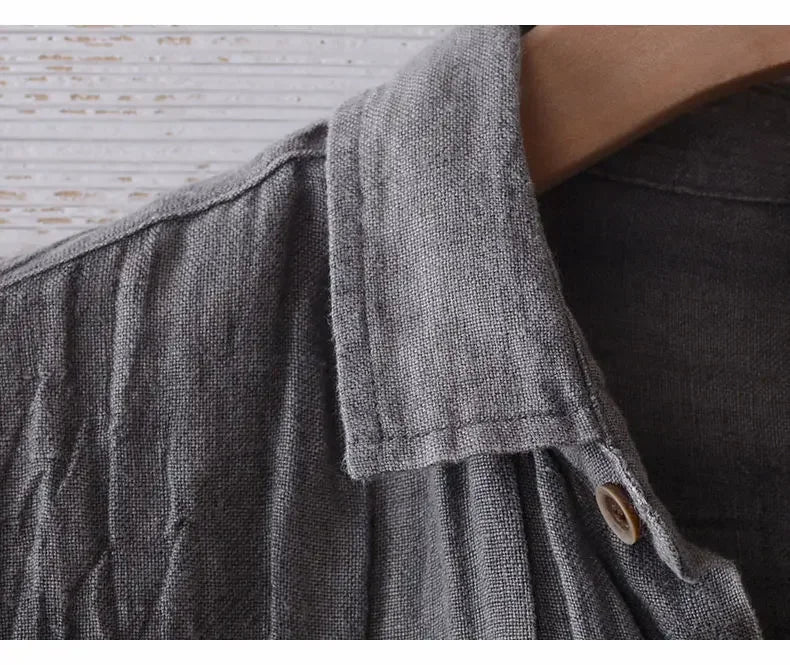 WIAOFELLAS - Japanese Retro Wrinkled Short-sleeved Linen Shirt for Men Summer Casual Thin Breathable Loose Half-sleeved Cotton Linen Shirt