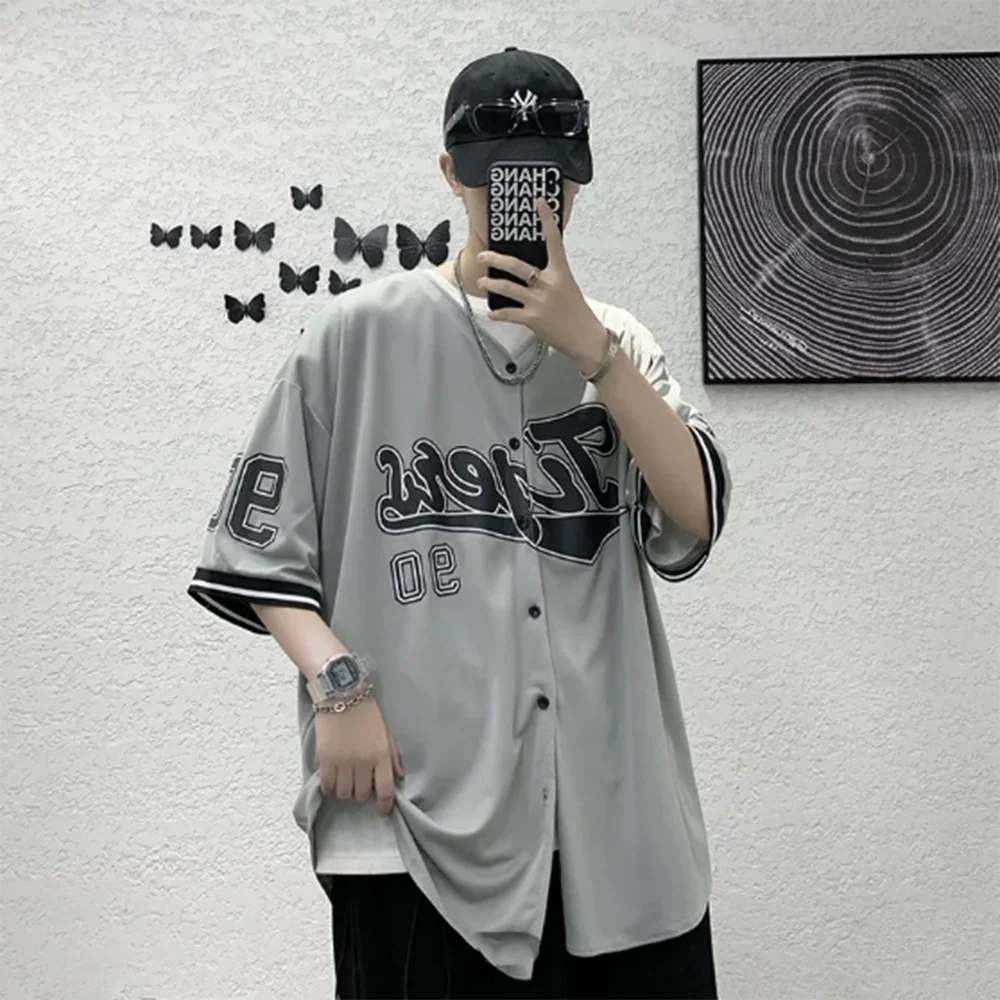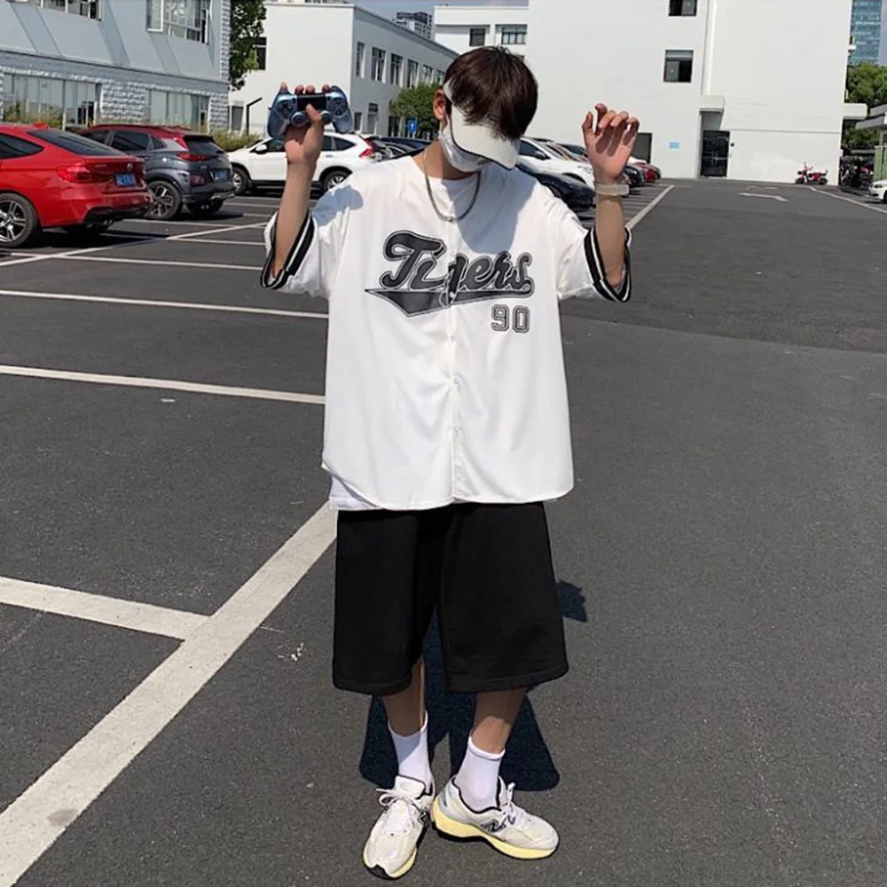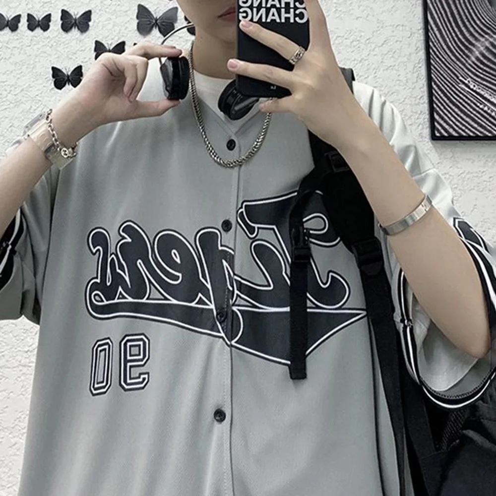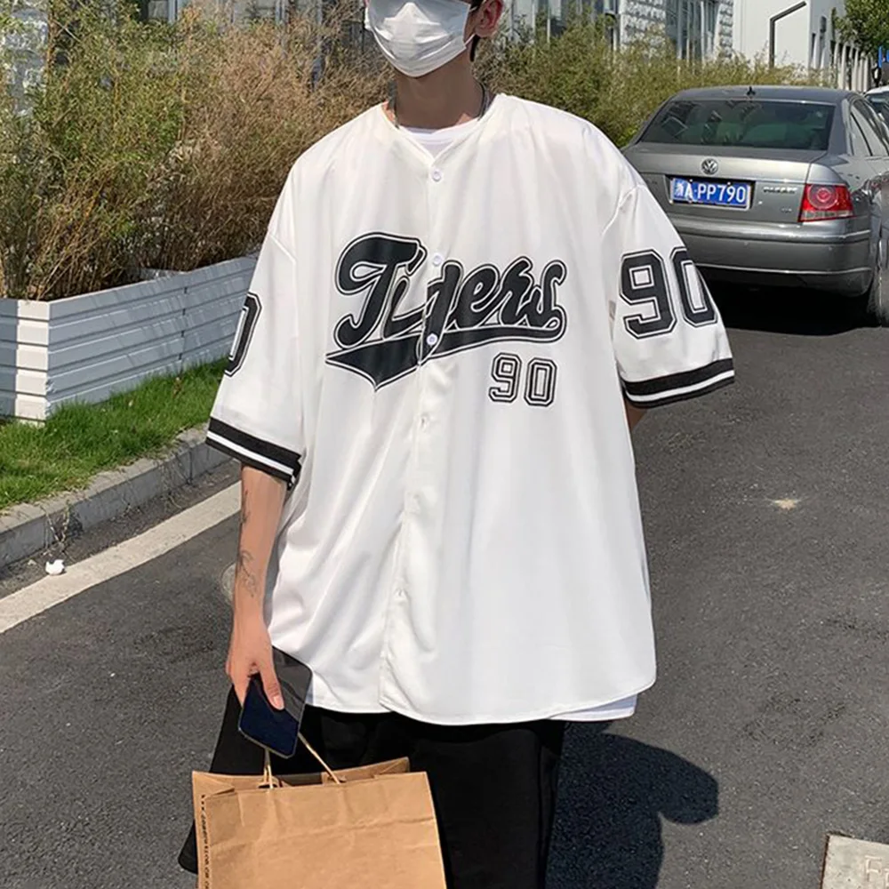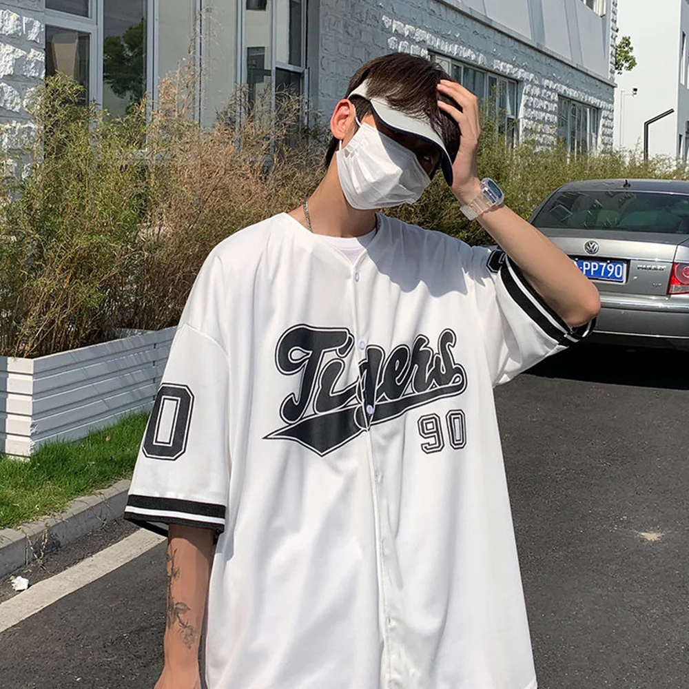 WIAOFELLAS  -  Jersey Shirt Mens West Coast Vibrant Street American Hip-Hop Tops Baseball Short Sleeve All-Match Youthful Men's Clothing